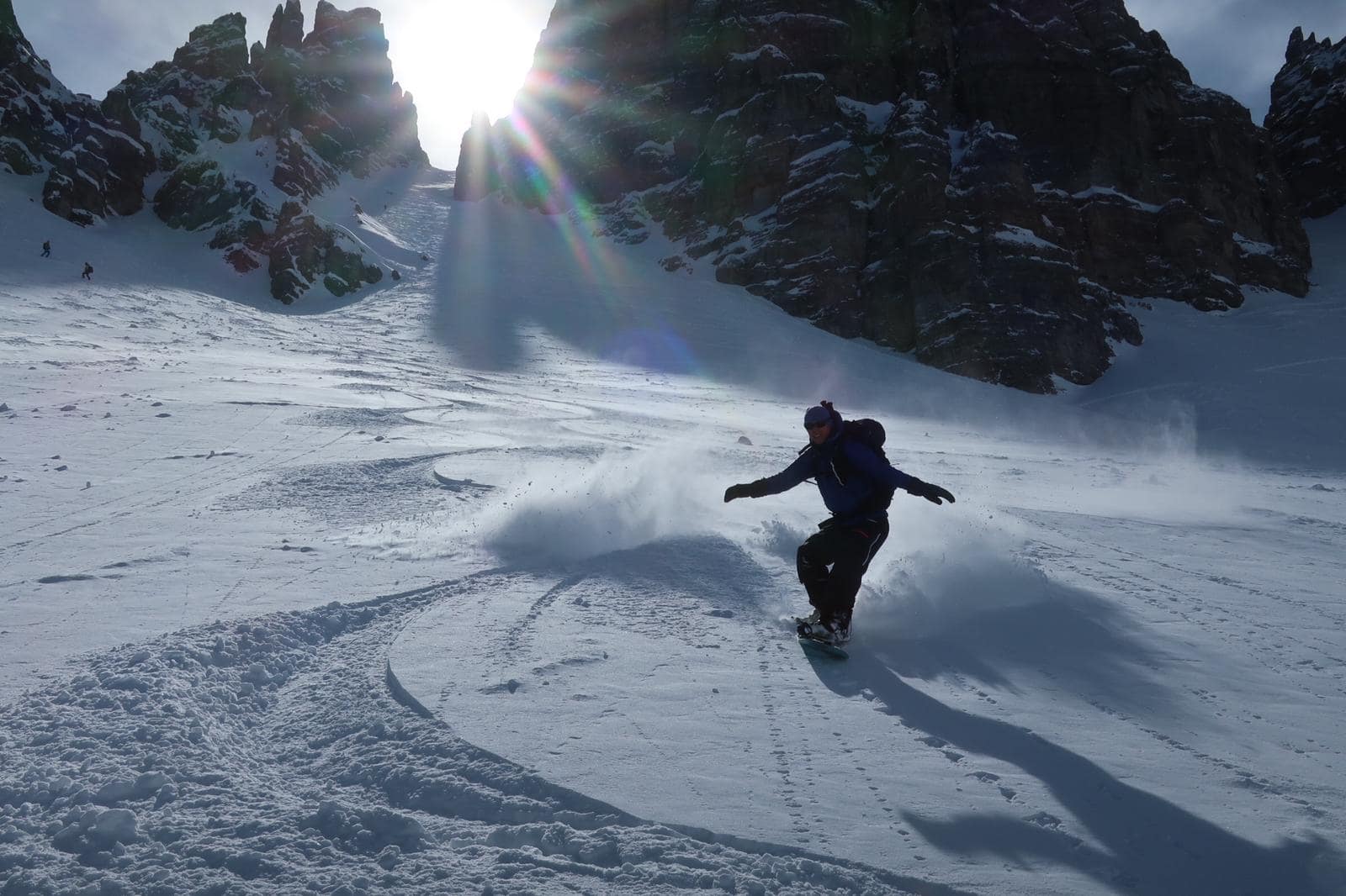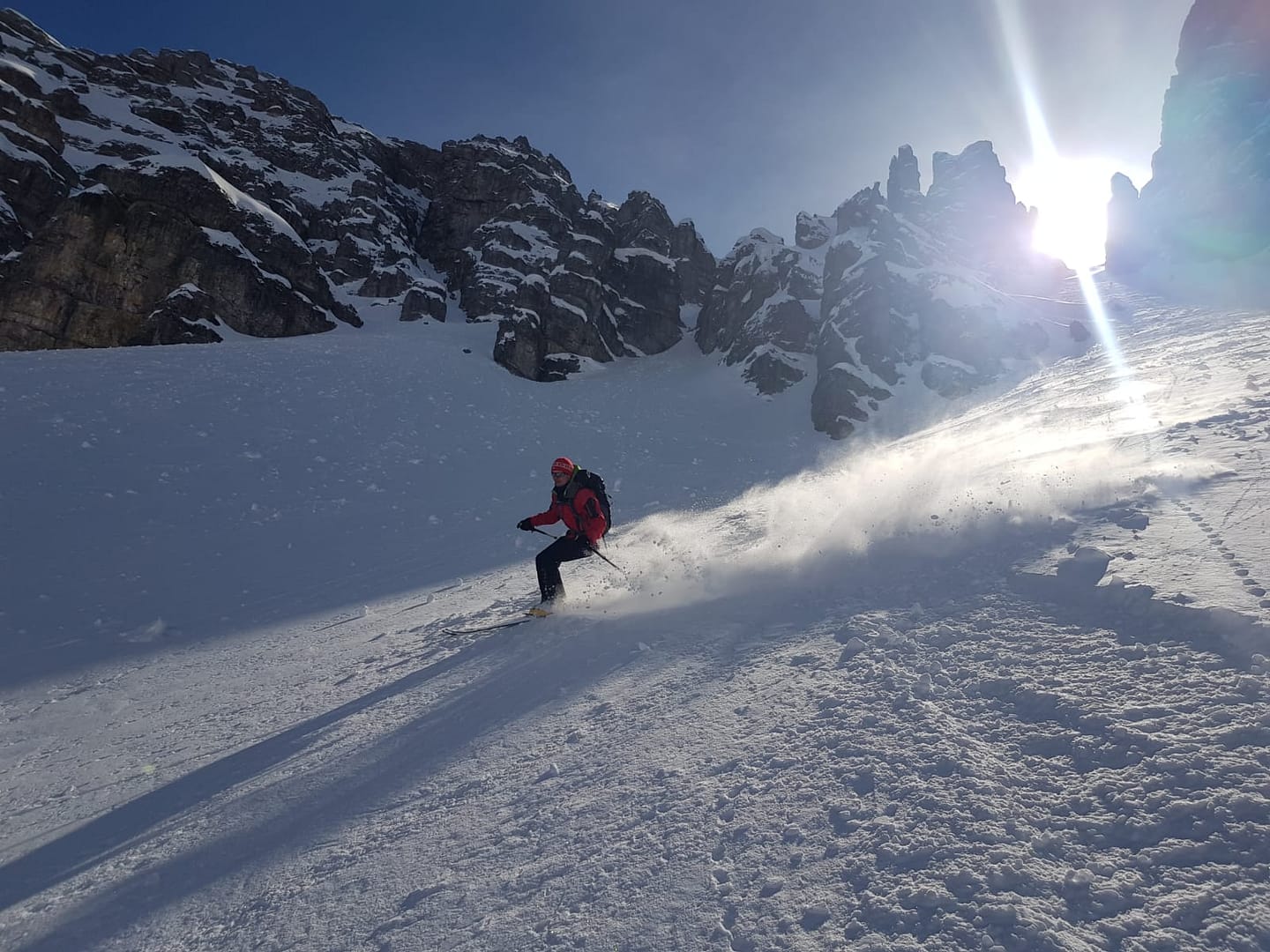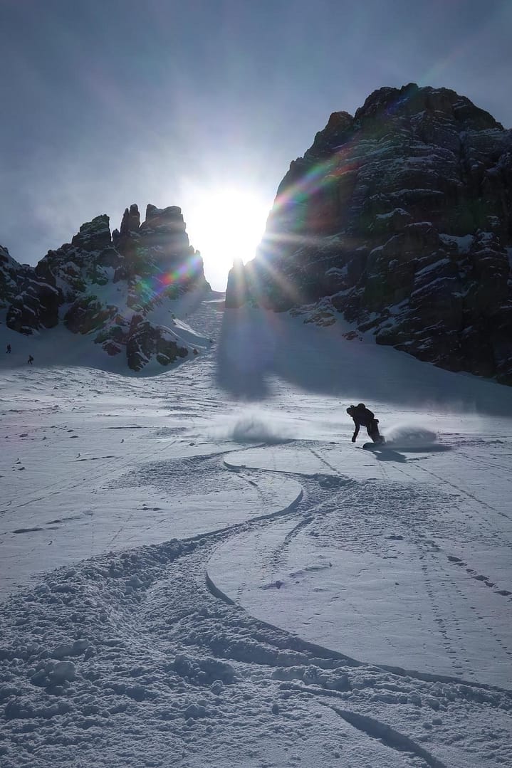 Die Rinne oben war sehr eisig, aber danach haben wir feinsten Powder gefunden, dass der Schnee nur so staubte. Im unteren Teil hatte das Gelände eher pistenähnliche Verhältnisse, zerfahren und buckelig, bis wir dann schlussendlich auf der echten Piste die letzten Meter zurück gelegt haben.