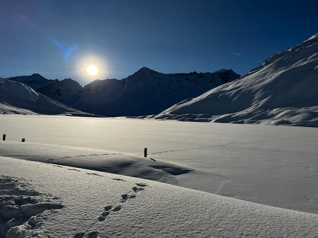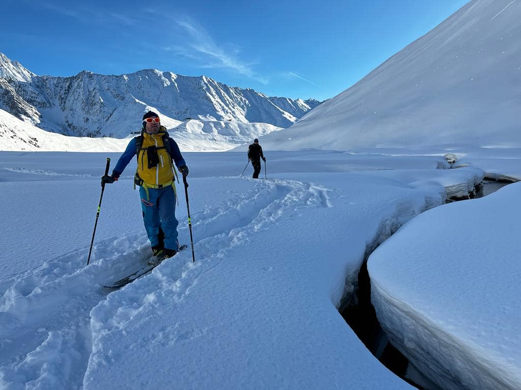 Mit dem Skitourenticket ermöglicht die Gondelbahn für einen Beitrag von 22 € den bequemen Aufstieg. Von der Bergstation aus führt die Route zunächst etwa 60 Höhenmeter hinab zum Rifflsee, wo man anfellt. Entlang des nördlichen Ufers des Sees erstreckt sich das erste Teilstück bis zum Riffltal, wobei Vorsicht geboten ist, da einige Bachläufe die Strecke durchziehen und eine sorgfältige Wahl des Pfades erfordern. Zu Erwähnen wäre, dass das Riffltal oft im Schatten liegt und aufgrund seiner Lage häufig von Wind durchzogen wird.