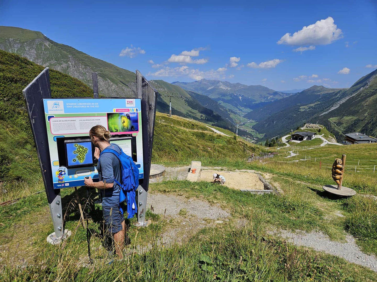 Ein Abenteuerparcours, Kinder gehen auf Entdeckungsreise mit dem Gletscherfloh Luis! Die Gletscherflohsafari hält verschiedenste Stationen bereit. Von Wasserspielen bis hin zu Informationstafeln wird spielerisch der Lebensraum Gletscher erkundet, natürlich auch für Erwachsene inteessant.