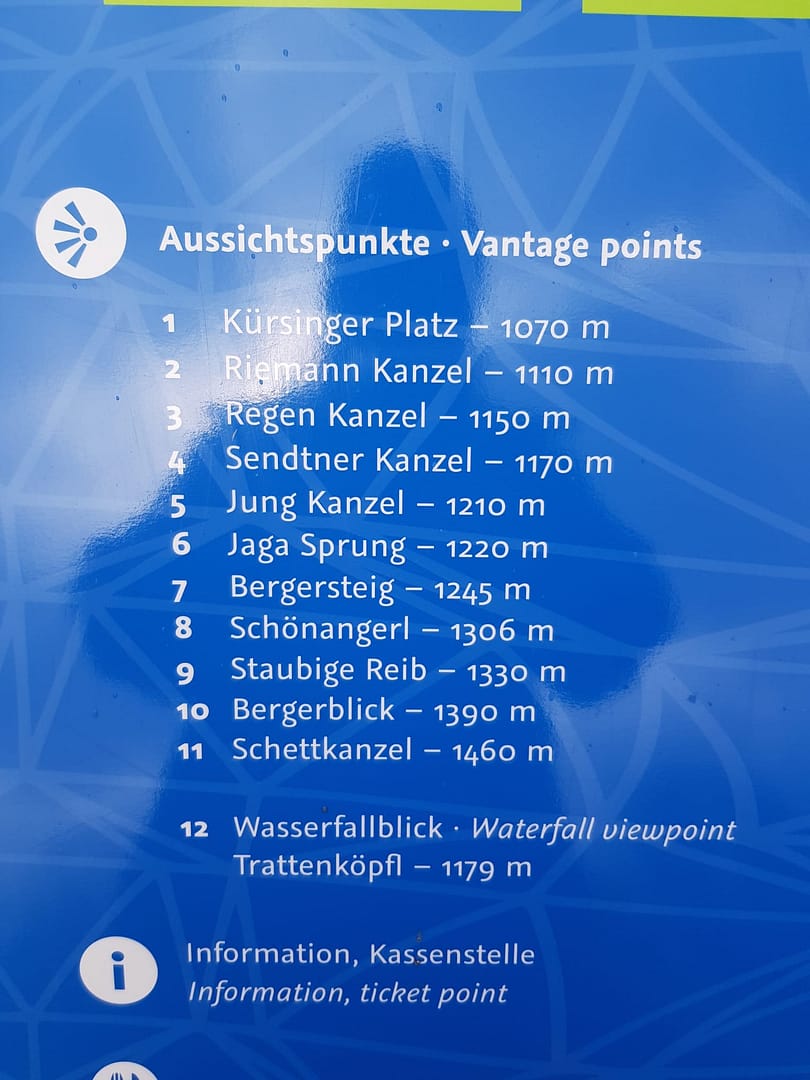 Der erfrischende Sprühregen inmitten der traumhaften Kulisse hat uns alle sehr begeistert, die Kinder waren auch sehr fasziniert. Für die ganz kleinen unserer Gruppe, war es dennoch eine anstrengende Wanderung, die wir mit Troll-Geschichten versüßt haben. Die müden Beine haben uns dann nur bis Punkt 8 Schönangerl auf 1.306 m hochgebracht, aber bis dort sollte man unbedingt laufen, von hier sieht man auch die letzte Stufe.