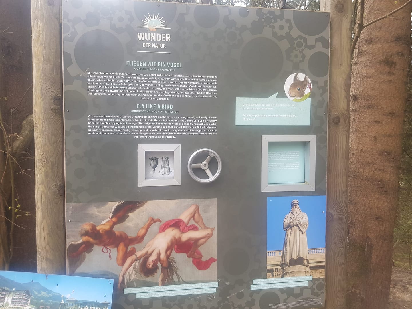 Der Themenweg „Die Wunder der Natur“ erzählt von den Naturwundern, die Wissenschaftler als Basis für ihre Erfindungen herangezogen haben. Der Erlebnisweg gibt einen Einblick in die Geschichte und Entwicklung der Bionik, zeigt interessante Beispiele und lässt einem selbst über die Erfindungen staunen und erleben – wie z.B. das Spielgerät auf dem 4. Bild, was es damit auf sicht hat findet selbst heraus. 🙂