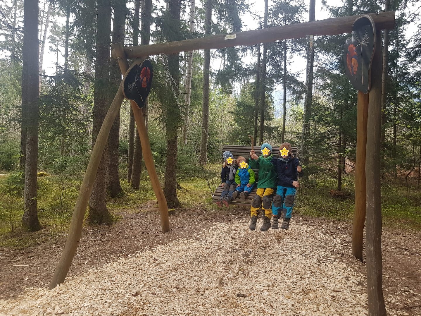 Vom Spielplatz aus sind wir den Themenwanderweg „Natur der Wunder“ gelaufen. Auch hier gibt es interaktive Stationen zum lernen und verstehen der Bionik, selbst wir Erwachsenen hatten viel Spaß beim Erleben. Aufgrund von Bauarbeiten können wir leider nicht zur 2. Station und auch nicht „Romantikpark“, das holen wir dann ein andres Mal nach. Wir haben es nur bis zur 5. Station geschafft, da wir dann die hungrigen Mäuler füttern mussten. Aus diesem Grund sind wir nach der 5. Station Richtung Goglhof abgezweigt und über wunderschöne, verschlungene Waldwege zum Gasthaus gewandert.