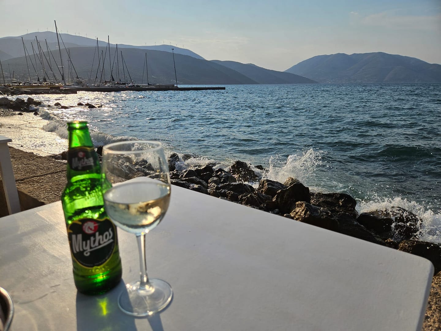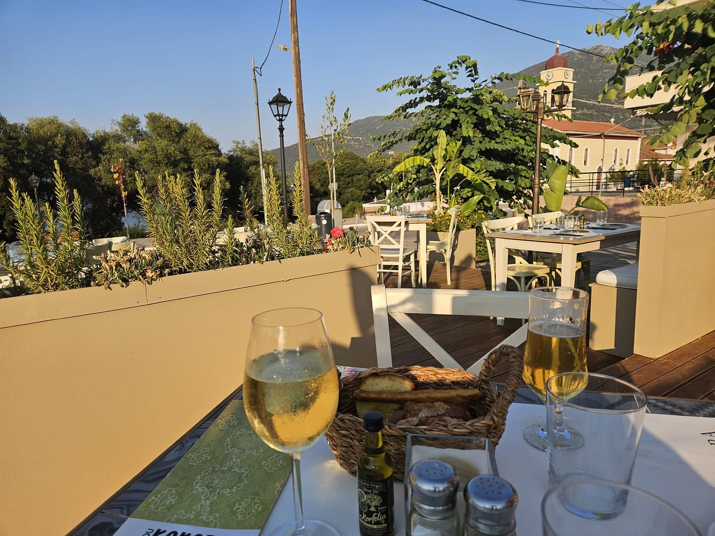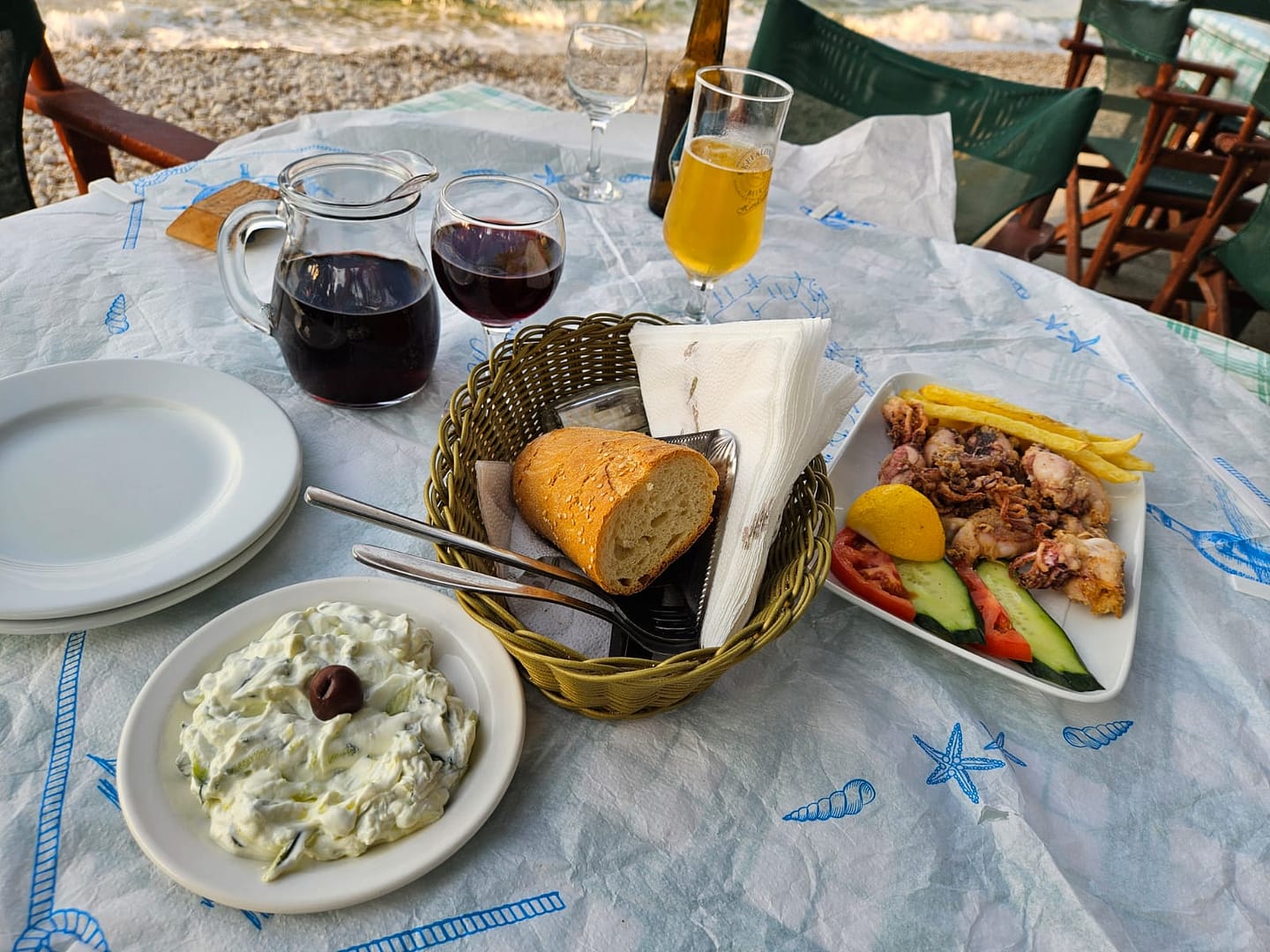 Auch dieses Restaurant war ein echter Genuss, mit einer traumhaften Lage direkt am Meer, wo einige Wellen sanft bis zu unserem Tisch spitzten. Als „Begrüßung“ gab es einen Brotkorb, Tzatziki und Oliven. Aufgrund dessen haben wir uns keine Vorspeise bestellt, das Essen war gut, doch es hätte durch etwas Sauce besser sein können, da es ein kleines bisschen trocken war. Dennoch war das Gesamtambiente einfach wundervoll.