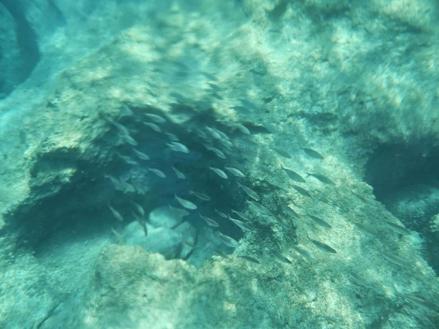 Beim Schnorcheln offenbart sich eine farbenfrohe Unterwasserwelt mit einer Vielzahl unterschiedlicher Fische. Allerdings sollte man auf die zahlreichen Boote und deren Ankerseile achten, was das Schnorchelerlebnis etwas beeinträchtigen kann. Aufgrund dessen und nach der Erkundung der Höhle haben wir uns entschieden, zum nahegelegenen Alaties Beach weiterzufahren.
