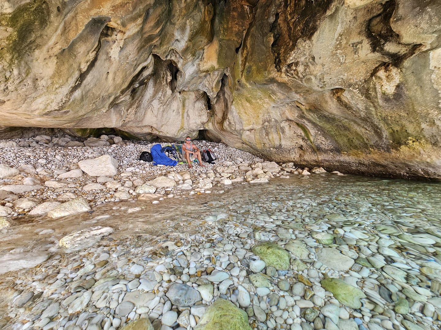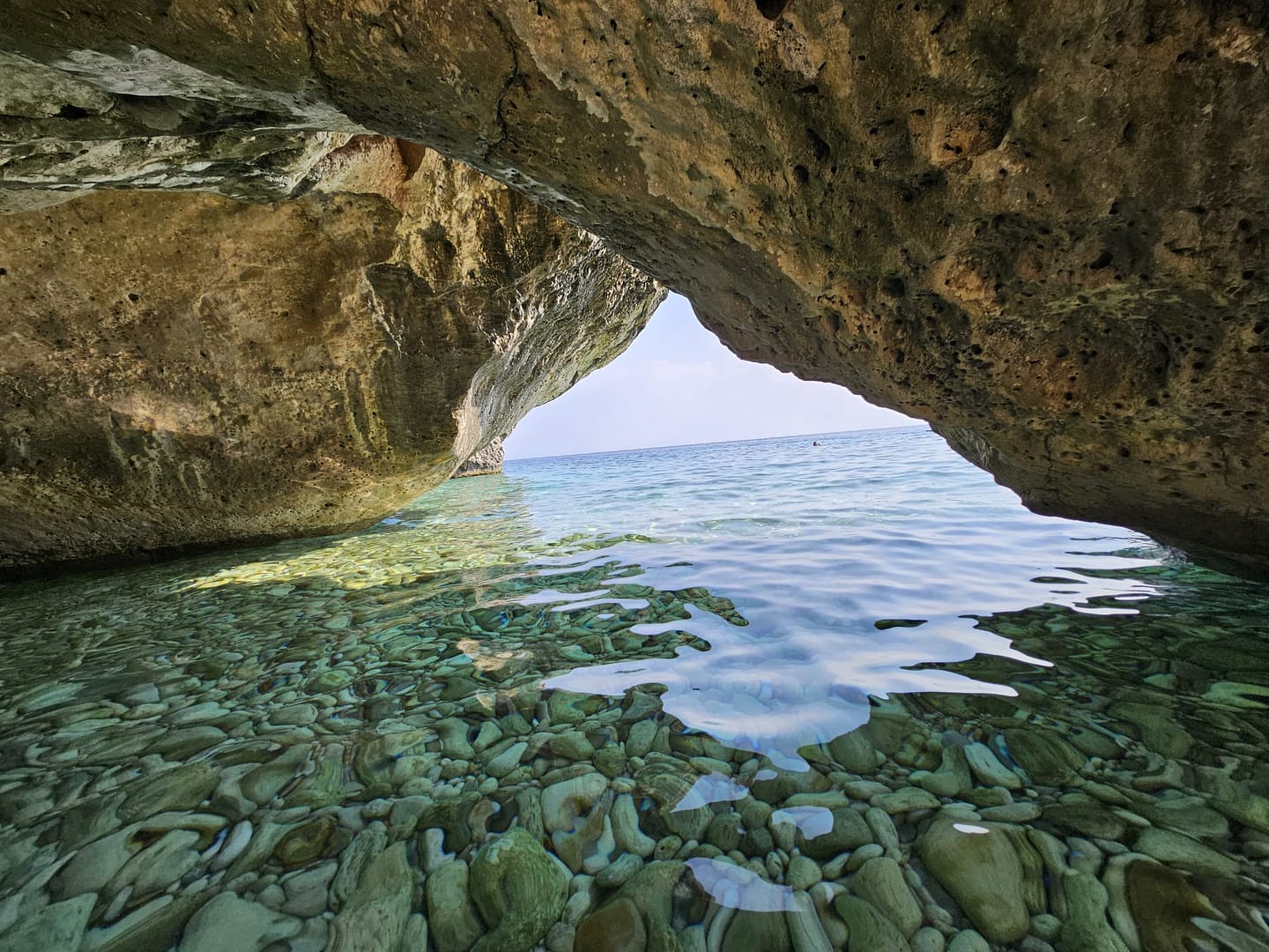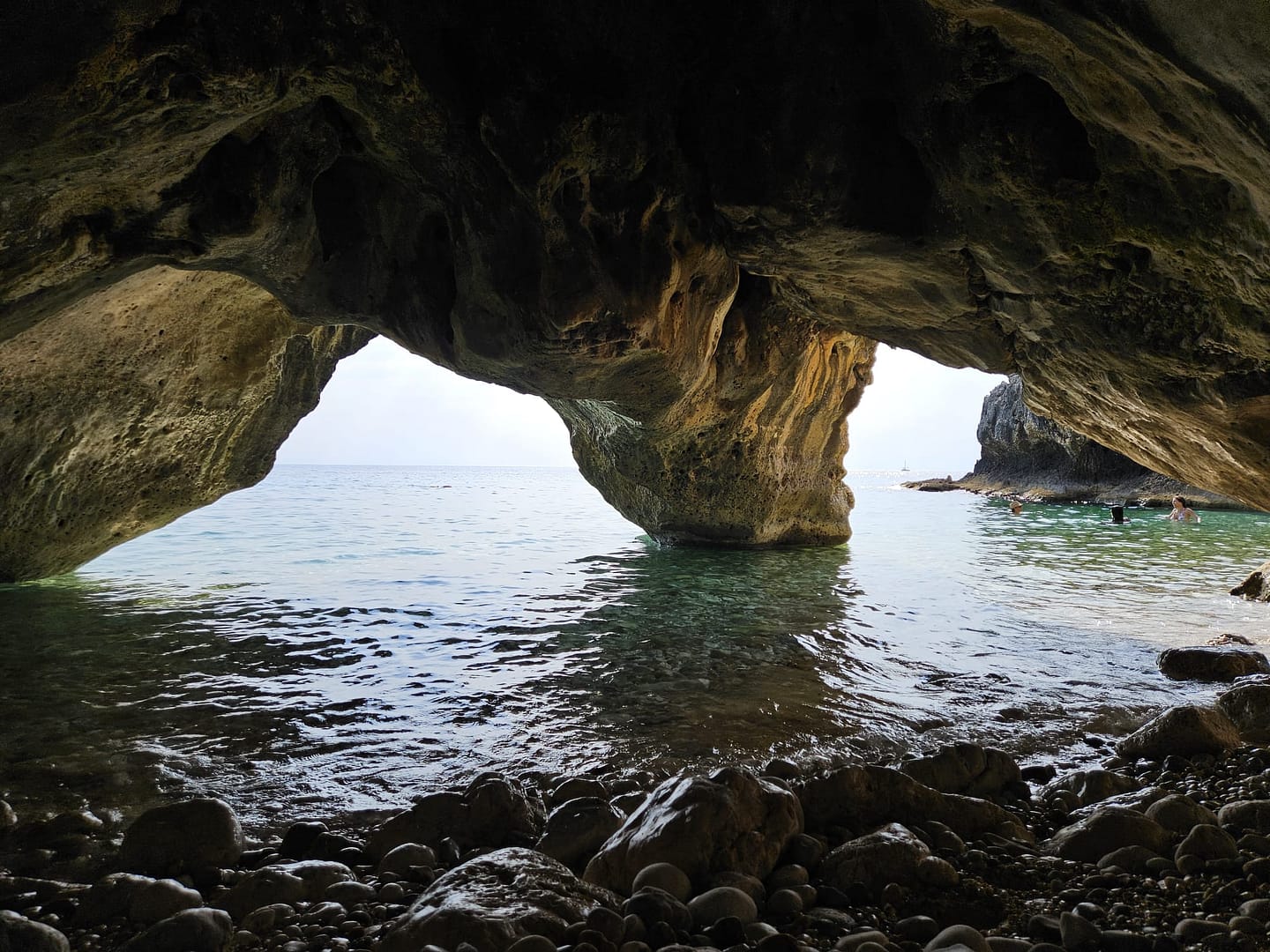 Die Höhle selbst war unglaublich spannend. Obwohl wir nicht viel über ihre Geschichte in Erfahrung bringen konnten, war die Erkundung ein Abenteuer. Es gibt mehrere Eingänge, sowohl vom Land als auch vom Meer aus, große Gänge führen in eine sehr große „Vorhalle“, wo weitere Gänge sich immer weiter ins Dunkel erstrecken. Man sieht die eigene Hand vor Augen nicht mehr, Das Licht unseres Handys war bei weitem nicht ausreichend, um die Gänge umfassend zu erkunden. Eine leistungsstarke Taschenlampe wäre hier wirklich hilfreich gewesen.