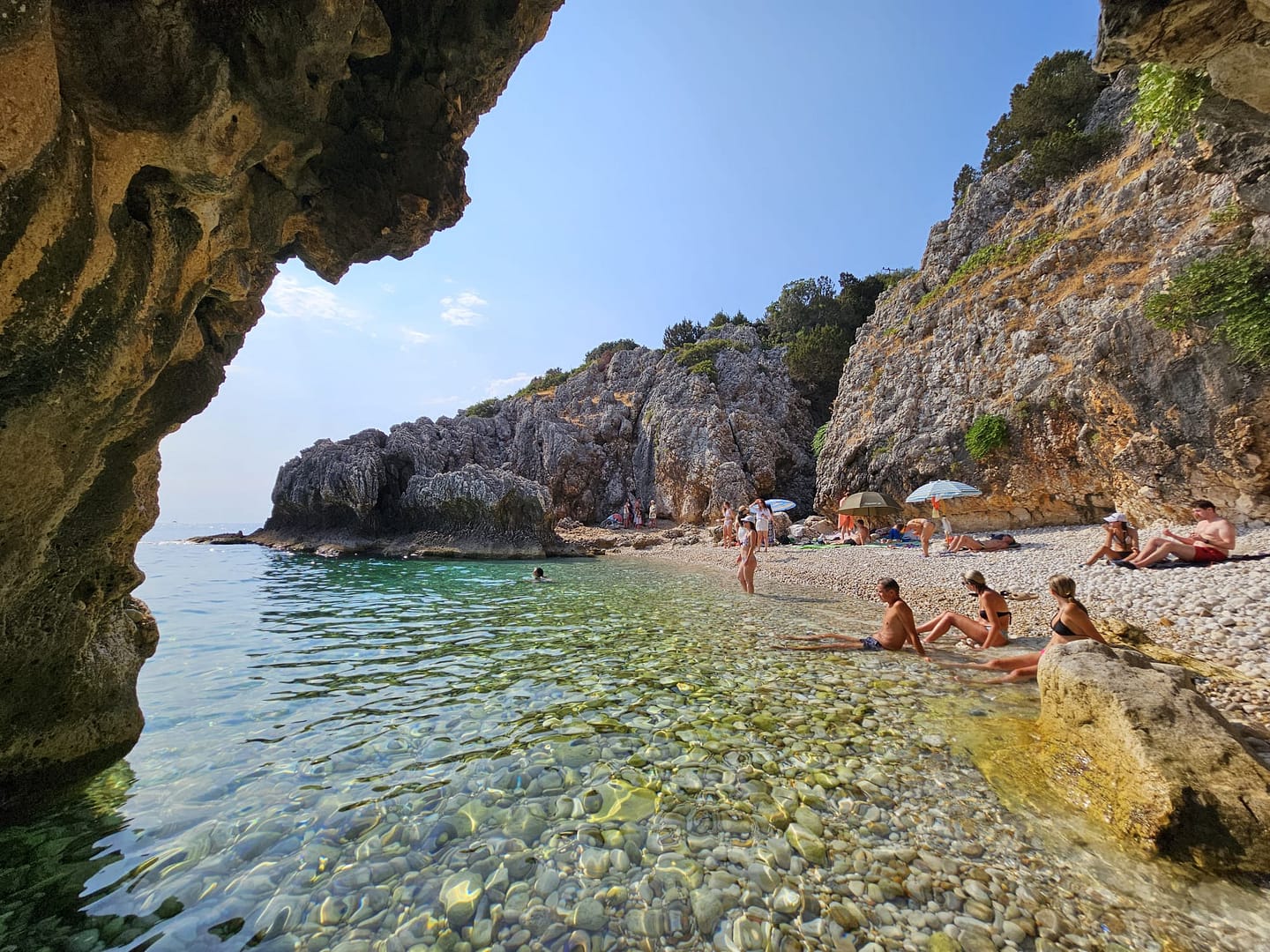 Ein Strand im nördlichen Teil der Insel, der durch eine faszinierende Höhle besonders beliebt ist und viele Boote anzieht, die hier vor Anker gehen. Der Strand selbst ist mit Kies bedeckt, während das Areal davor von Waldboden und zahlreichen schattenspendenden Bäumen geprägt ist.