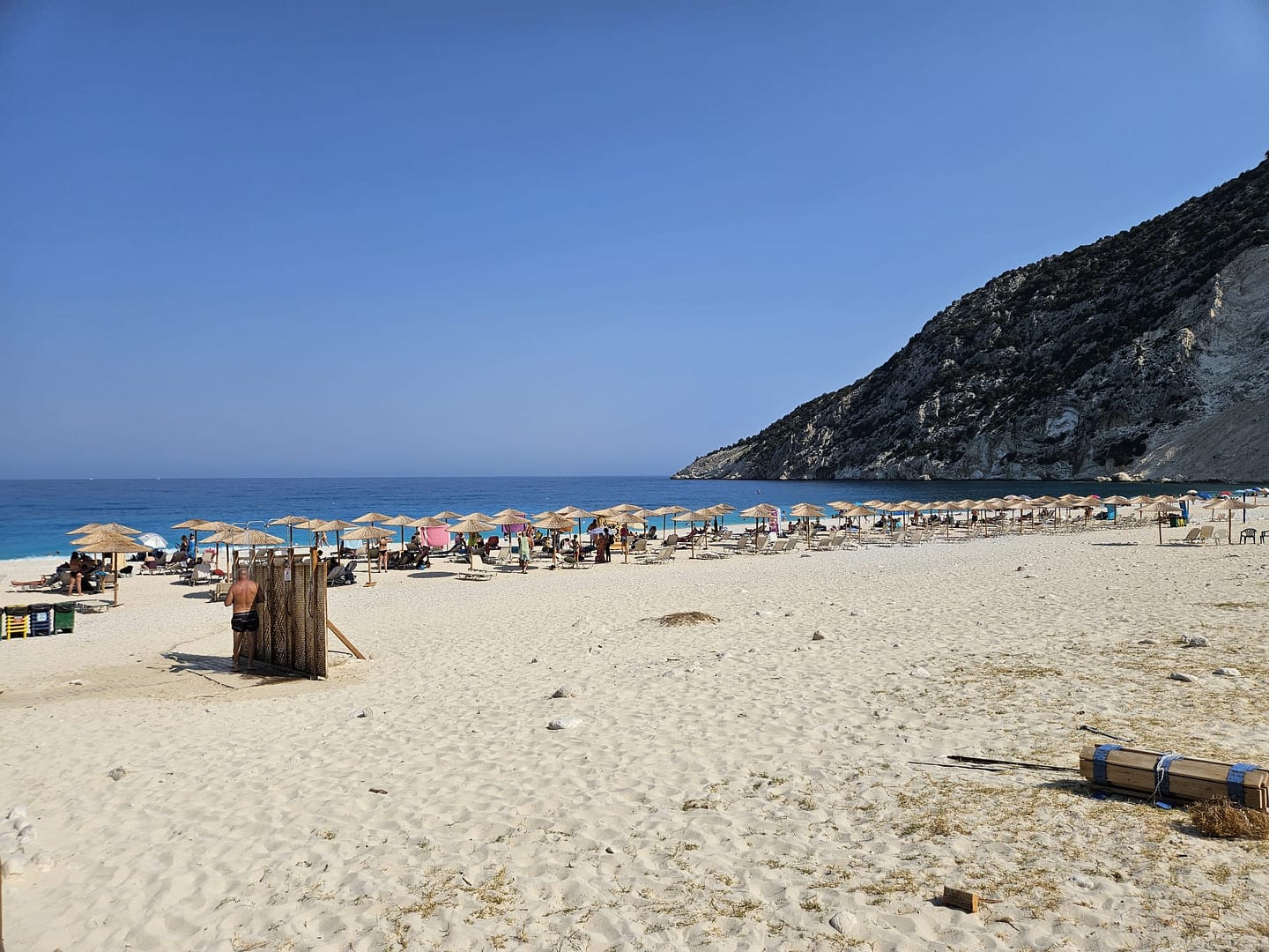 - Schatten: Es gab kaum natürlichen Schatten, der nicht bereits von den Liegen & Schirmen eingenommen war.