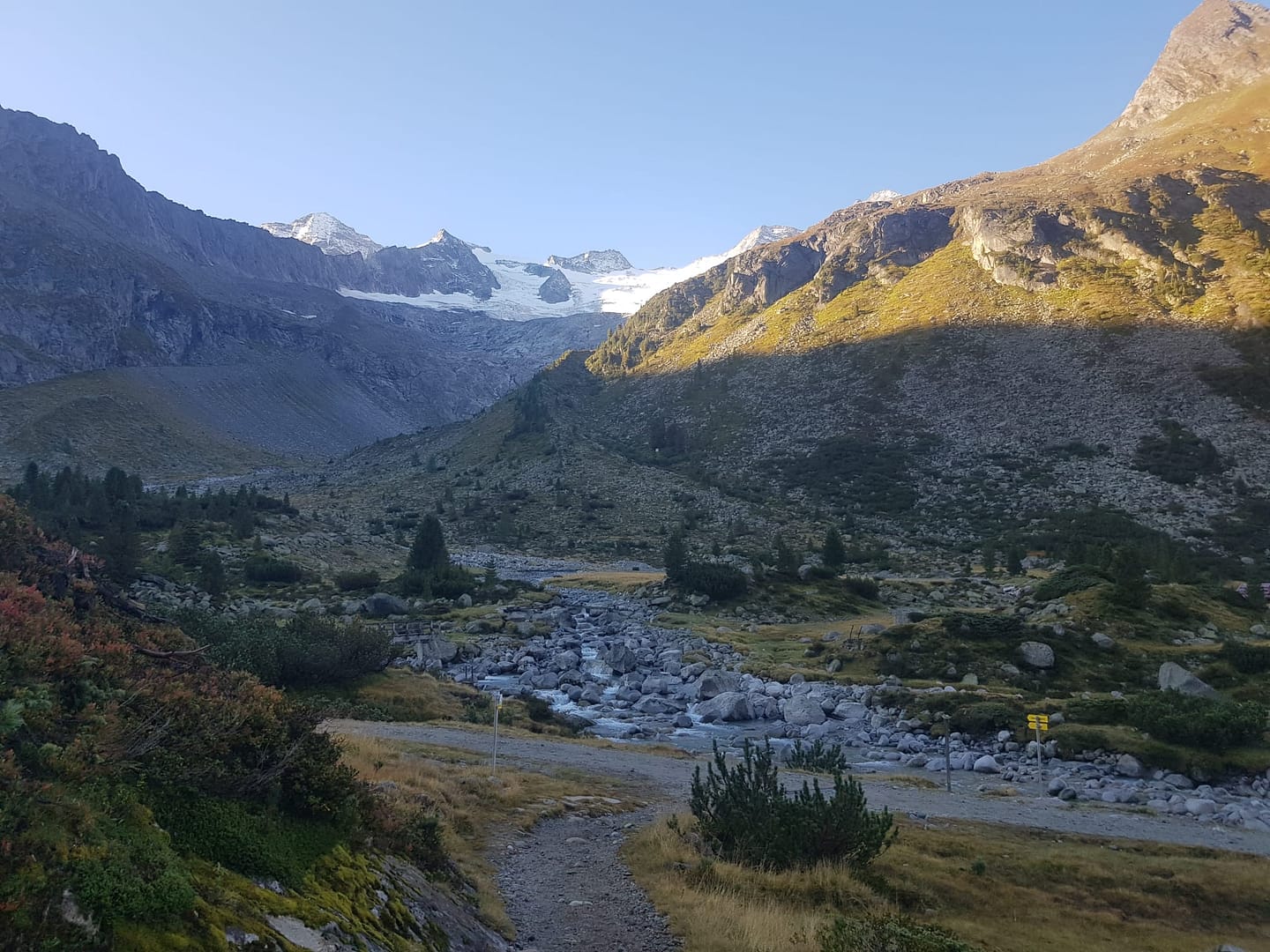 Von Ginzling fährt man noch bis zum Breitlahner Parkplatz, wo die Tour startet. Über einen markierten Wanderweg geht es an zwei bewirtschaften Hütten zur Alpenrose Hütte, bei welcher wir übernachten haben, weil die Berliner Hütte leider bereits ausgebucht war. Da an diesem Wochenende Almabtrieb war, war der Wanderweg doch recht gut befahren, was nicht soooo schön war. Bis zur Alpenrose haben wir 1:38 Stunden gebraucht und weitere 20 Minuten bis zur Berliner Hütte (nächster Tag).