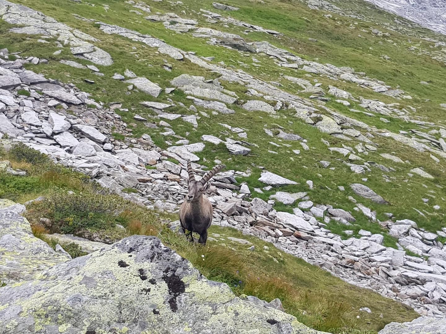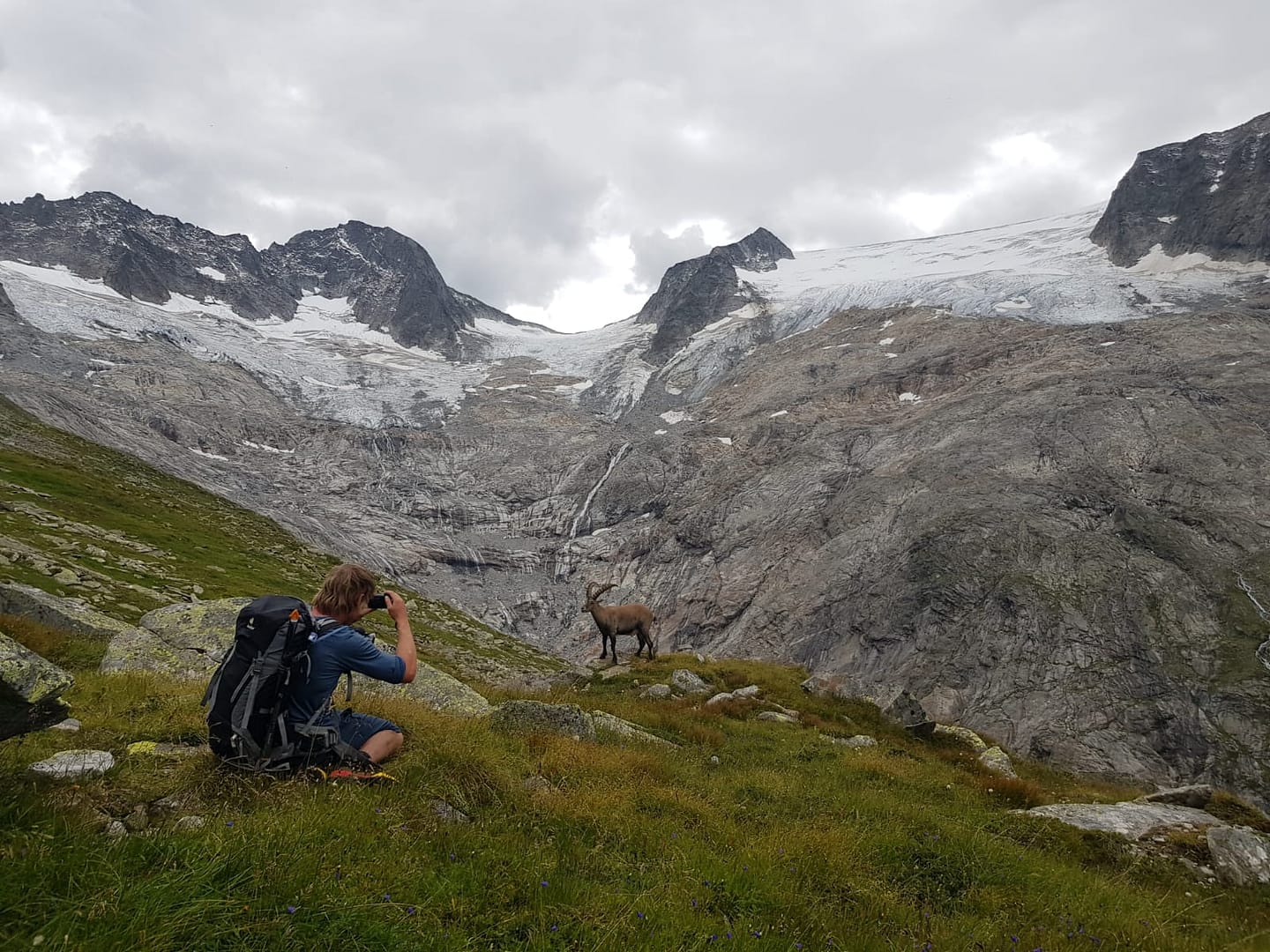 Unsere Tierbegegnungen auf dem Abstieg haben den abenteuerlichen Tag abgerundet. Das Murmeltier war total auf den Steinbock fixiert, welcher wiederrum auf uns fokussiert war. Es wurden wohl vor ein paar WOchen drei Steinböcke aus dem Zoo in diese Gegen ausgewildert und wurden schon in einer Herde aufgenommen. Wir vermuten, dass dieser Steinbock einer von den Dreien ist und deswegen von uns nicht verschreckt wurde, so dass wir tolle Bilder machen konnten.
