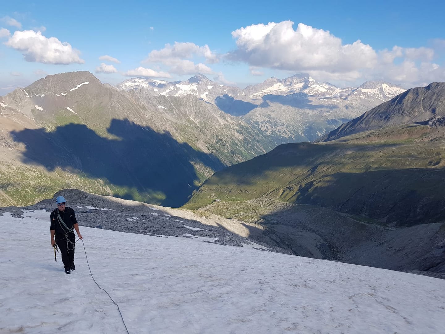 Vom Großen Möseler hat man einen wunderschönen 360° Blick auf die umliegenden Berge. Der Abstieg führt entlang des Aufstiegs.