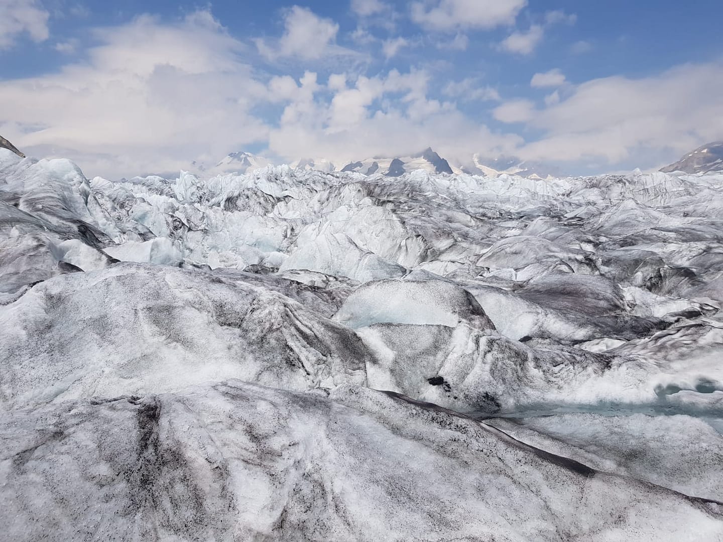 Immer wieder weicht man Spalten aus, so dass sich der ohnehin schon recht lange Weg zusätzlich verlängert. Im letzten Teil auf dem Gletscher geht man näher der östlichen Seitenmoräne weiter bis an den Südfuß des Hüttenfelsens (2.660 m), denn auch hier ist der Gletscher sehr zerklüftet und man muss auf die Spalten aufpassen.