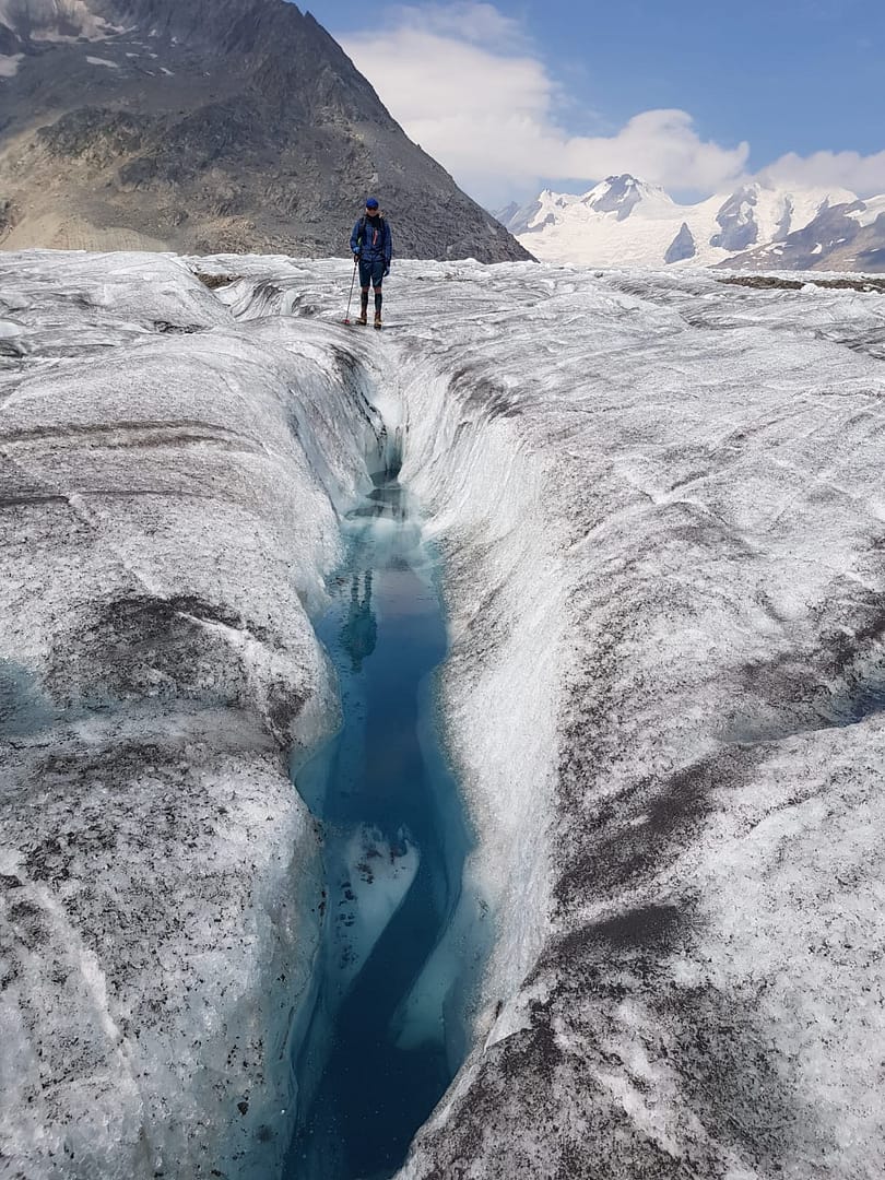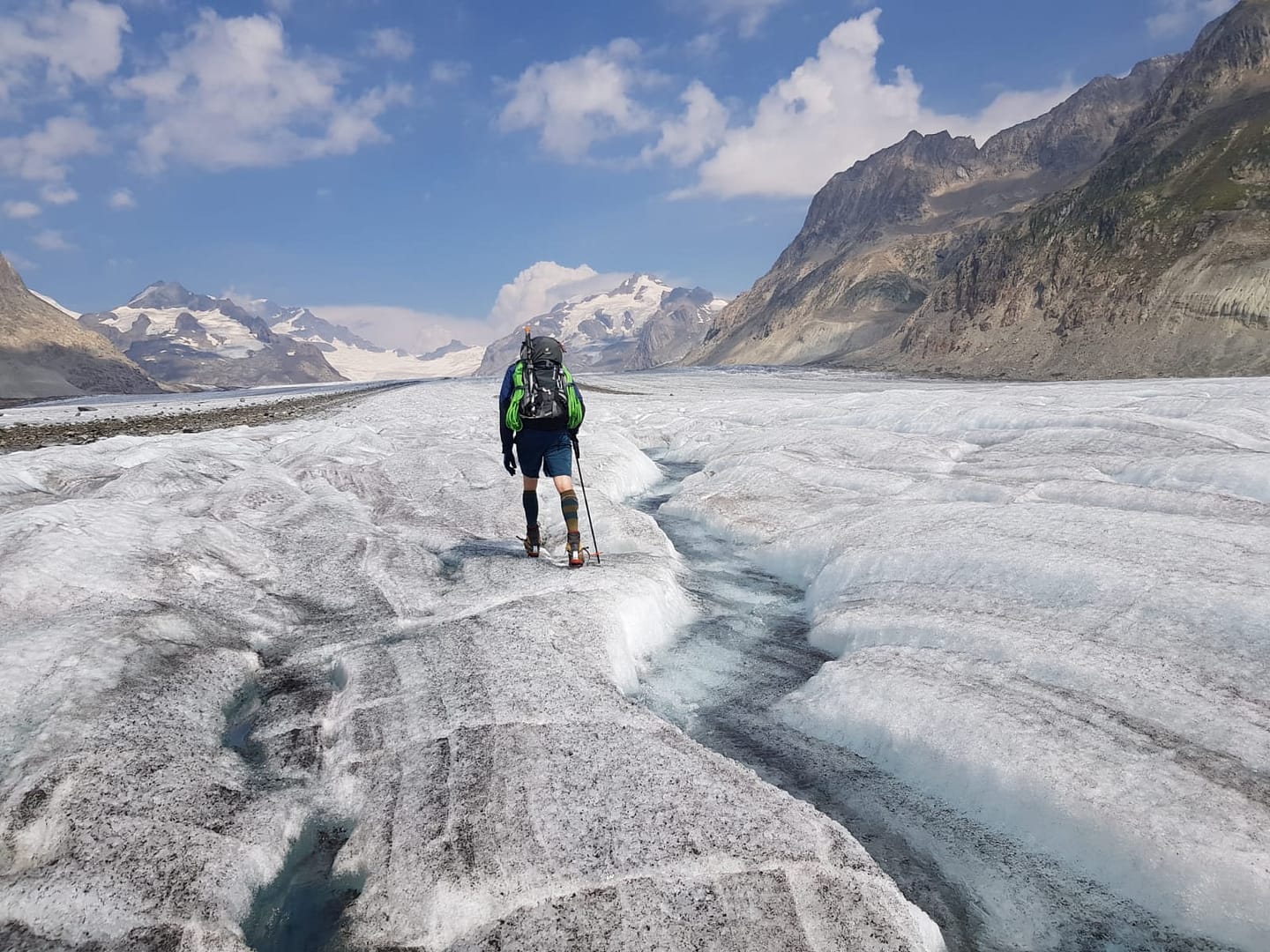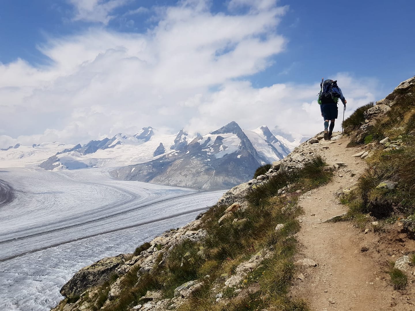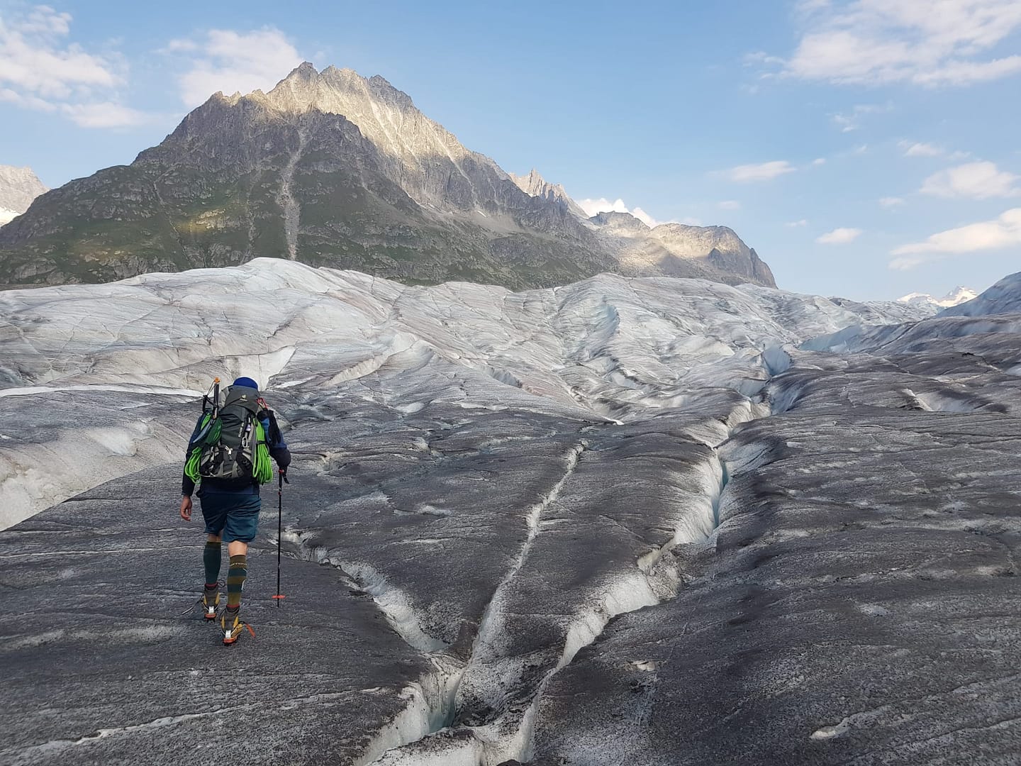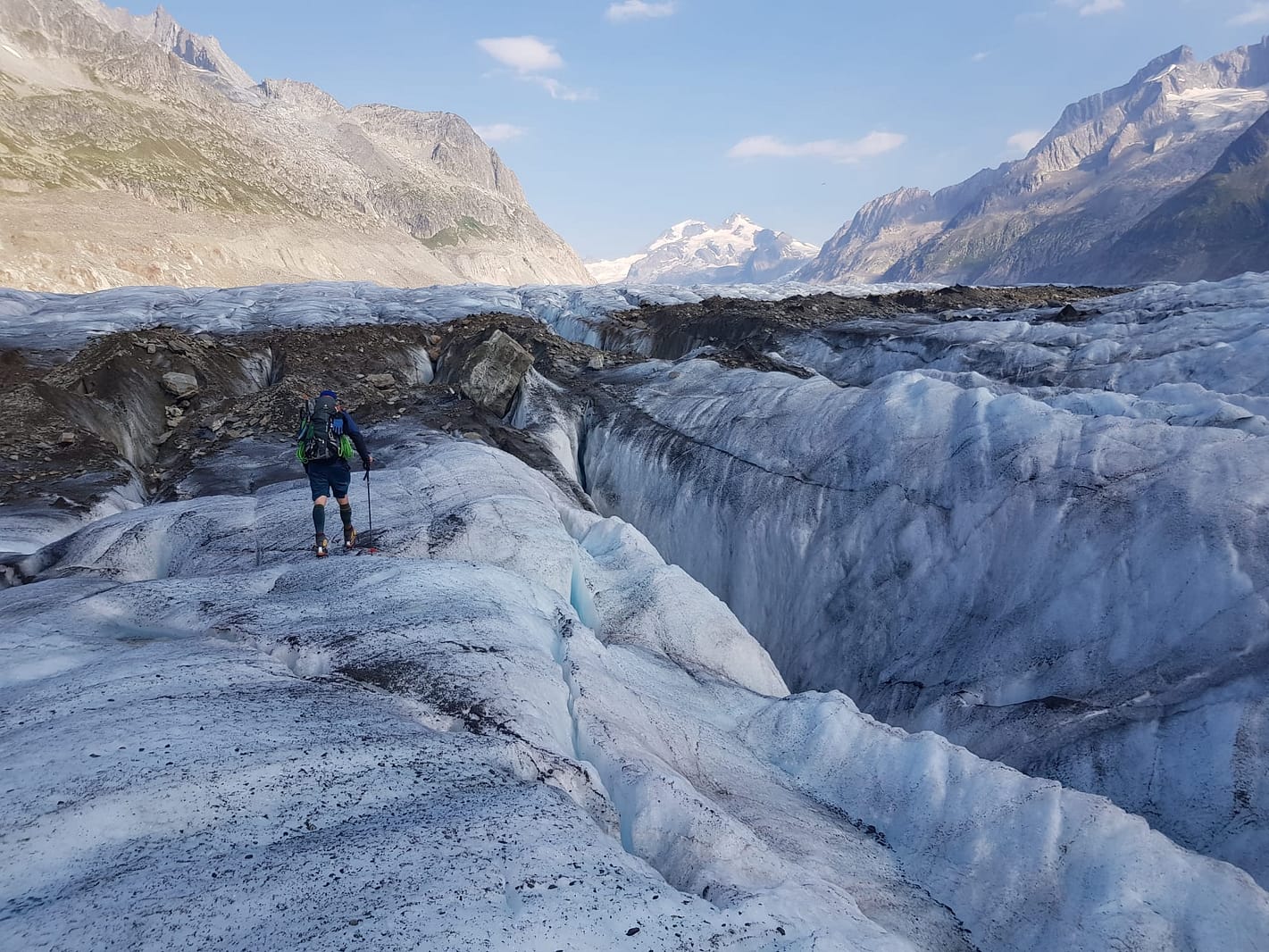 Es ist ein sehr langer, aber technisch einfacher (wenn man den richtigen Weg findet) Hüttenzustieg von der Fiescheralp über den Aletschgletscher, dem größten Gletscher der Alpen, auf die Konkordiahütte.