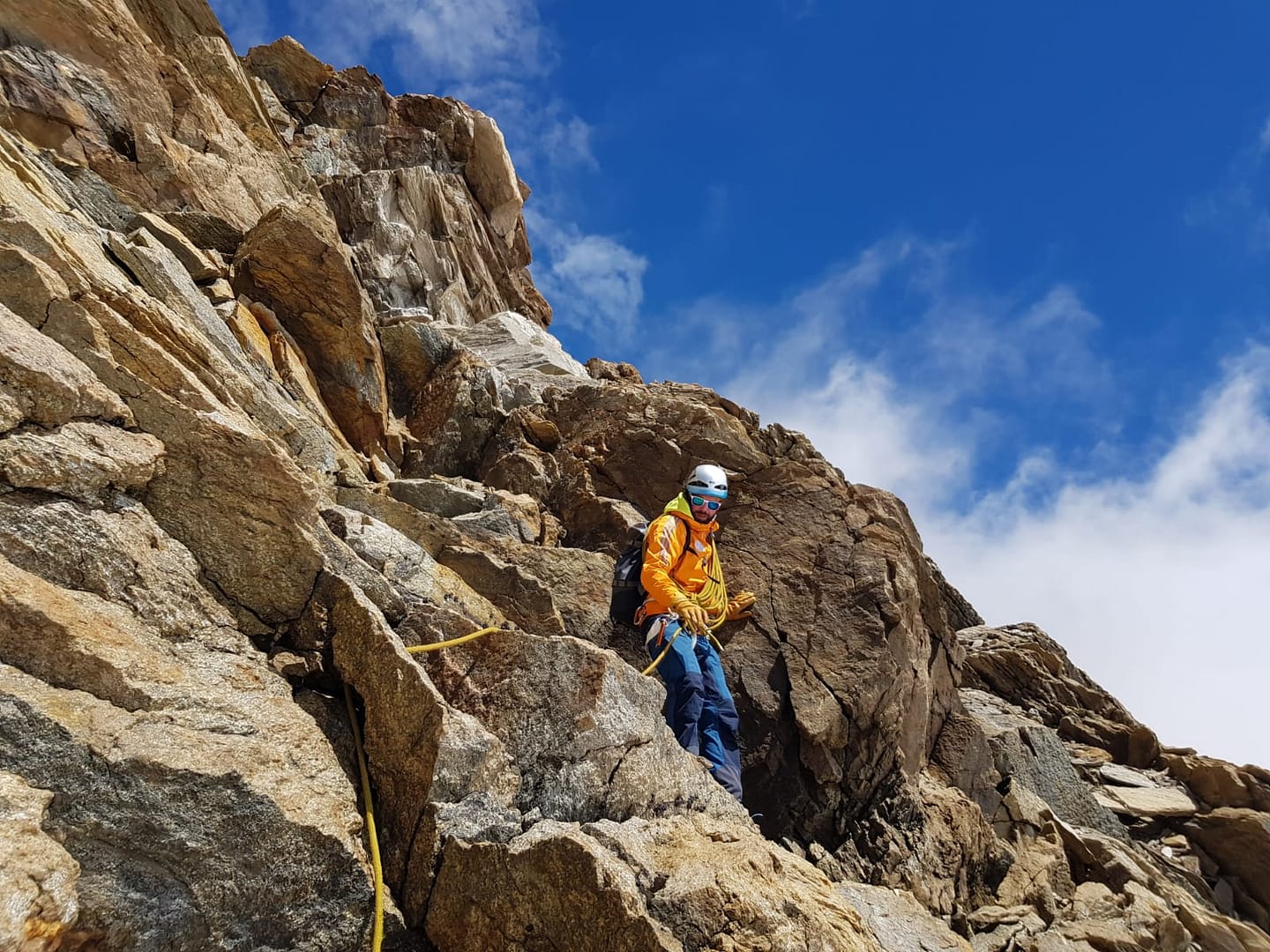 - Hochtourenausrüstung: Steigeisen, Pickel, Seil, Helm, Gurt, Karabiner, Reepschnüre, Eisschraube