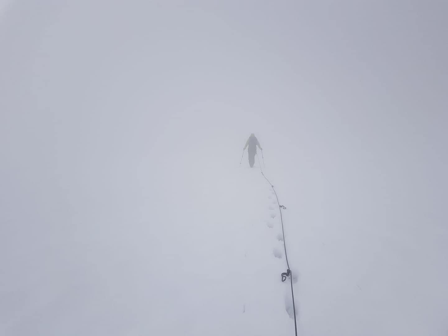 Der eigentliche Plan bestand darin, die Rötenspitze zu überschreiten und rauf zur Hinteren Schwärze. Aufgrund der Sicht, des Wetters und der Bedingungen mit den Schnee haben wir am Gipfel unsere Tour abgebrochen und sind auf gleichem Wege zurück.