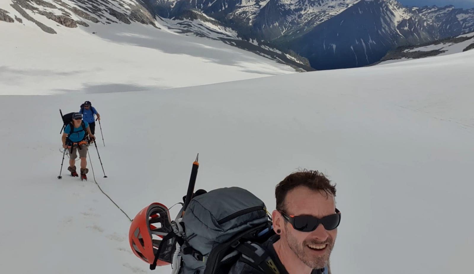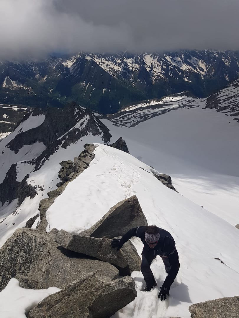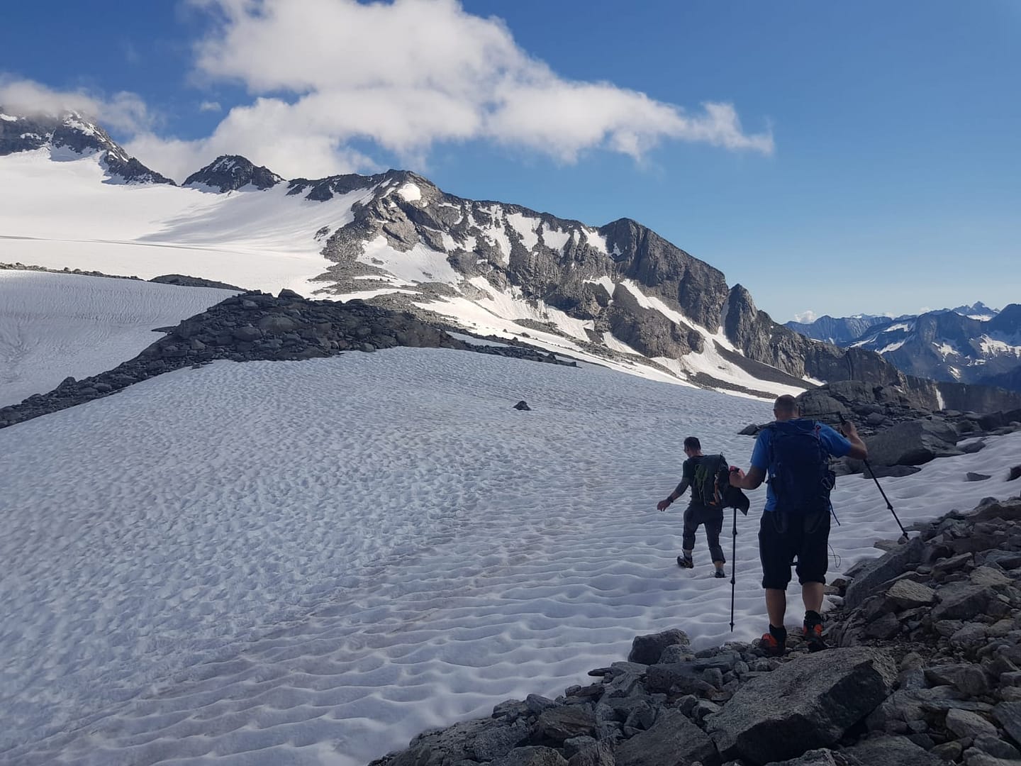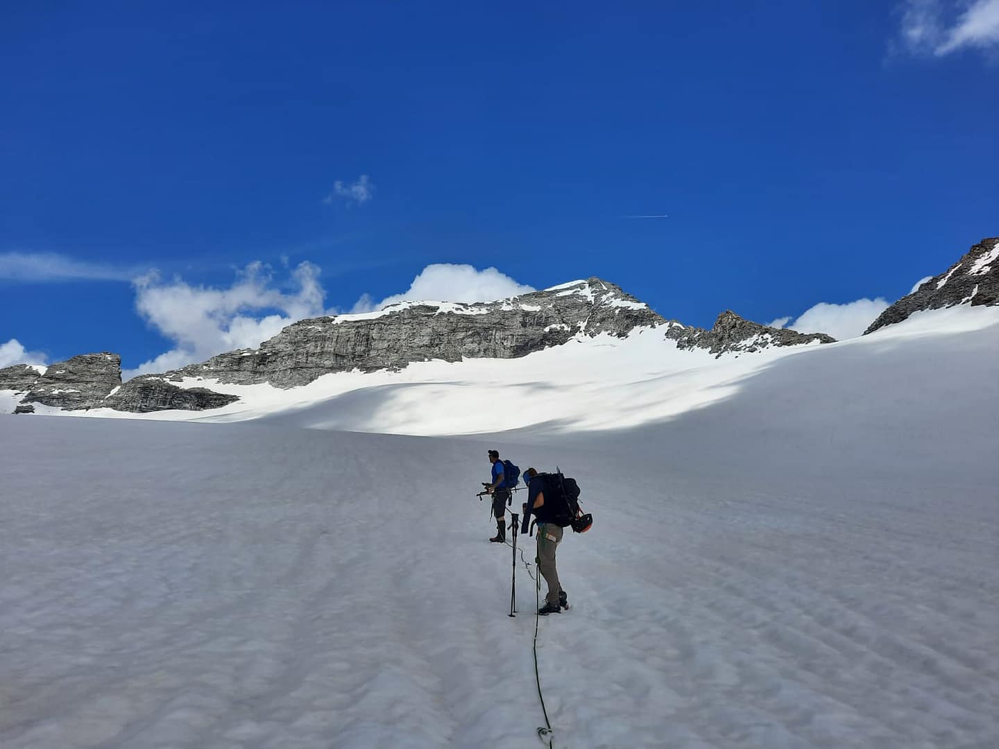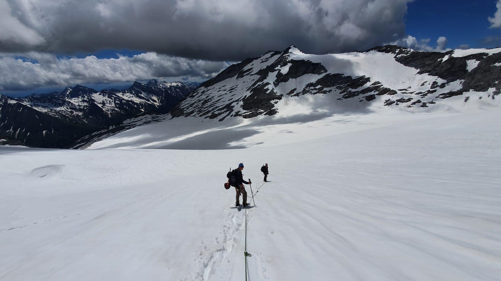 - Hochtourenausrüstung: Steigeisen, Pickel, Seil, Helm, Gurt, Karabiner, Reepschnüre, Eisschraube