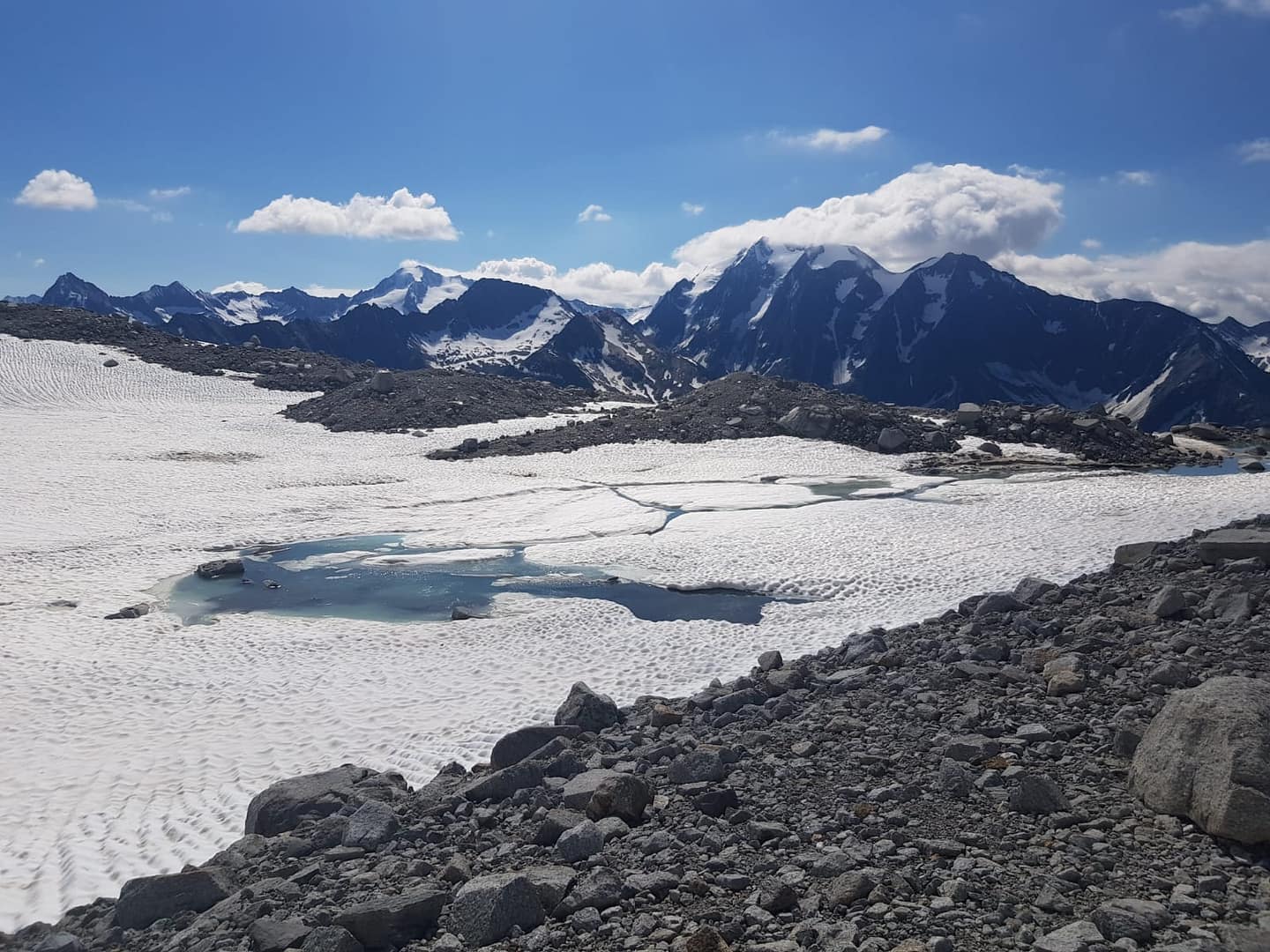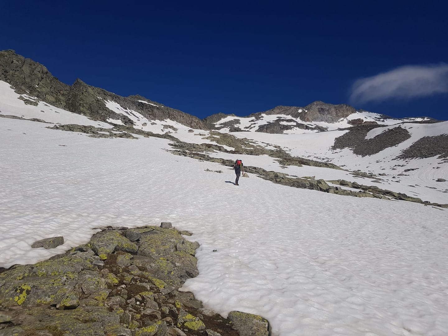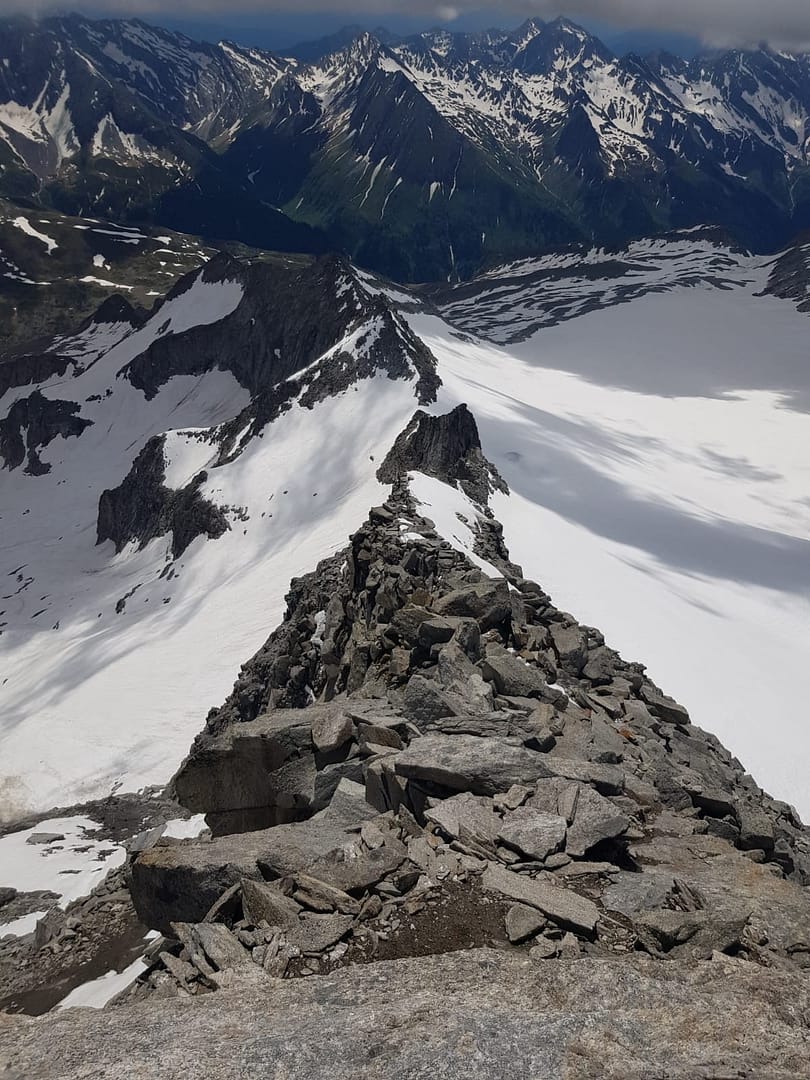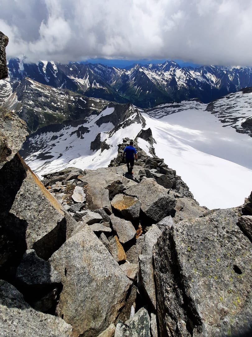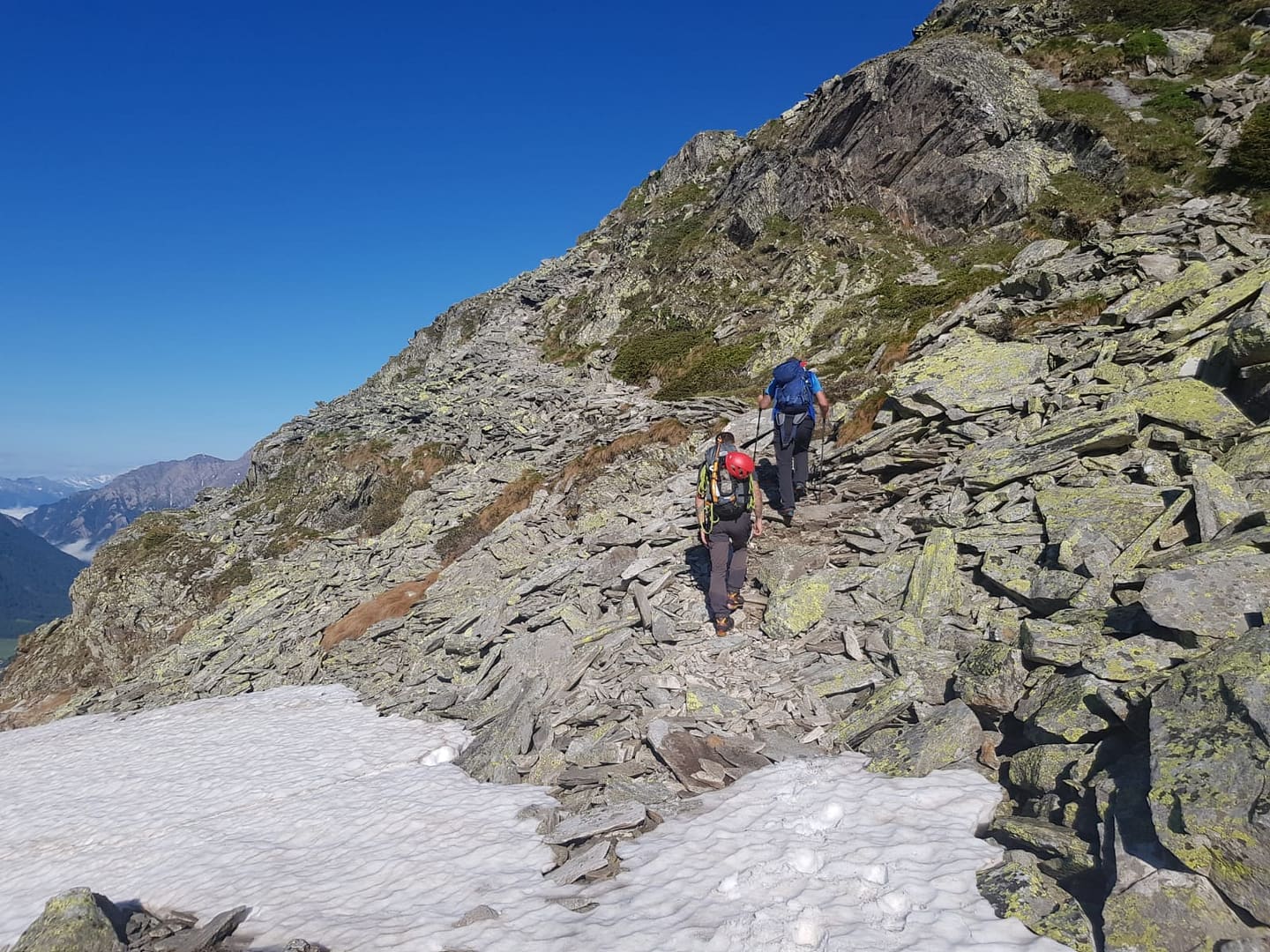 - Hochtourenausrüstung: Steigeisen, Pickel, Seil, Helm, Gurt, Karabiner, Reepschnüre, Eisschraube
