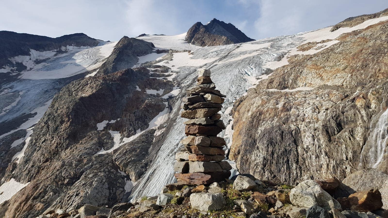 Von der Sulzenauhütte gibt es zwei Möglichkeiten auf den Wilden Freiger zu gelangen. Wir haben uns für den eher wenig begangenen Weg entschieden Richtung Unfallspitze. Von der Hütte geht man Richtung Südost in das Tal hinein bis man den Wilder-Freiger-Gletscher zu Gesicht bekommt. Rechts rauf führt ein Steig (teilweise mit Seilsicherung) hinauf zum oberen Teil des Gletschers. Bereits unten auf den Gletscher zu gehen würde ich vermeiden, da das Stück sehr steil und spaltig ist. Oben am Gletscher angekommen haben wir diesen gequert – auch hier unbedingt auf die Spalten achten. dann führt der Pfad Richtung Süden hinauf um dann das letzte Stück über den Grat und Schutthaufen zum Gipfel zu gelangen.