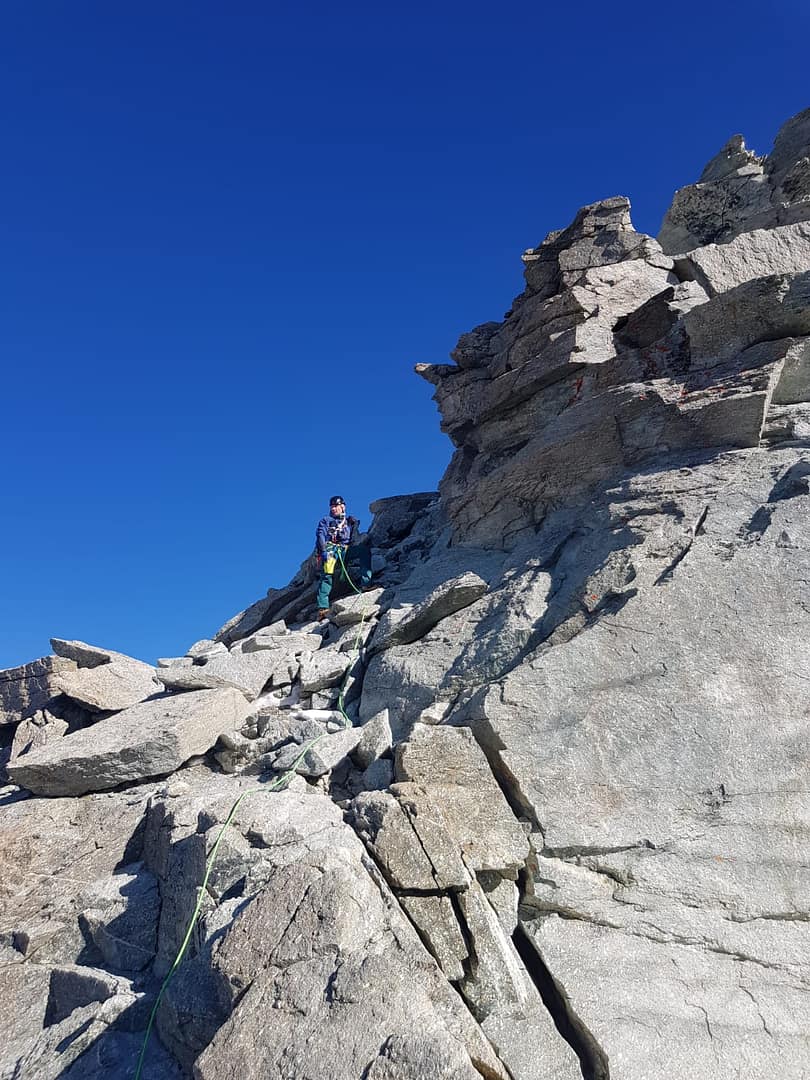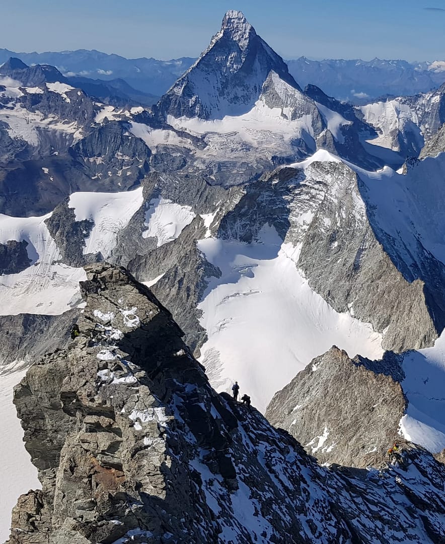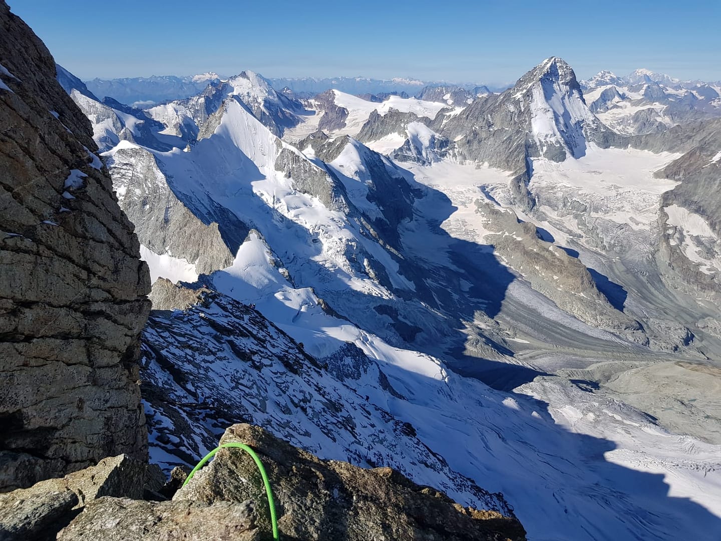 Wir waren 1983 auf dem Zinalrothorn, ebenfalls über den Südostgrat. Im steilen Wandteil waren die Firnfelder ein Tanz auf des Messers Schneide: Der Schnee war „schwammig“, man musste sehr gut die Balance halten, um nicht nach vorne oder hinten abzurutschen.