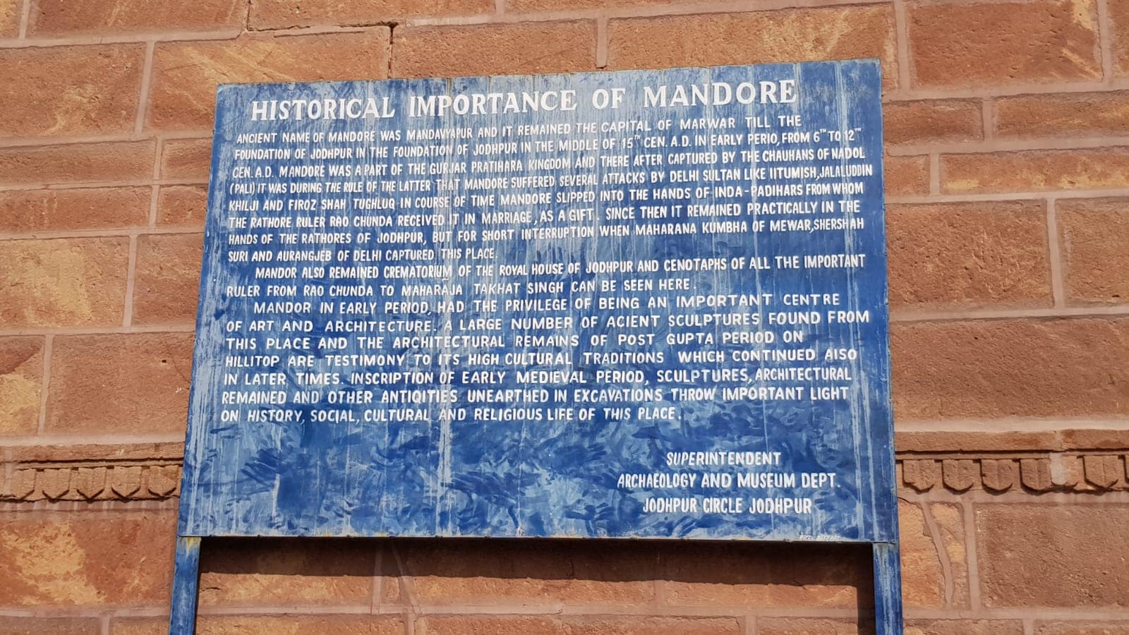 Der Mandore Garden ist eine der am besten erhaltenen Stätten, die die Geschichte einer vergangenen Ära erzählt. Alles fing in der nur fünfeinhalb Meilen nördlich von Jodhpur gelegenen antiken Stadt Mandore an, wo im 6. Jahrhundert der Hauptautoritätssitz der Pratiharas-Dynastie war. Die Prinzessin dieser Dynastie heiratete König Rao Chunda von der Rathore-Dynastie, welche im Jahr 1427 den Sitz in Mandore übernahm. Dort herrschte Mewar-Herrscher Rana Kumbha ermordet wurde. Der Sohn von Rao Rinmal, entkam dem Attentat und versuchte mehrere Jahre lang de Stadt zurückzuerobern, aber alle Versuche scheiterten. Im Jahr1453 gelang es Rao Jodha, Mandore zurückzubekommen.