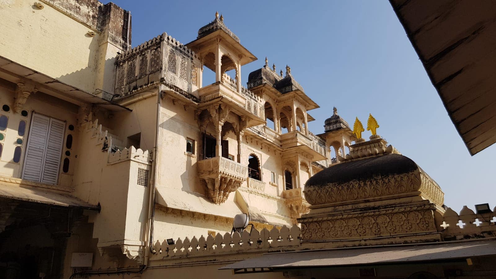 Der Stadtpalast in Udaipur war einst der größte Palastkomplex in Rajasthan, welcher sich über dem Pichhola See erhebt. Die Besonderheit dieses Palastes ist, dass es eher eine Ansammlung von Gebäudekomplexen ist, welche von verschiedenen Maharanas gebaut wurden und trotz allem einheitlich zusammenfügt. Viele Türme, Balkone und Kuppeln säumen das Äußere des Palastes. Der Eintritt in den Palast kostet 330 RS.