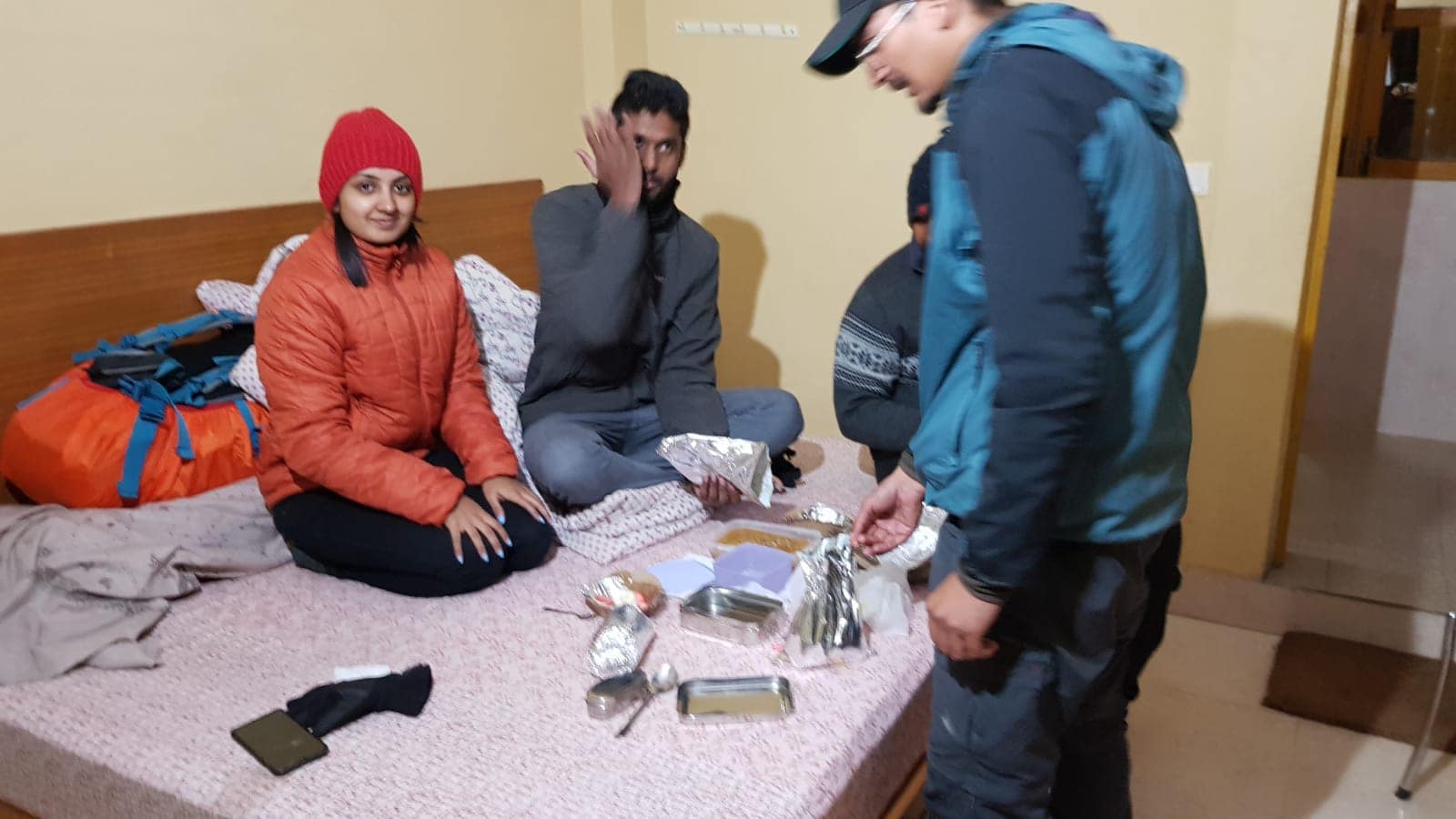 In dem Dorf war um die Uhrzeit und wahrscheinlich lag es auch an der Jahreszeit kaum noch ein Restaurant offen, so dass wir zusammen Essen bestellten und dies dann auf dem Bett gemeinsam gegessen haben. Danach gab es noch ein paar Einweisungen und Informationen zum Trek, der am nächsten Tag startete.