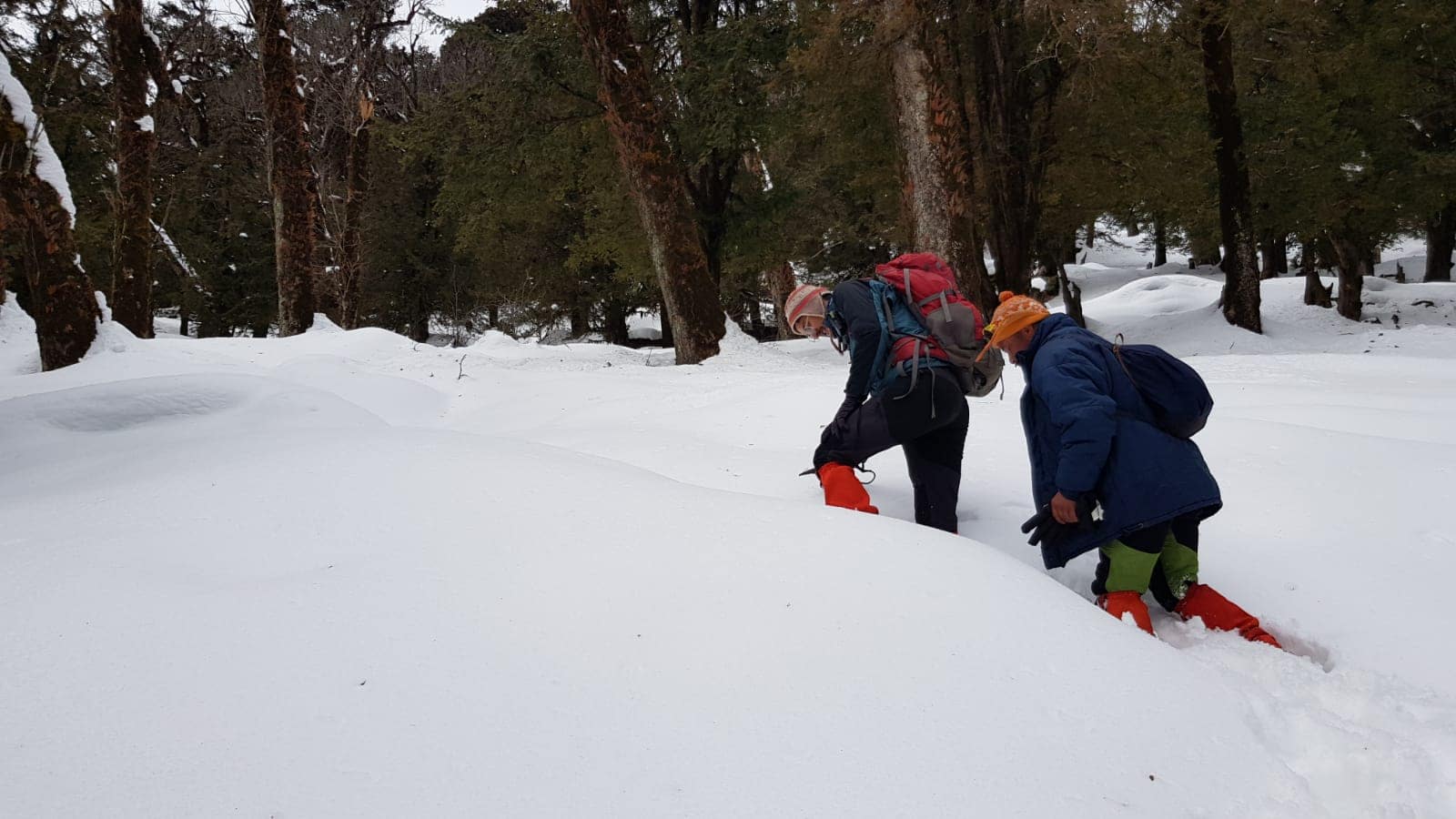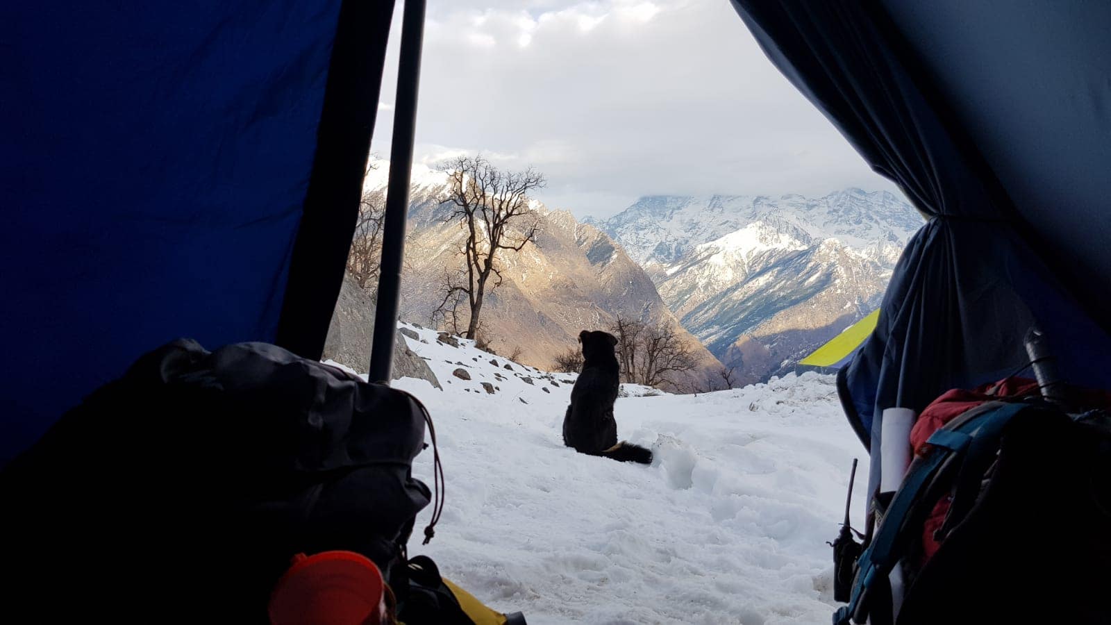 Der Tag wurde nicht besser, also wir zurück im Camp waren, waren unsere Schlafzelte bereits aufgrund des Windes umgefallen, wir schnappten uns noch schnell unsere Klamotten und räumten alles in das große Aufenthaltszelt. Das Wetter wurde immer unbeständiger, so dass das Zelt regelmäßig vom Schnee befreit werden musste. In der Nacht haben wir Schichten eingeteilt, um den Schnee vom Zelt zu räumen. Wir waren uns nicht bewusst wie kritisch die Situation war bis irgendwann die Zeltstange angefangen hat sich zu biegen. In der Nacht sind wir noch einmal „umgezogen“ und wir haben uns mit acht Personen ins das kleine Küchenzelt gequetscht – Aufbau und Form des Zeltes war stabiler als die anderen. Neben den Kochutensilien und Essensvorräten haben wir im halbsitzenden Zustand geschlafen.