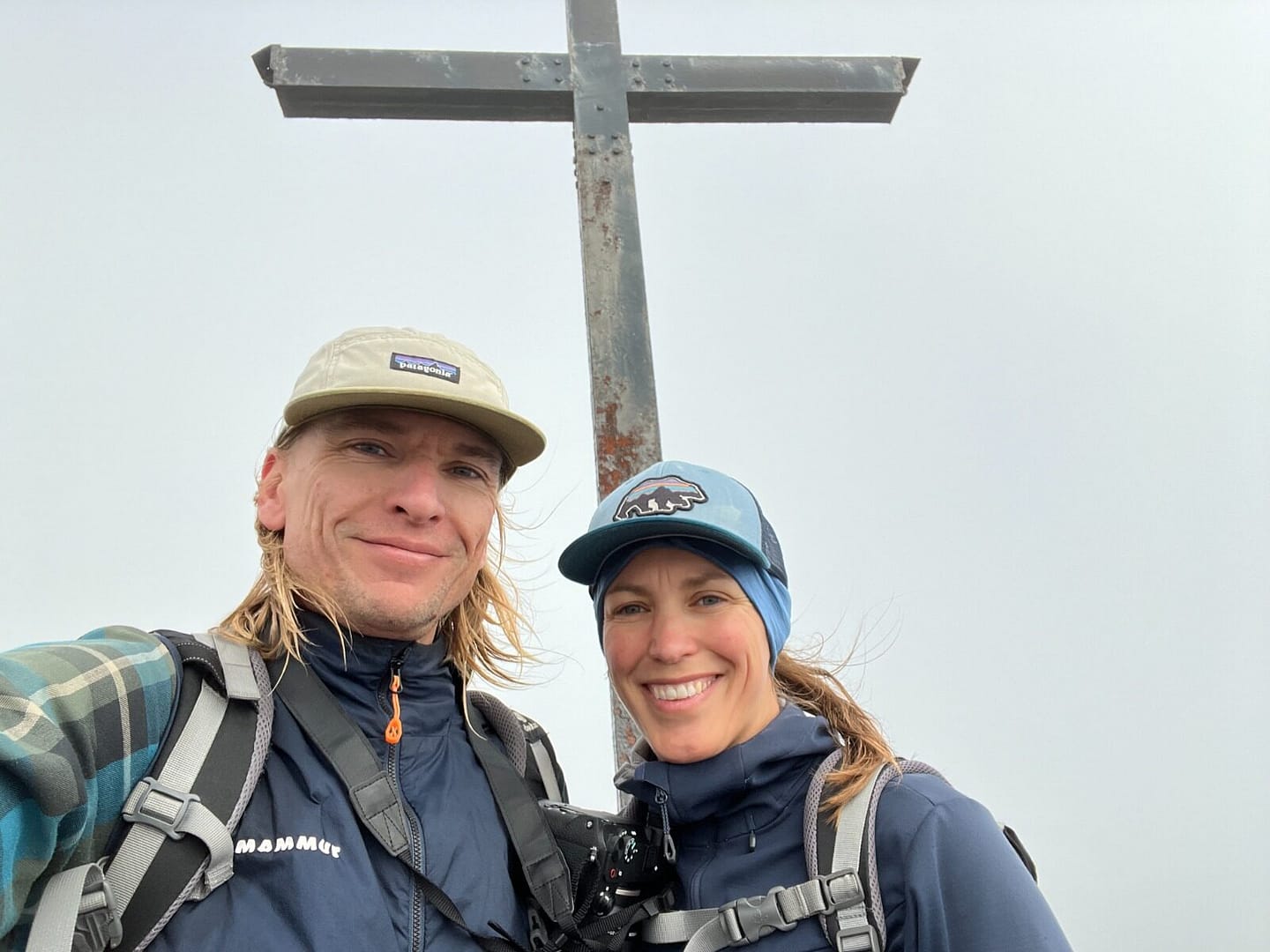Die letzten 80 Höhenmeter steigen wir in Nebel hinauf. Leider bleibt uns die Sicht verwehrt, der Wind frischt auf und schließlich setzt Regen ein, sodass wir vom Gipfel selbst wenig genießen können. Ein Steinkreis bietet zumindest etwas Schutz vor den starken Böen.