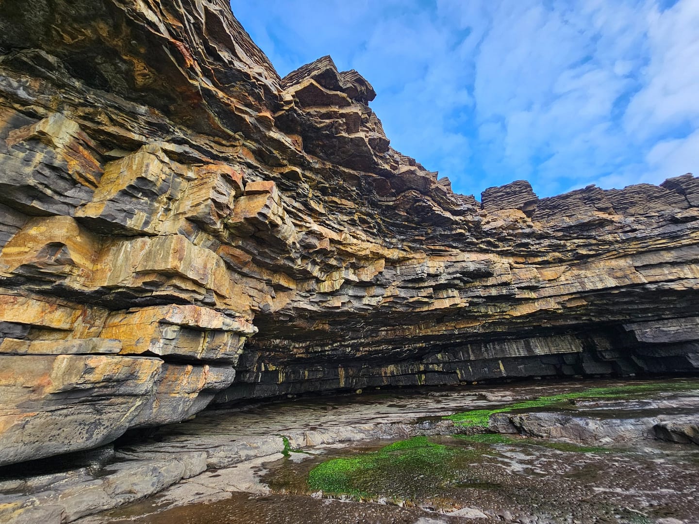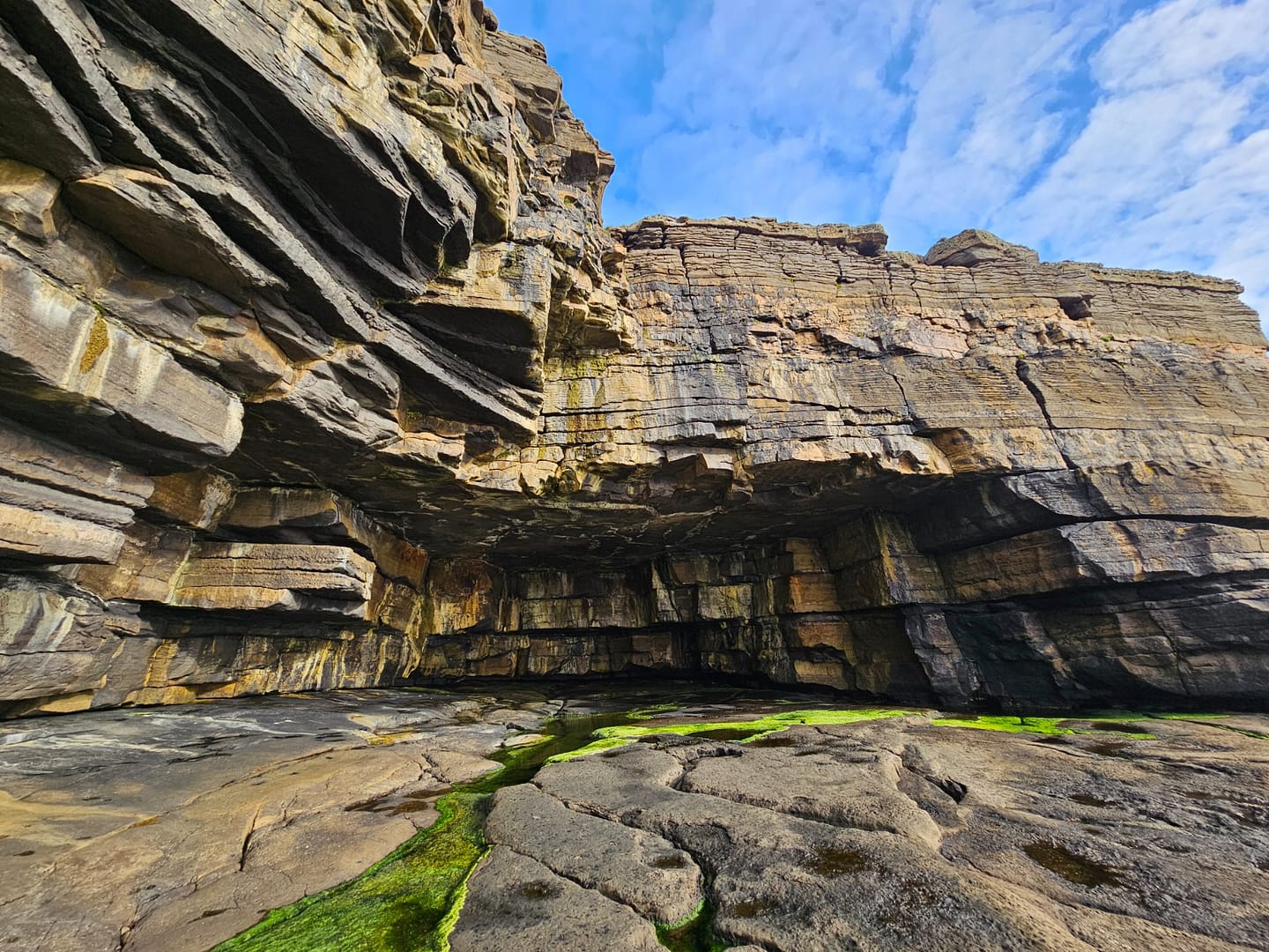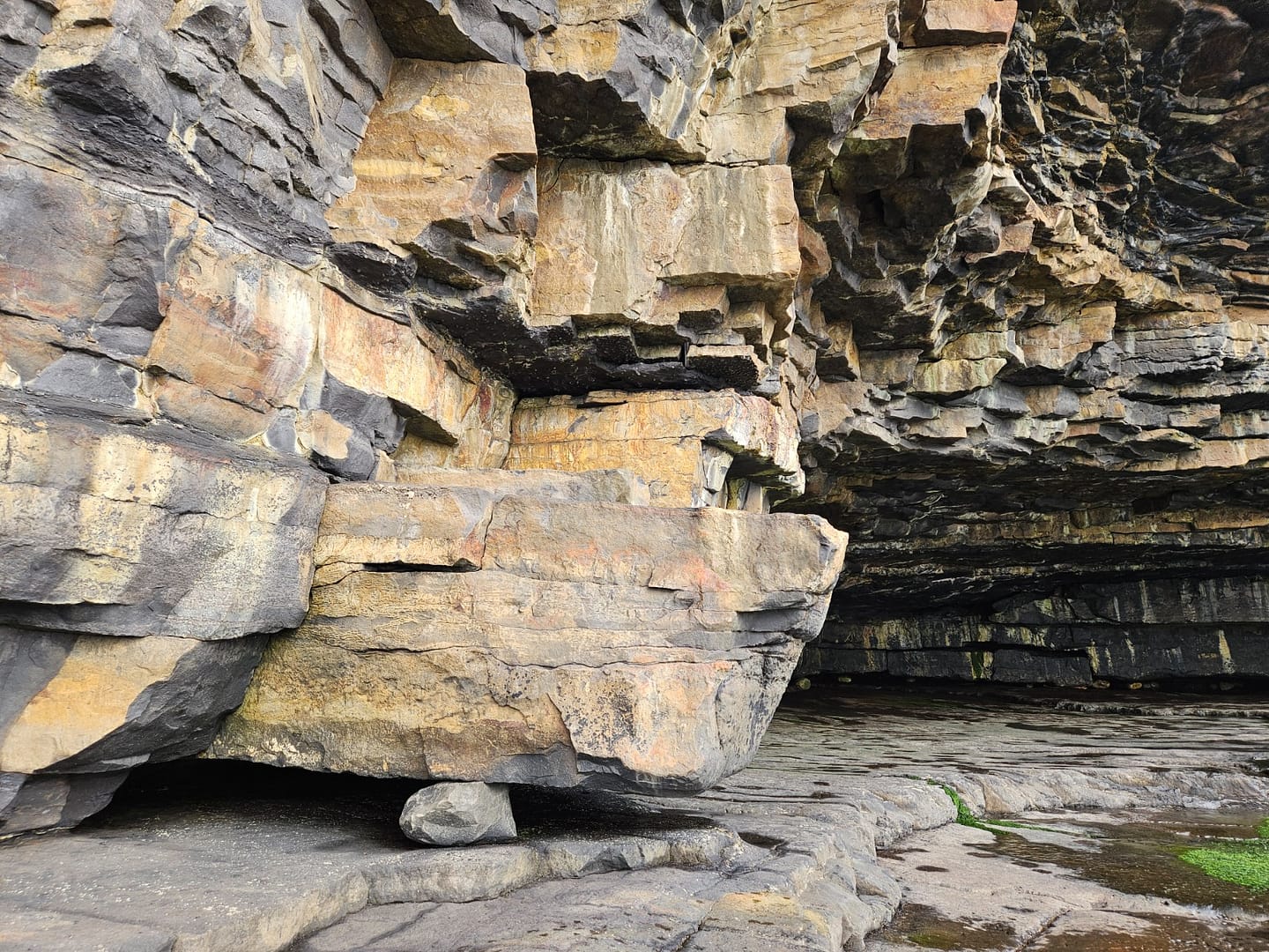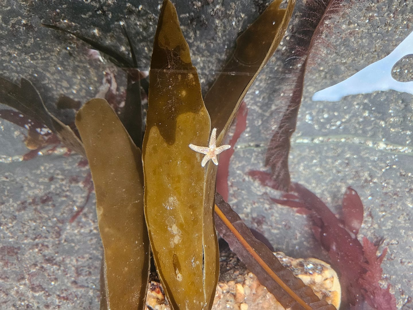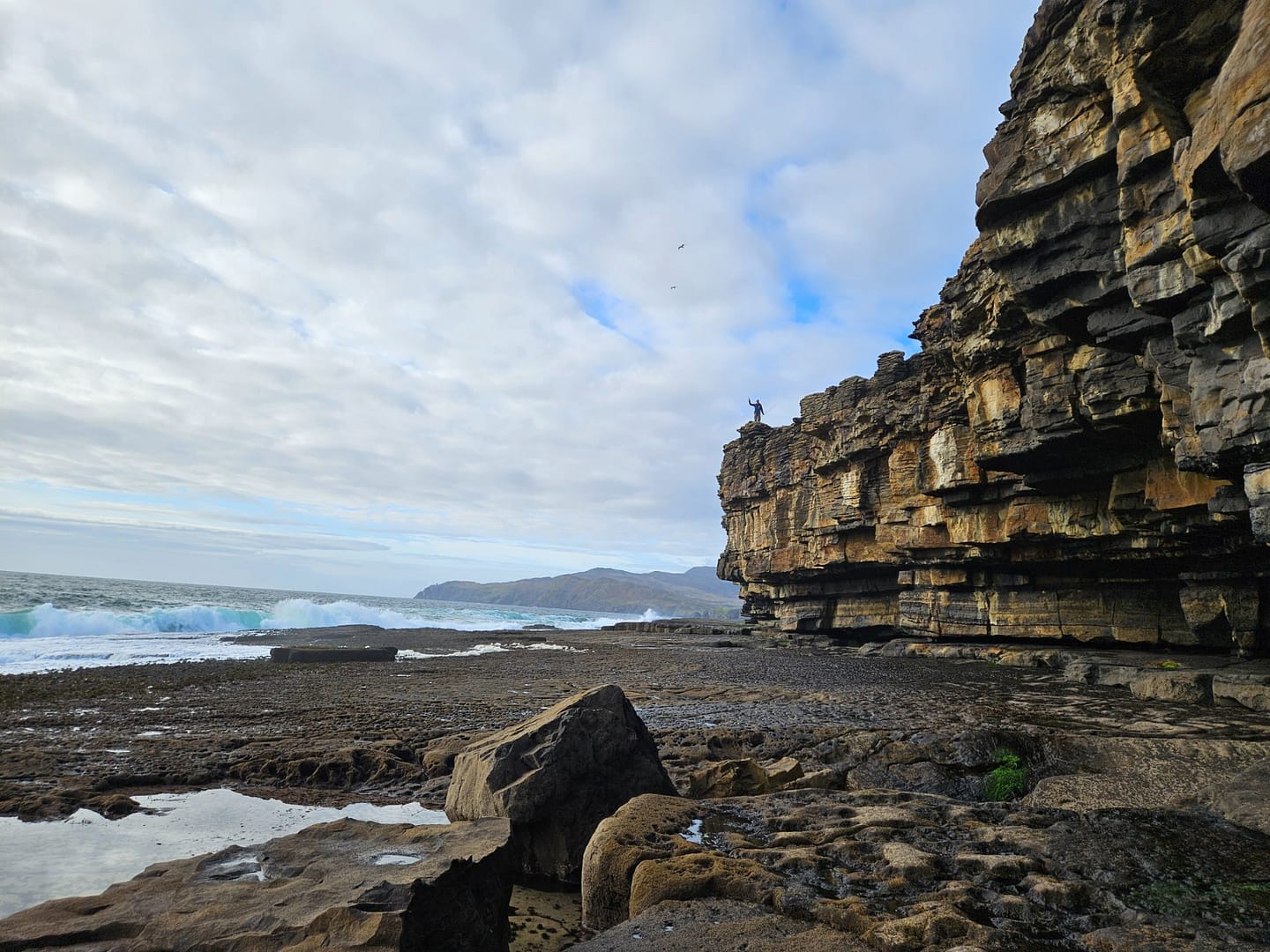 Die Umgebung lud zum Erkunden ein. Über Felsen und mit ein wenig Kletterei konnten wir bis hinunter ans Meer gelangen. Unten, zwischen den Felsen, offenbarte sich eine eigene kleine Welt: Seesterne, Muscheln, Algen – und das unermüdliche Tosen der Wellen, die kraftvoll gegen die Klippen schlugen. Die Gischt wurde vom Wind erfasst und wehte uns um die Ohren.