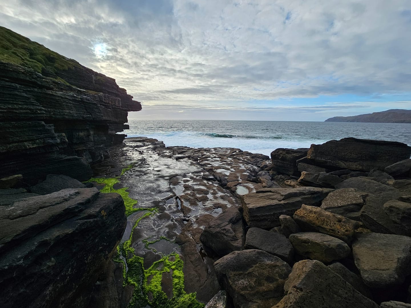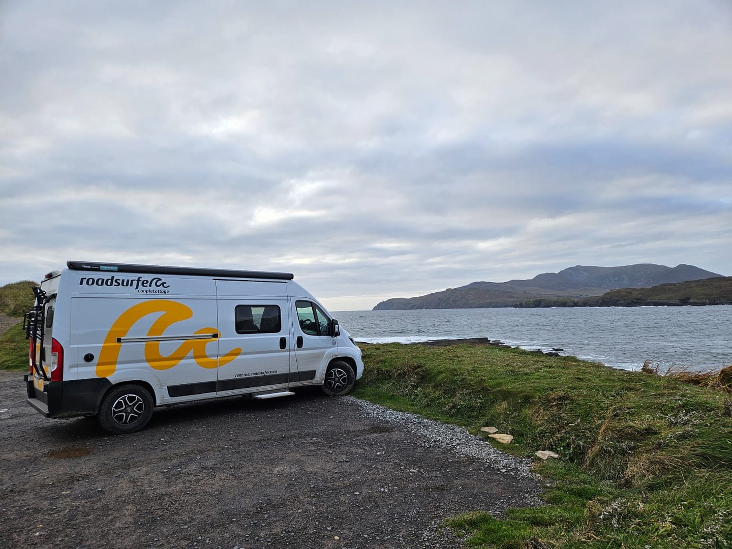 Manchmal findet man sie einfach – diese Stellplätze, die schöner nicht sein könnten. Unser Camper stand direkt oberhalb der Klippen bei Crannagoge, mit freiem Blick auf den Atlantik. Es war einer dieser Orte, an denen man sofort spürt: Hier bleiben wir.