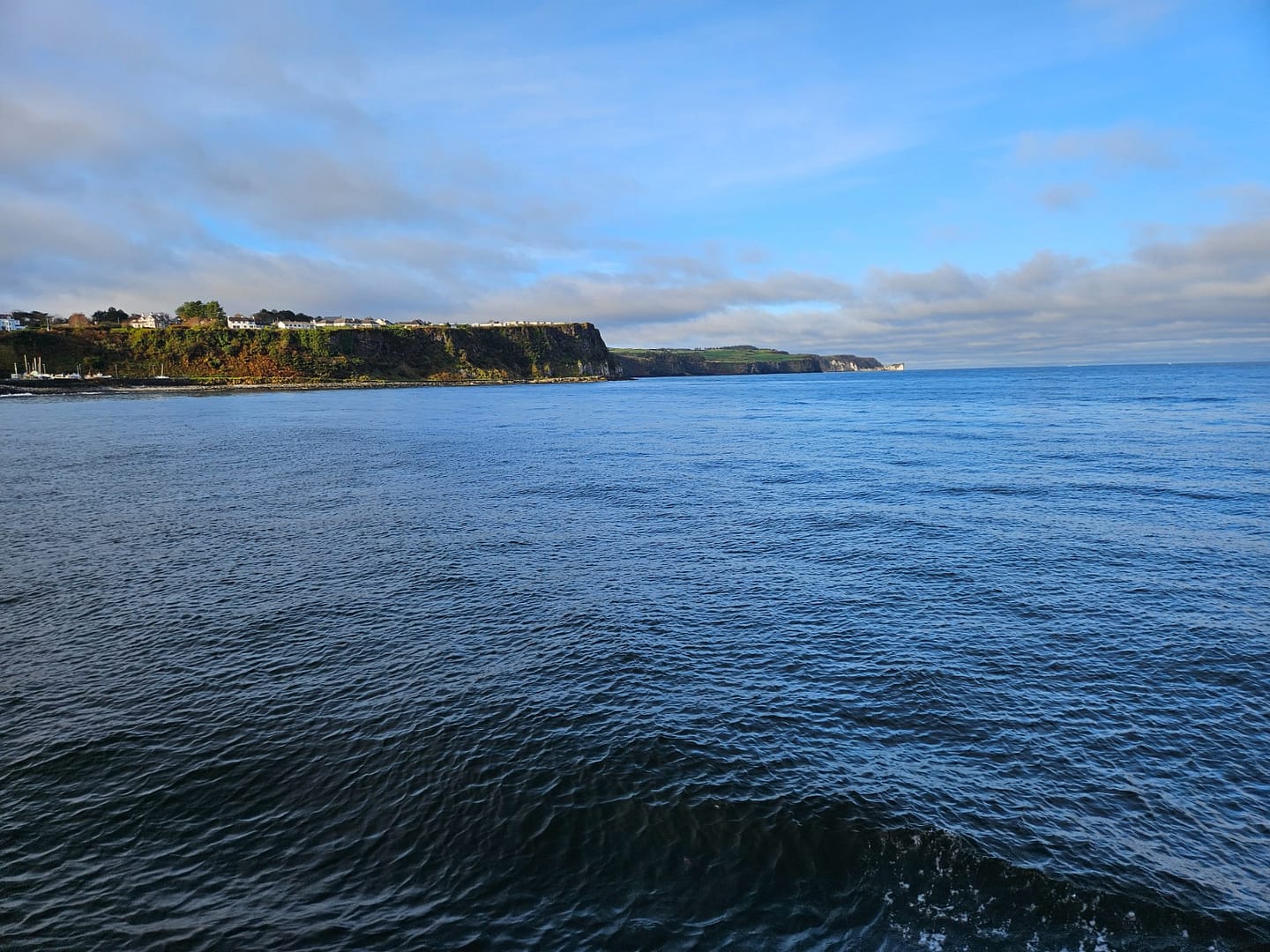 Also änderten wir die Richtung und wanderten nach Westen, in Richtung des Seabird Centres. Der Weg dorthin führt größtenteils über eine schlichte, lange Straße – eher funktional als charmant, mit wenig Abwechslung. Kurz vor dem Ziel entdeckten wir schließlich eine Abzweigung zum Cliff Walk. Die Ausschilderung war spärlich, der Pfad nicht klar ersichtlich, und so mussten wir uns unseren Weg mehr oder weniger zusammenreimen. Dafür wurde die Aussicht wilder – endlich das, was man sich erhofft hatte.