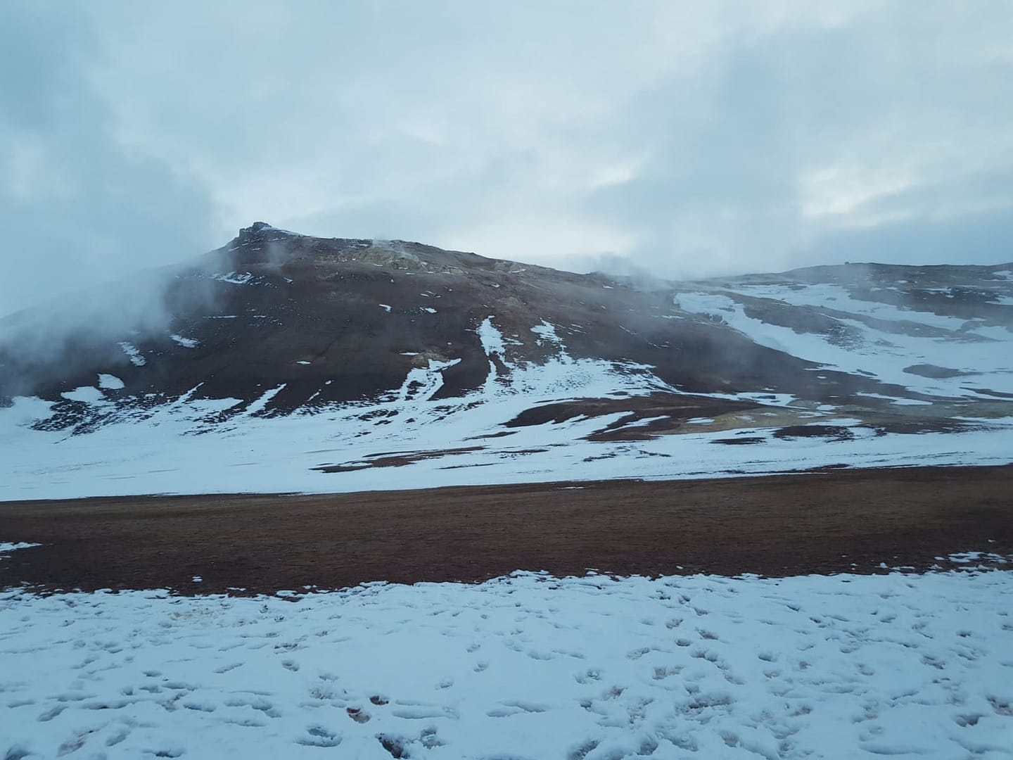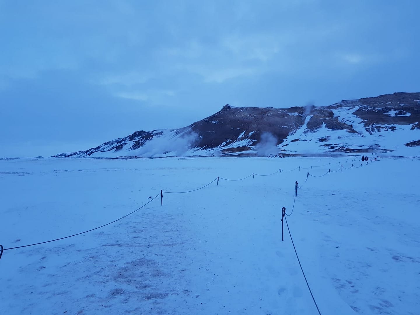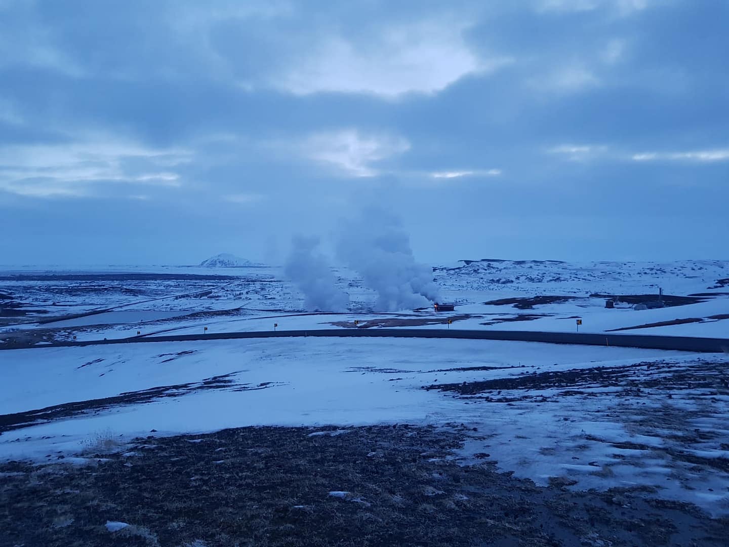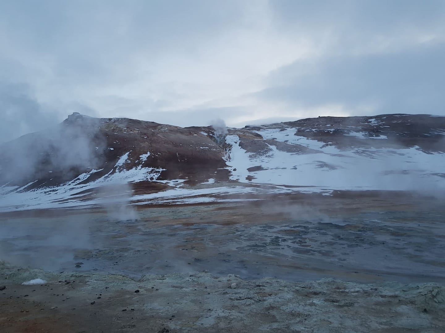 Unser Tag verlief anders als geplant: Bereits der zweite Campingplatz auf unserer Route war geschlossen, sodass wir drei Tage in einen packen mussten. Ich hätte mir gerne für einige Erlebnisse mehr Zeit genommen, doch dennoch erlebten wir viele wunderbare Momente. So erreichten wir am Abend das Geothermalgebiet Hverarönd Hverir am Námafjall.