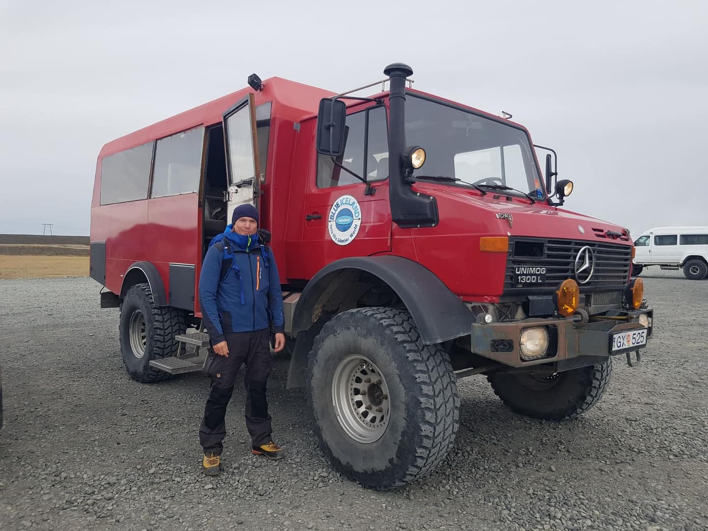 Von der Gletscherlagune Jökulsárlón fuhren wir mit dem Superjeep etwa 15,6 km zur Gletscherzunge Breiðamerkurjökull. Erwartungen und Realität liegen oft gar nicht so nah beieinander. Der Superjeep war zwar interessant, aber die holprigen Straßen als Teil des „Events“ zu vermarkten, wirkte etwas übertrieben – solche Wege hatten wir bereits mit unserem Camper erlebt. Wir hatten gehofft, dass der Superjeep noch etwas Spektakuläres bieten würde, wie zum Beispiel ein Stück den Gletscher hinaufzufahren, aber dem war leider nicht so. Nach rund 30 Minuten erreichten wir den Startpunkt unserer Wanderung.