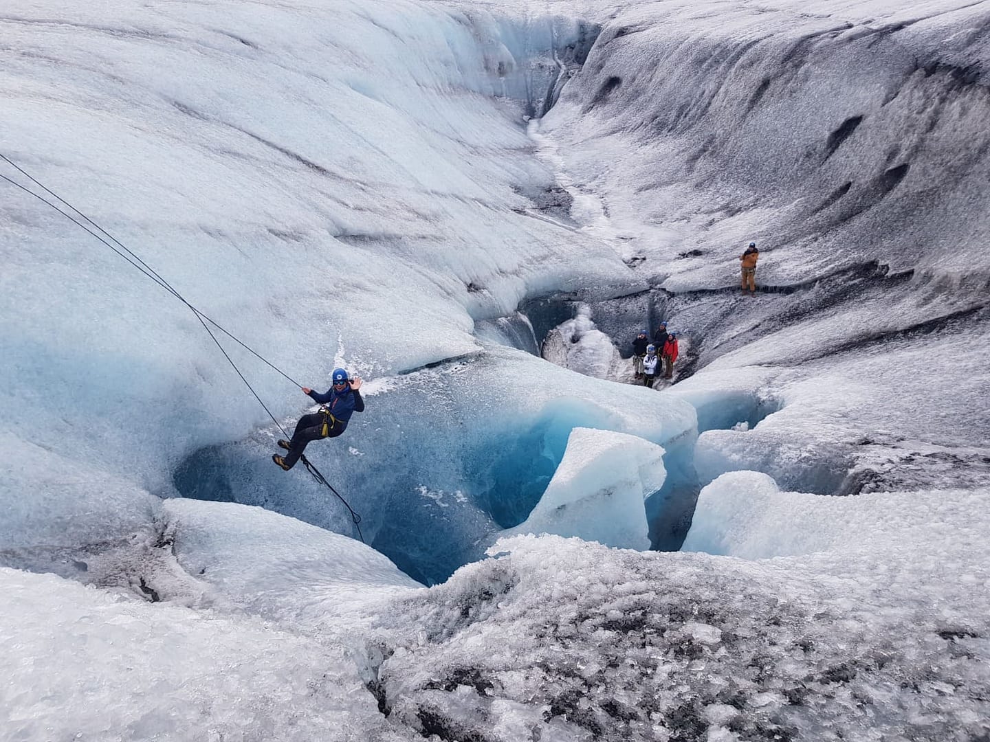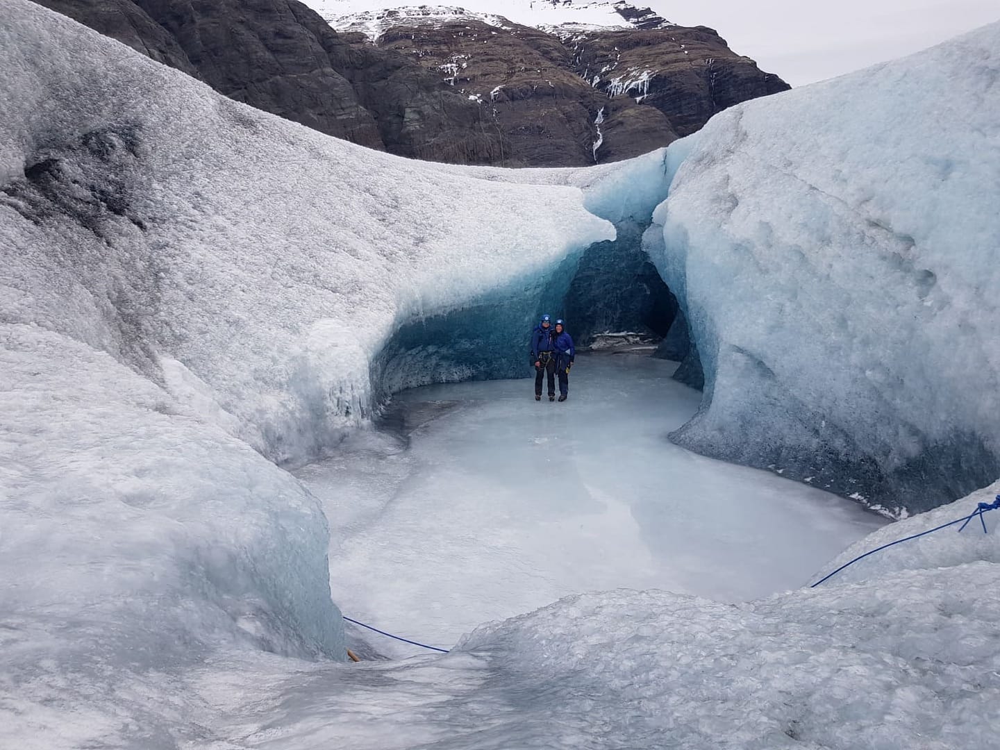 Auf dem Gletscher bewunderten wir einige beeindruckende Gletschermühlen. Solche großen Gletschermühlen hatte ich bisher noch nie gesehen, obwohl ich in den Alpen oft auf Gletschern unterwegs bin.