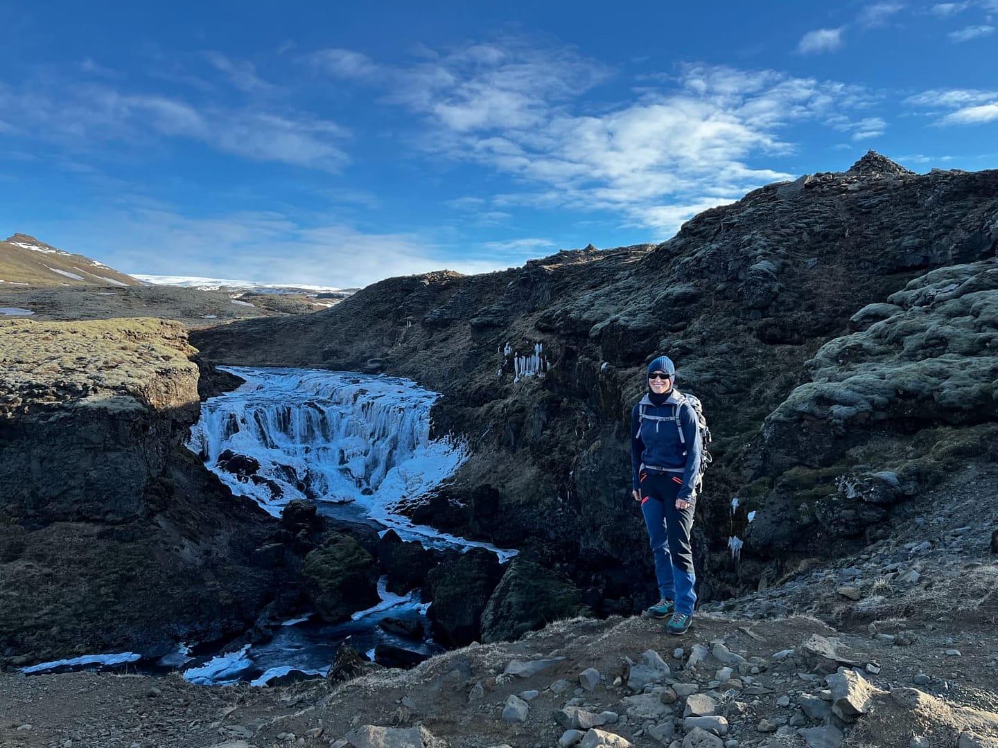 Der Fluss Skóga, der seinen Ursprung im berühmten Eyjafjallajökull-Gletscher hat, schlängelt sich von den eisigen Höhen des Gletschers hinunter zum Meer. Für einen Bruchteil seiner Strecke, für ca. 8 km folgen wir diesen flussaufwärts, wo wir eine Vielzahl von spektakulären Wasserfällen passieren.