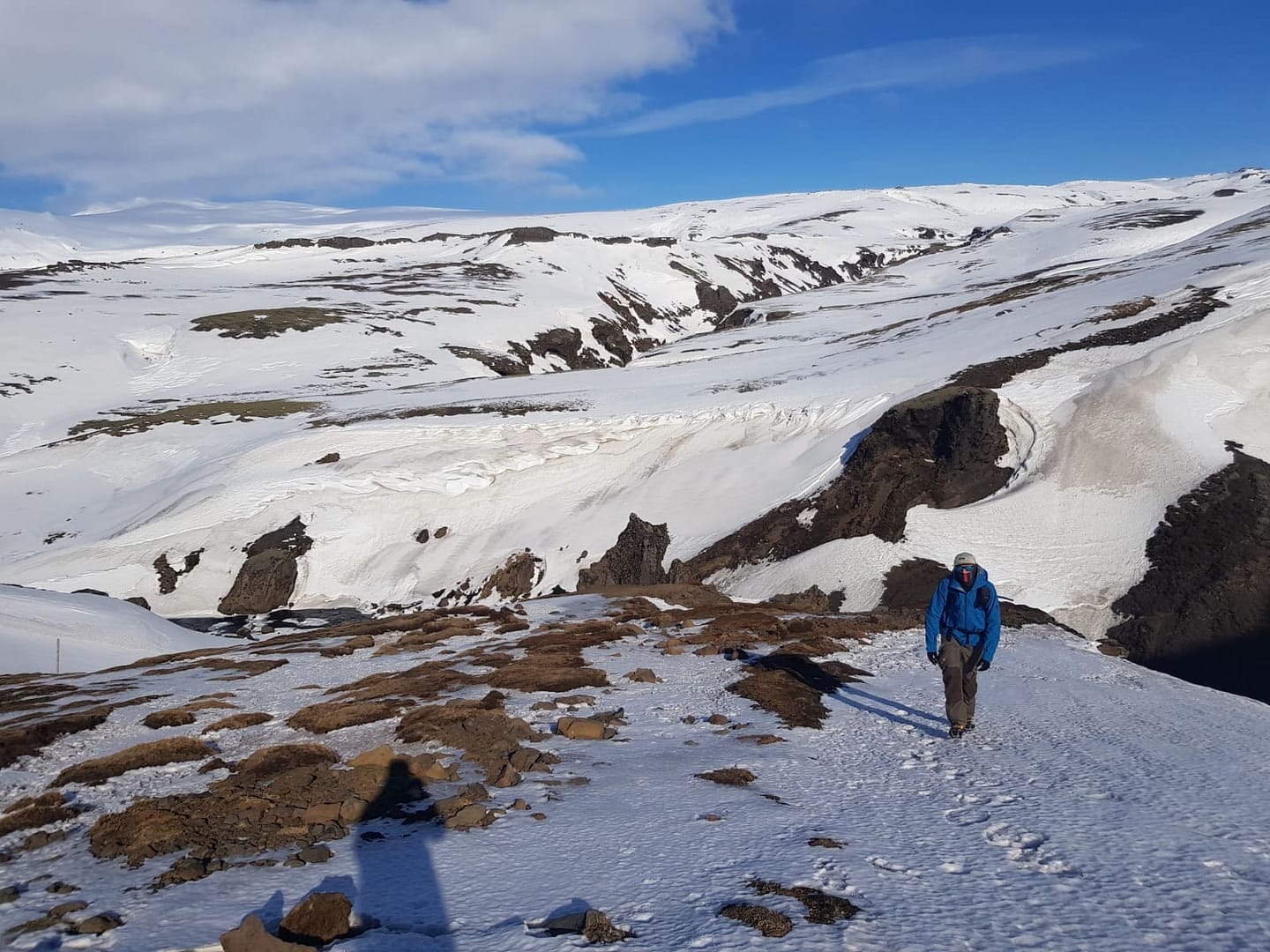 Zu Beginn begegnen einem noch andere Wanderer, doch ihre Zahl nimmt schnell ab, und der Pfad wird zunehmend unwegsamer. Bald sind nur noch Holzflöcke als Markierung zu erkennen, die sich auf Grund des Schnees teilweise nur schwer ausmachen lassen. Unsere Grödel erwiesen sich als äußerst hilfreich, da die Schneedecke teilweise vereist war.