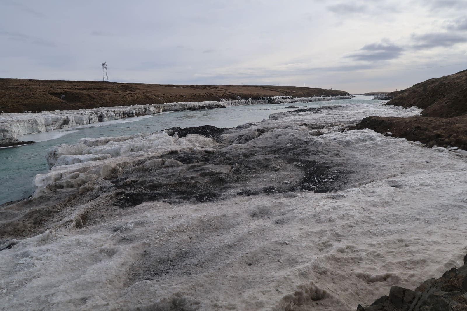 Unter sehr kalten Winterbedingungen hat sich das Eis oft bis zu einer Dicke von bis zu 30 Metern an den Wasserfall aufgehäuft, aber heute treibt weniger Eis den Fluss hinunter zu den Urriðafoss-Fällen, dank der weiter oben gelegenen Stauseen. Bevor der Fluss oberhalb der Urriðafoss-Fälle gezähmt wurde, floss im Winter weniger Wasser den Fluss hinunter, manchmal weniger als 100 m³ pro Sekunde. Mit der Schaffung von Stauseen wird der Durchfluss jedoch auf durchschnittlich 300 m³ pro Sekunde gehalten. Dieser konstante Fluss bedeutet, dass nun viel weniger Eis unterhalb der Fälle angesammelt wird. Stattdessen wird es weiter flussabwärts und sogar bis zum Meer getragen.