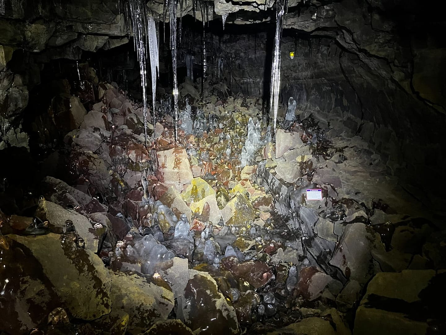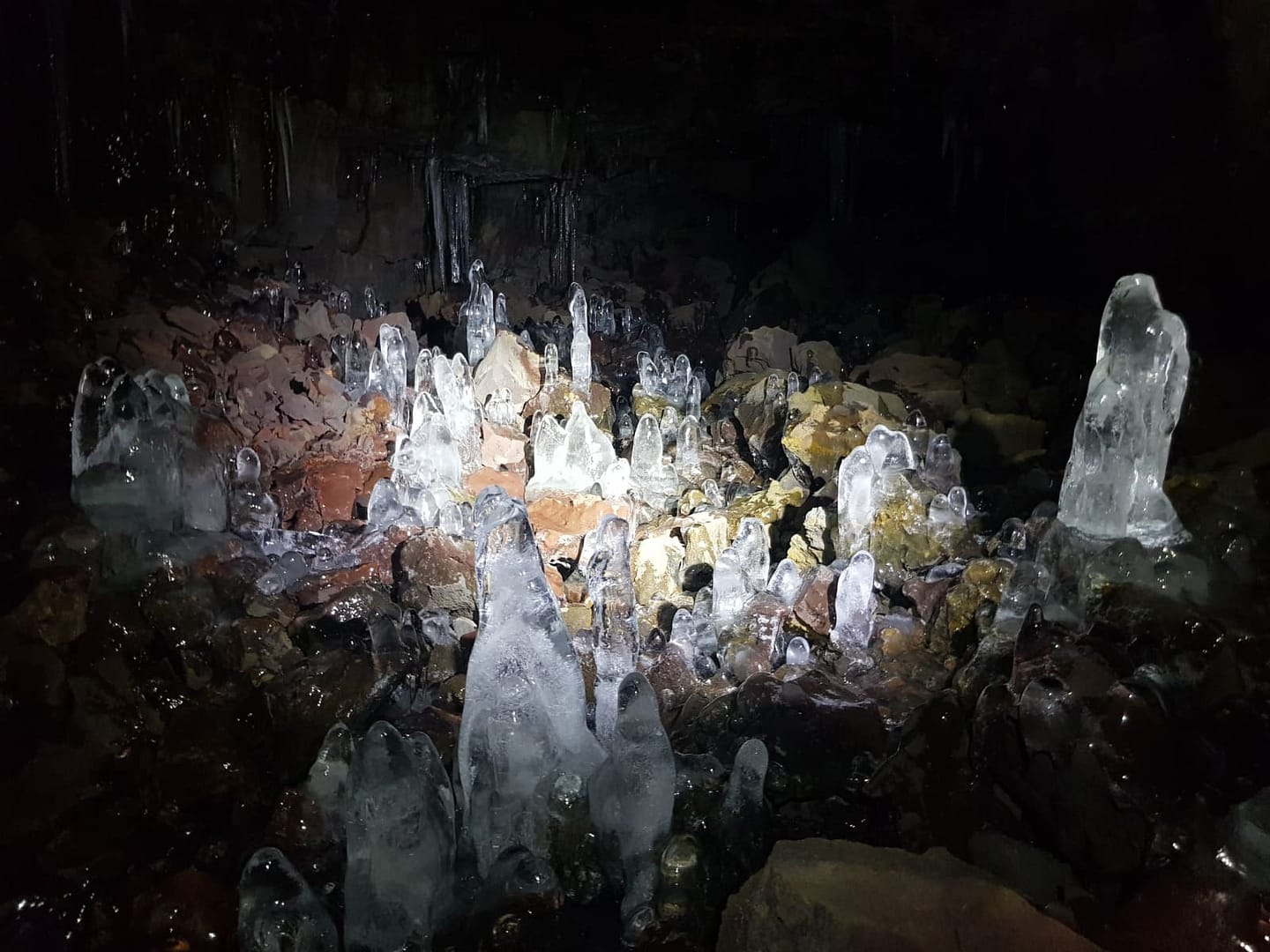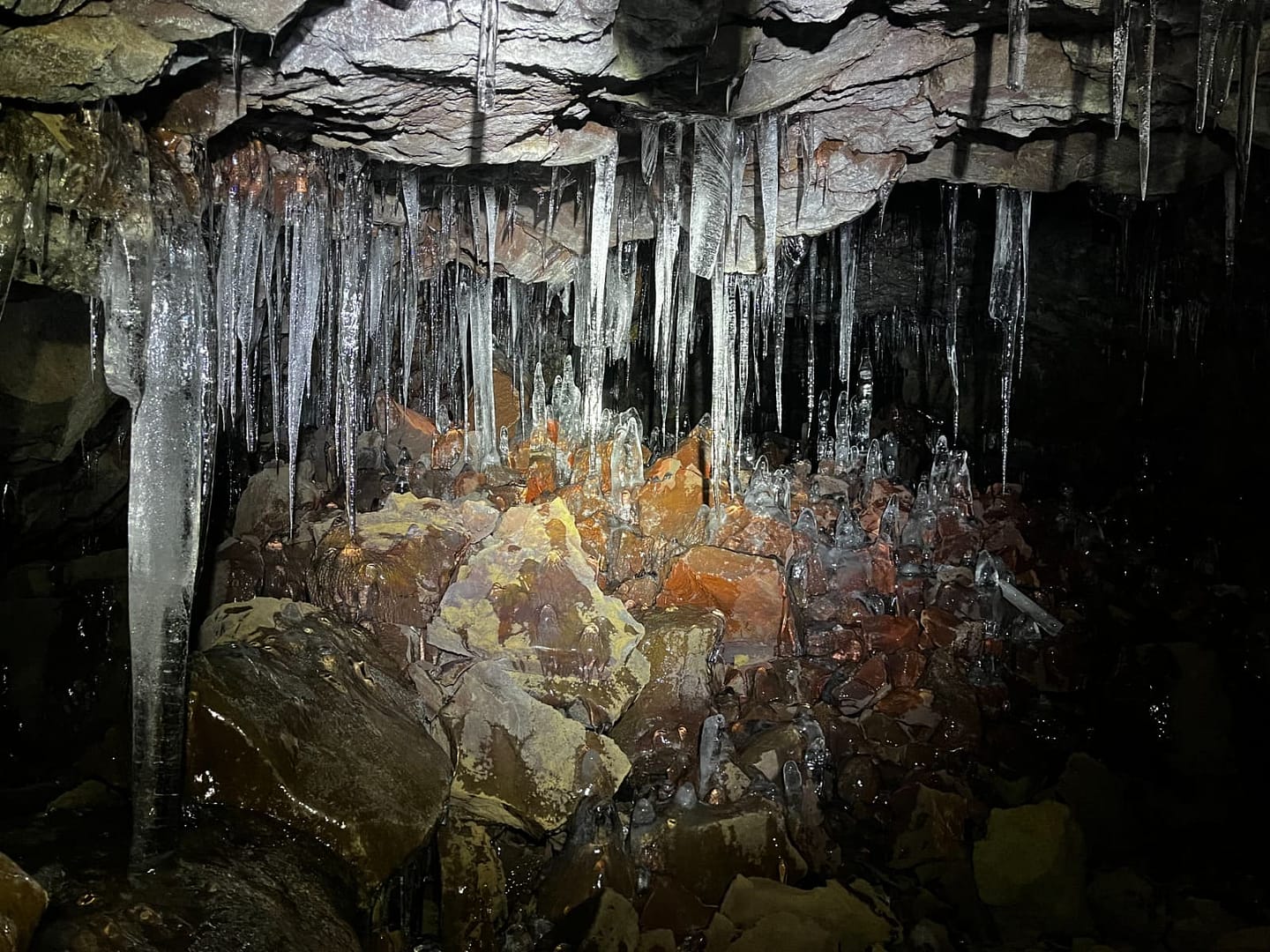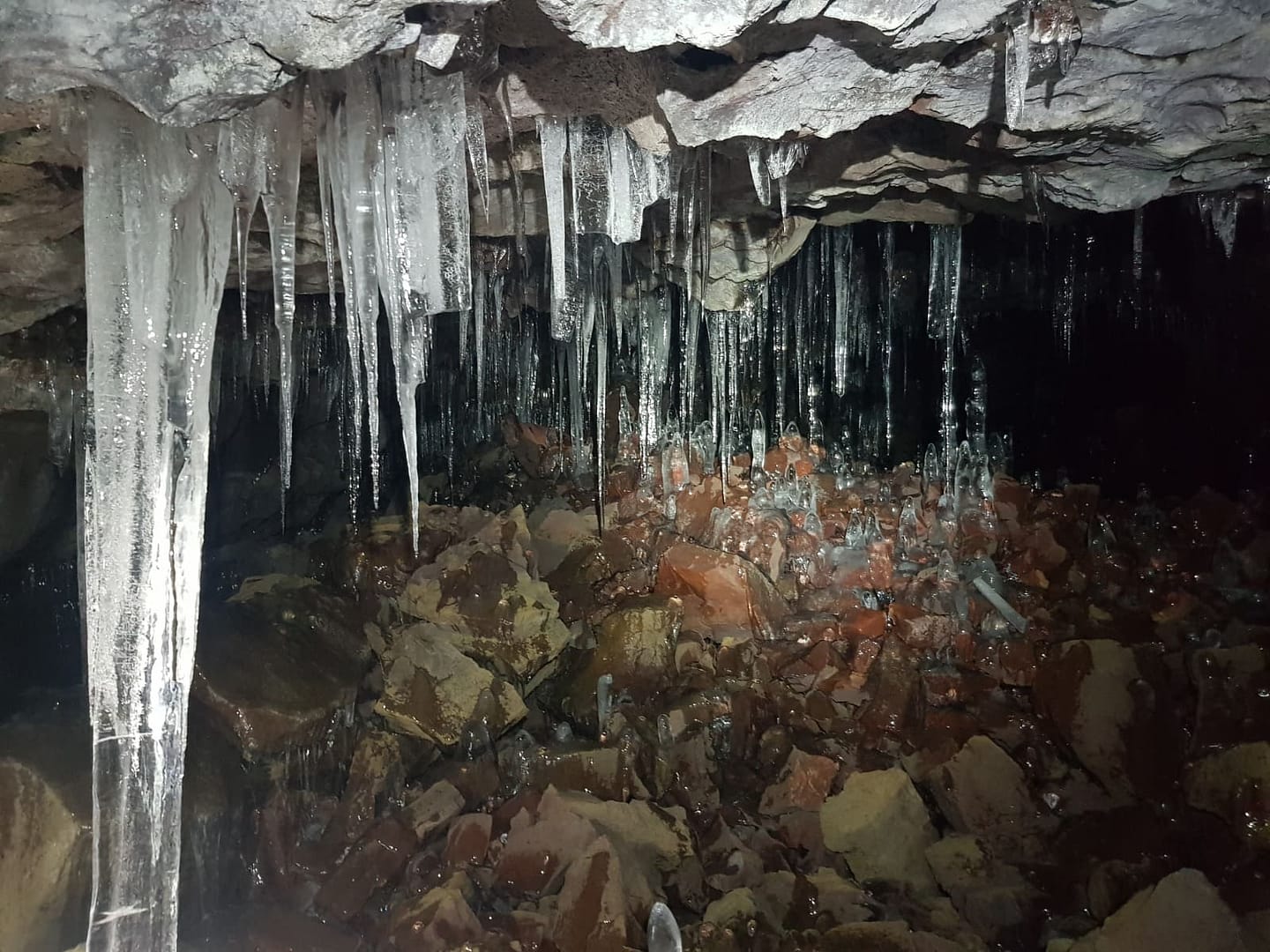 In den Wintermonaten kann man hier ein ganz besonderes Naturschauspiel erleben: Zu dieser Zeit bilden sich Formationen aus Stalagmiten und Stalaktiten, einige davon sind sogar meterlang. Wir waren vollkommen fasziniert von den atemberaubenden Eisformationen. Es ist schwer zu sagen, wie tief wir im Tunnel waren – vielleicht waren es 100 Meter?! Gerne wären wir noch weiter gegangen, aber der „Weg“ war nicht wirklich gut begehbar.