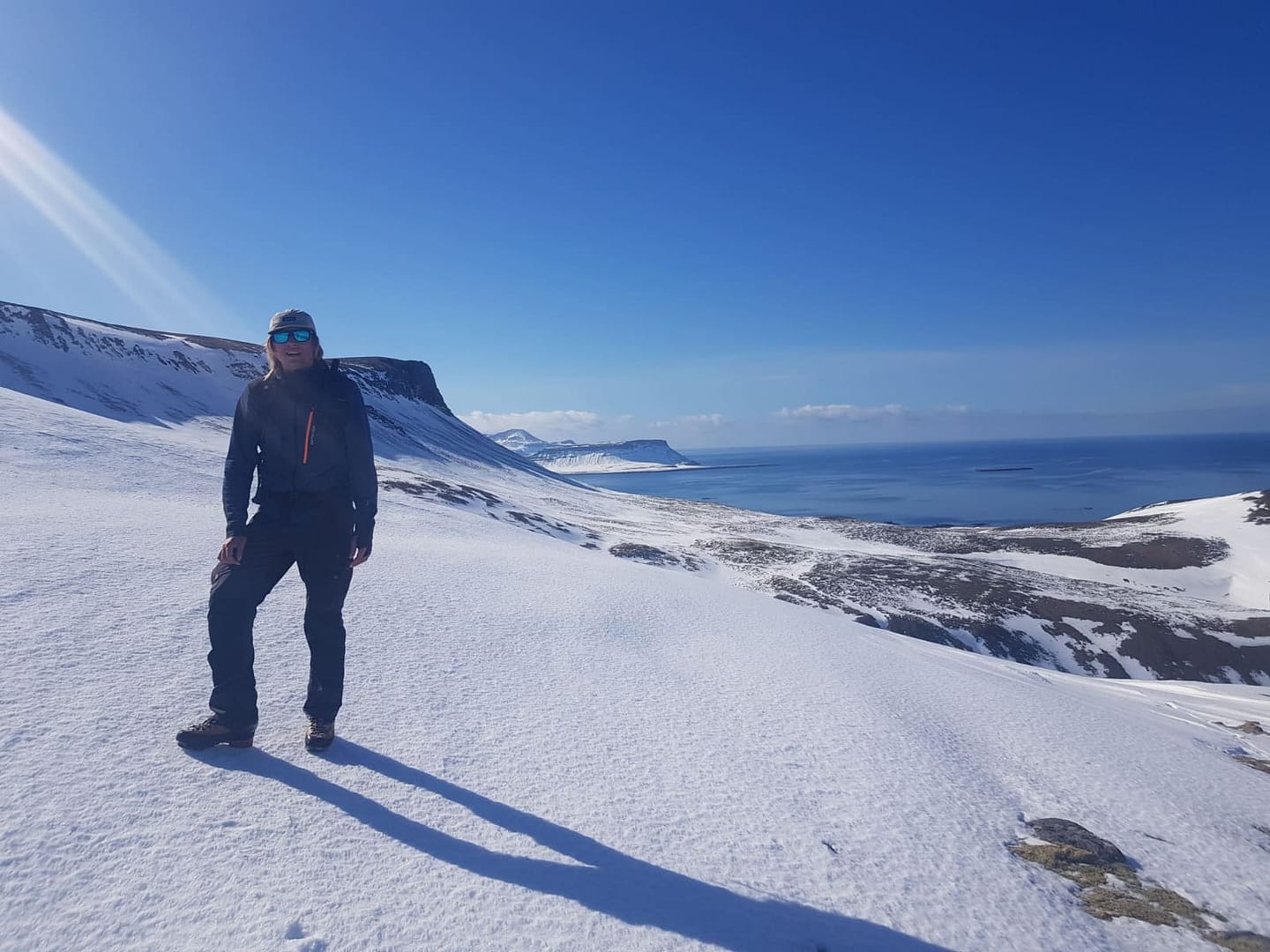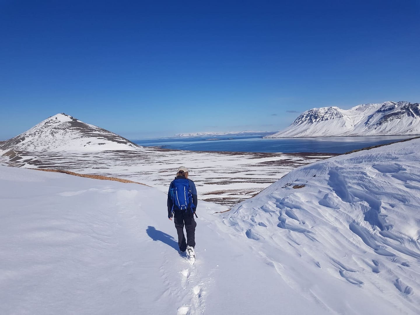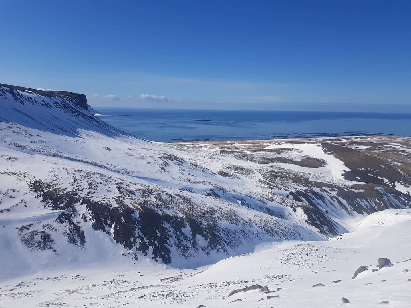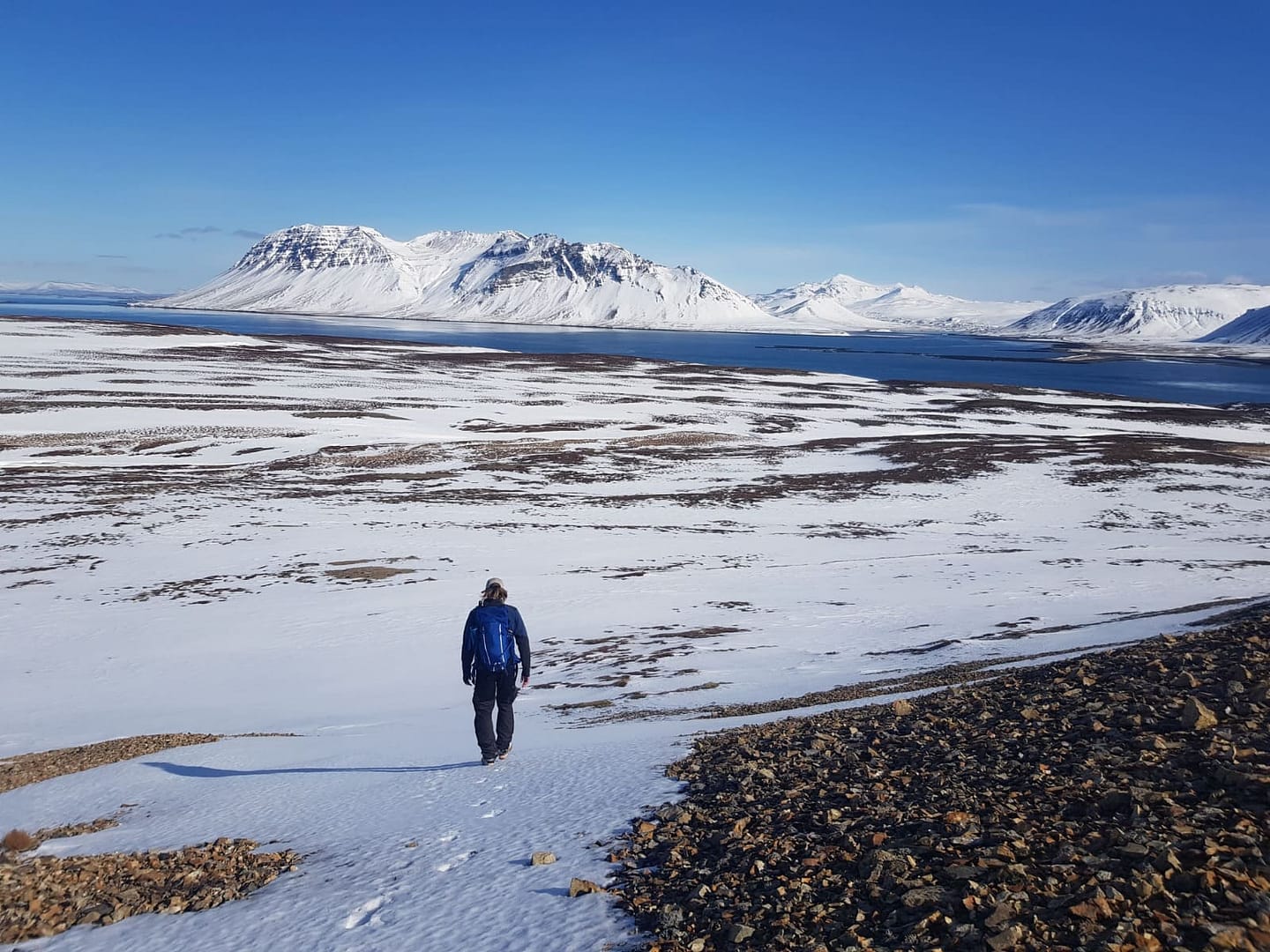 Das herrliche, windstille Wetter verlangt förmlich danach, sich körperlich zu betätigen und draußen an der frischen Luft zu sein. Nachdem wir bereits an diesem Tag auf dem Gráakúla-Krater waren, wählten wir diesen malerischen Aussichtsberg für unser nächstes Abenteuer aus. Auch hier oben sind markierte Wege und Hinweisschilder nicht vorhanden #freestyle. Ungebunden von festen Pfaden, wagten wir uns auf unseren ganz eigenen Aufstieg. (Übrigens, auf Outdooractive ist eine Route von der anderen Bergseite eingezeichnet.)