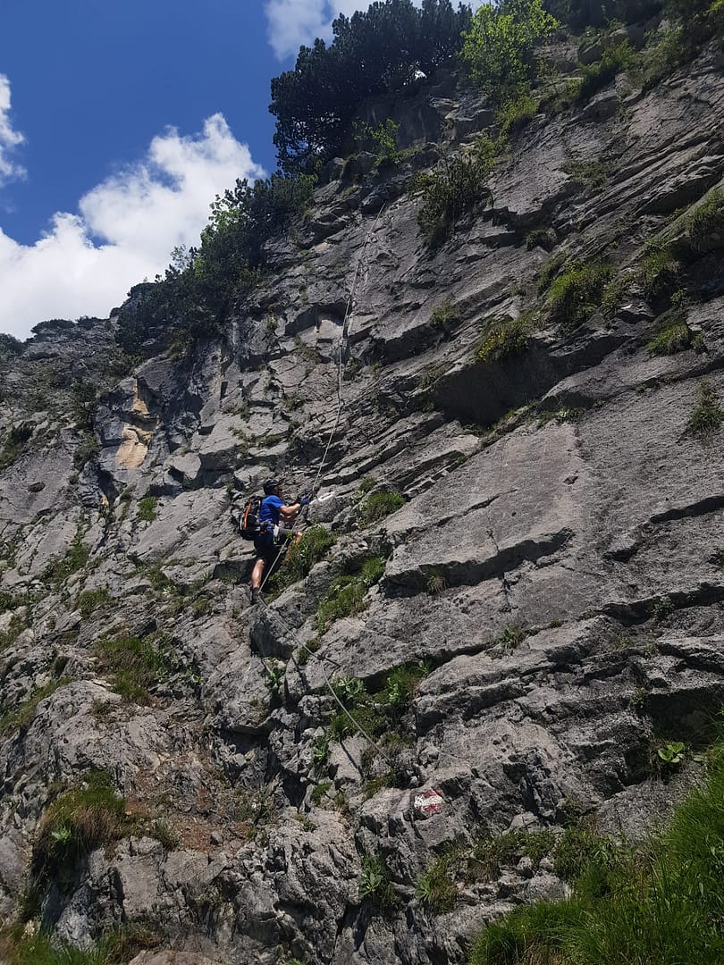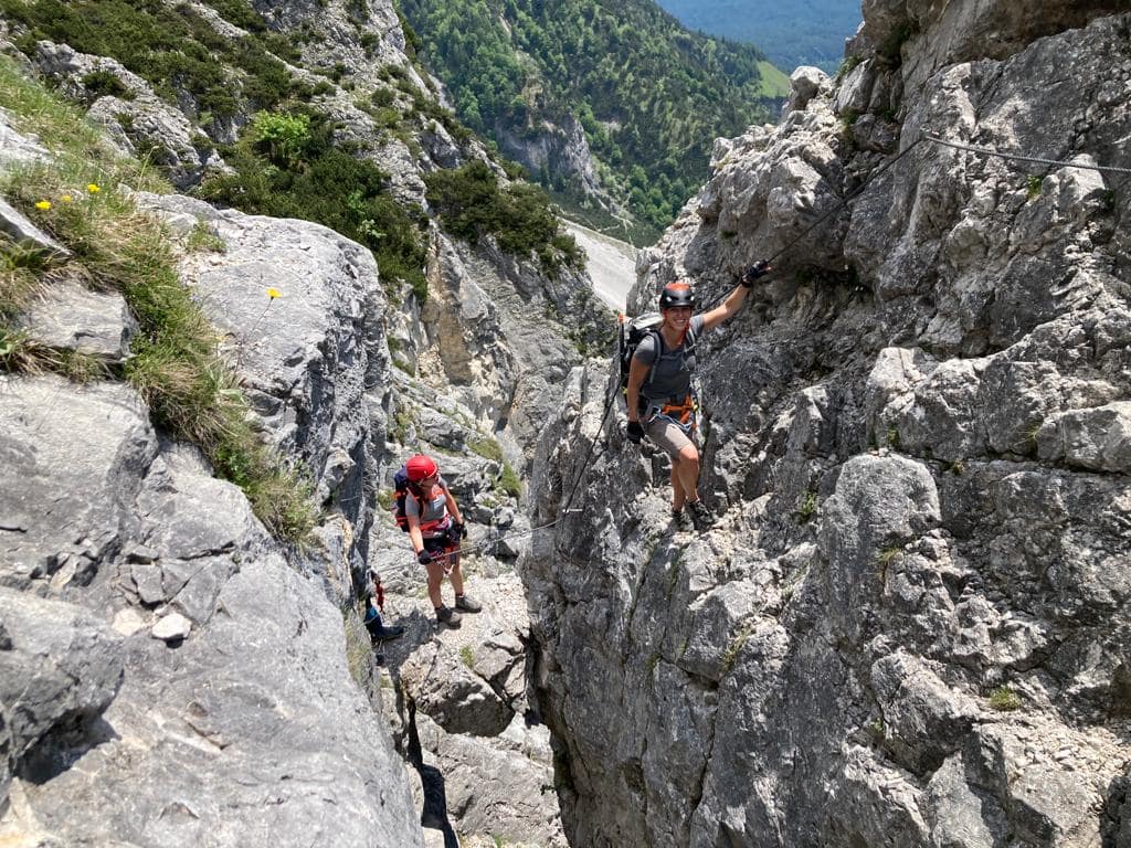 Der Klettersteig ist recht schön angelegt, zieht sich aber auch. Gefühlt geht es stufenweise nach oben und dann ein ganzes Stück querend am Berg entlang zur nächsten Stufe. Es hat trotzdem sehr viel Spaß gemacht und war zum Glück noch nicht all zu heiß; die Aussicht war die ganze Zeit gigantisch!