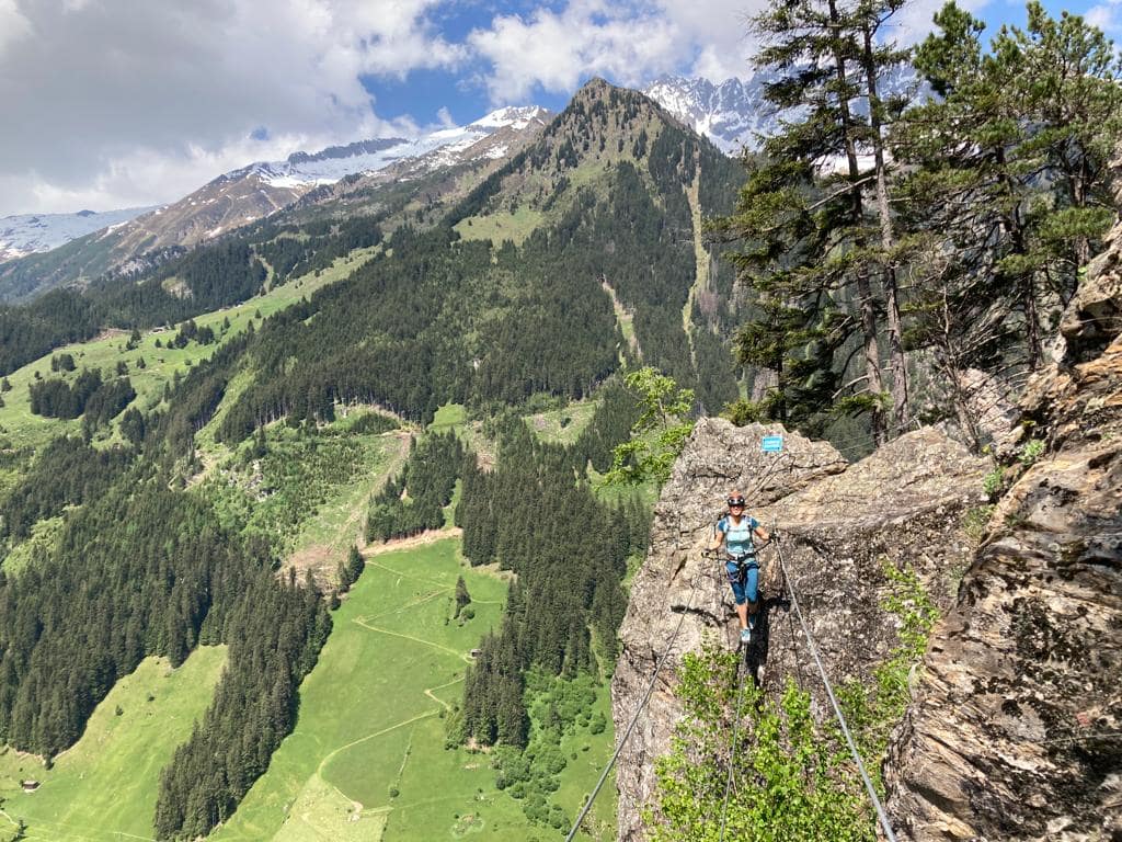 - Gurt, Klettersteigset, Helm, Handschuhe, Bandschlinge zur Zwischensicherung