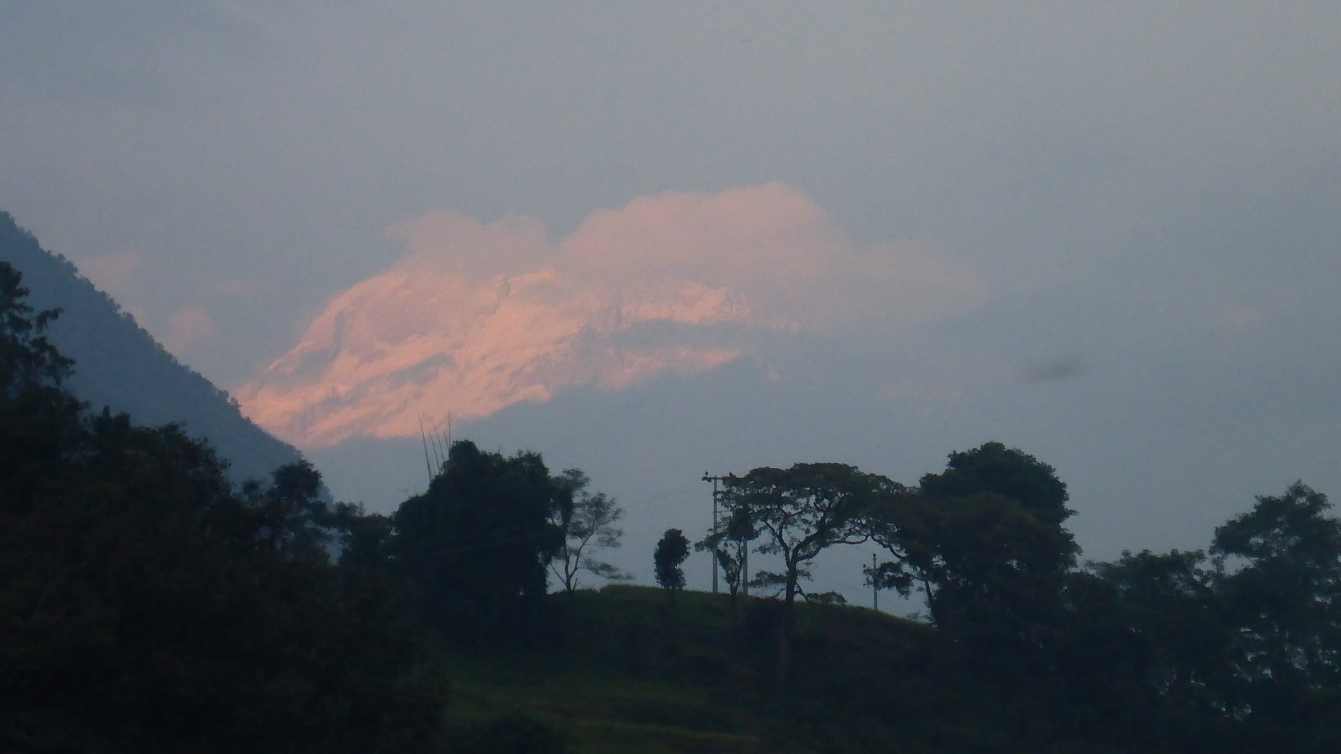 Am Abend wurden wir bereits beim Essen von dem ersten Giganten im rötlichen Licht des Sonnenunterganges begrüßt. Das Bild gibt leider nicht die Realität wieder, da unsere Kamera leider zu schlecht war, diese Entfernung in dem dämmrigen Licht aufzunehmen. Trotzdem haben wir uns riesig über diesen Anblick gefreut und konnten es kaum erwarten am nächsten Tag unsere Wanderung zu starten!!
