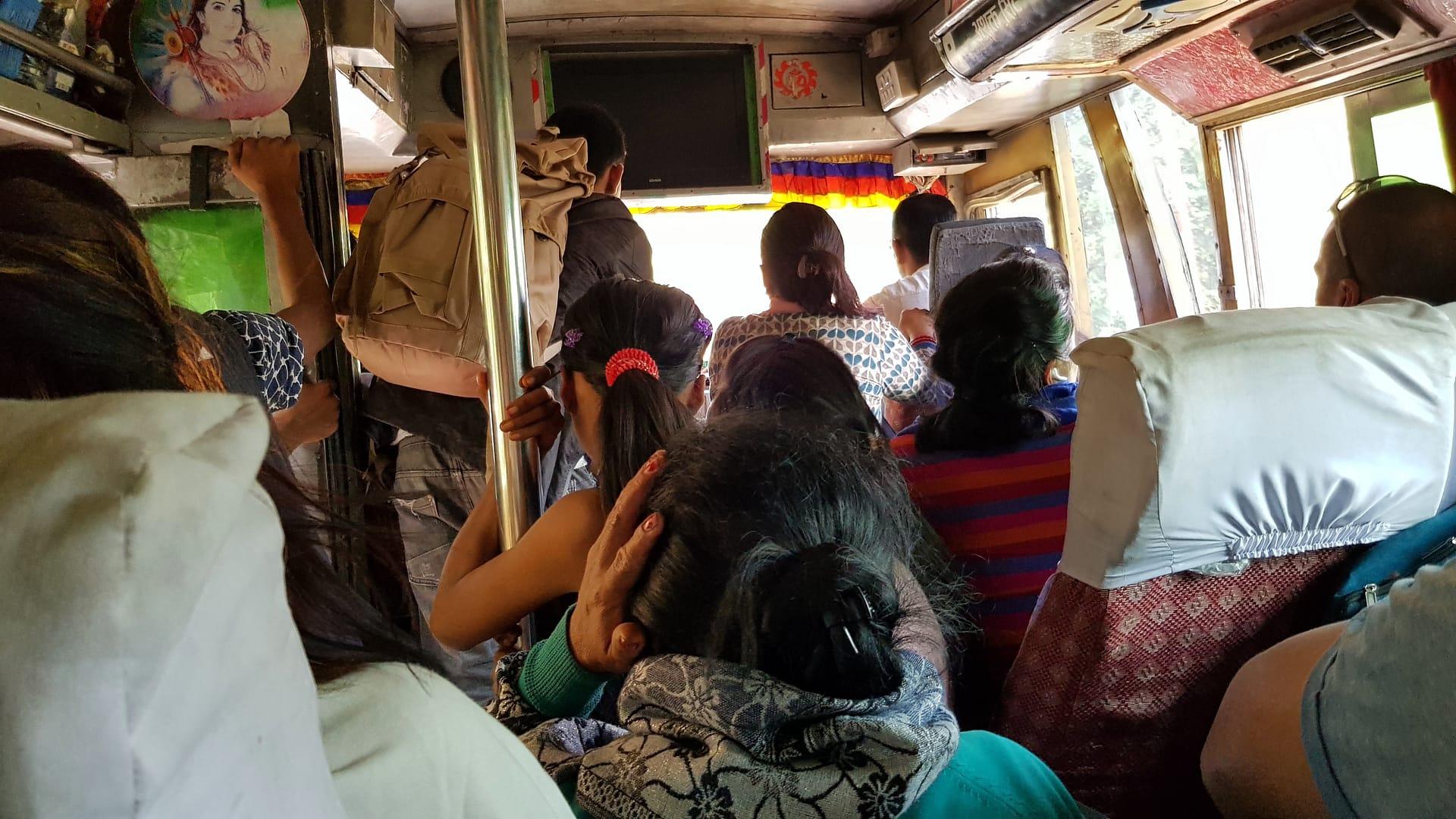 In Kathmandu sind nicht nur Mitreisende eingestiegen, sondern auch Einheimische (viele Kinder), die Snacks und andere Leckereien verkauft hatten. Es war schon interessant zu sehen, dass sich die Einheimischen mit Chips und anderen Köstlichkeiten eingedeckt hatten. In dem Moment hatten wir uns nur gedacht „gut, dass wir etwas zu Essen dabei haben, wer weiß wie lange die Fahrt dauert“. Auch hatten wir uns gefragt, ob wir Pausen einlegen werden und wenn ja viele bzw. in welchem Zeitabschnitt.