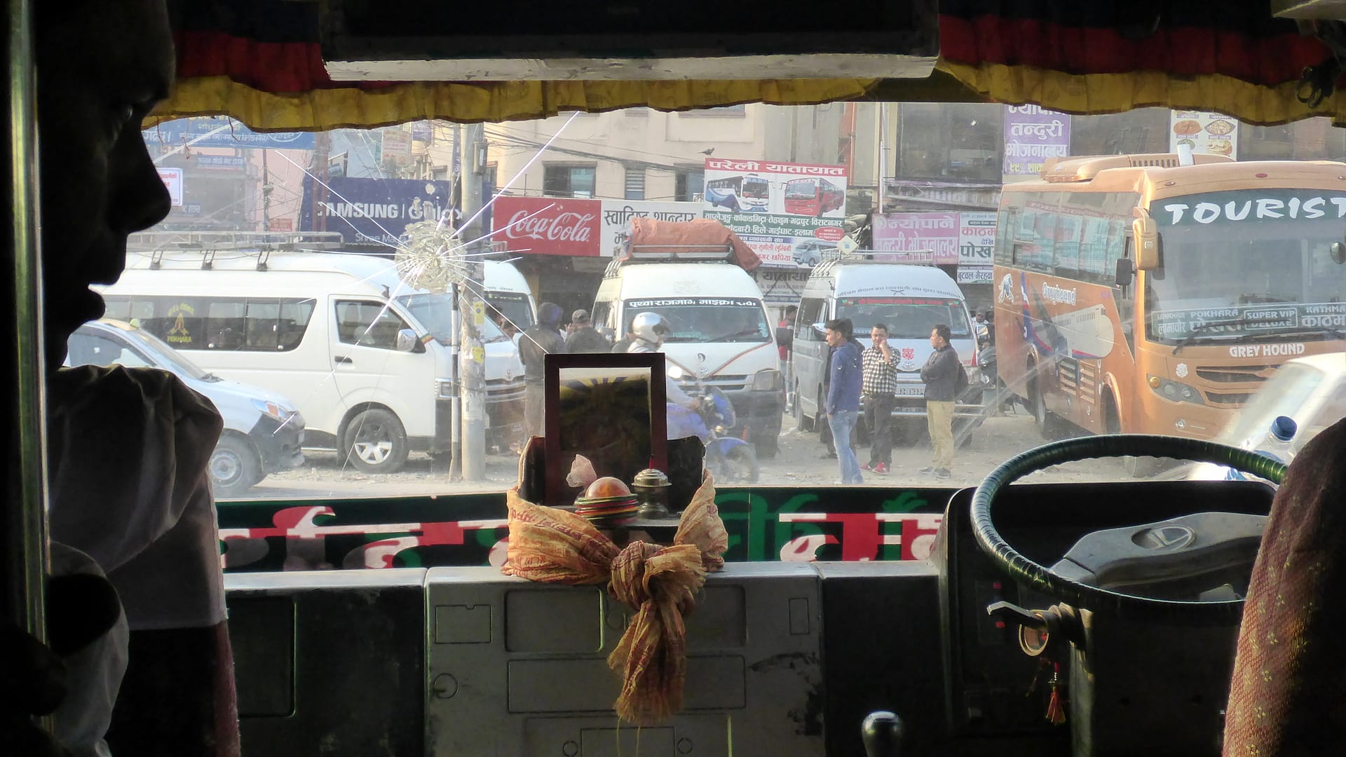 Wenn ihr denkt, dass es Busstationen gibt, dann habt ihr euch getäuscht. Während der Fahrt stand eine Person in der offenen Tür und rief aus, wohin wir fuhren. An jeder Ecke und Stelle konnten Personen ein- und aussteigen. Für uns war das System recht interessant, den Bus auf diese Weise zu füllen. Das Problem daran war natürlich, dass es sehr zeitaufwendig ist, wenn der Bus ständig halten muss. So haben wir über eine Stunde gebraucht, bis wir erst mal aus Kathmandu raus waren. In Dem Bus wurden nicht nur Sitzplätze vergeben, sondern auch Hocker im Mittelgang sowie die Bank neben dem Fahrer wurde komplett voll besetzt. Man musste ja jeden einzelnen Fleck ausnutzen. Mich hat es schon gewundert, dass sich keiner aufs Dach setzen musste. *haha*.