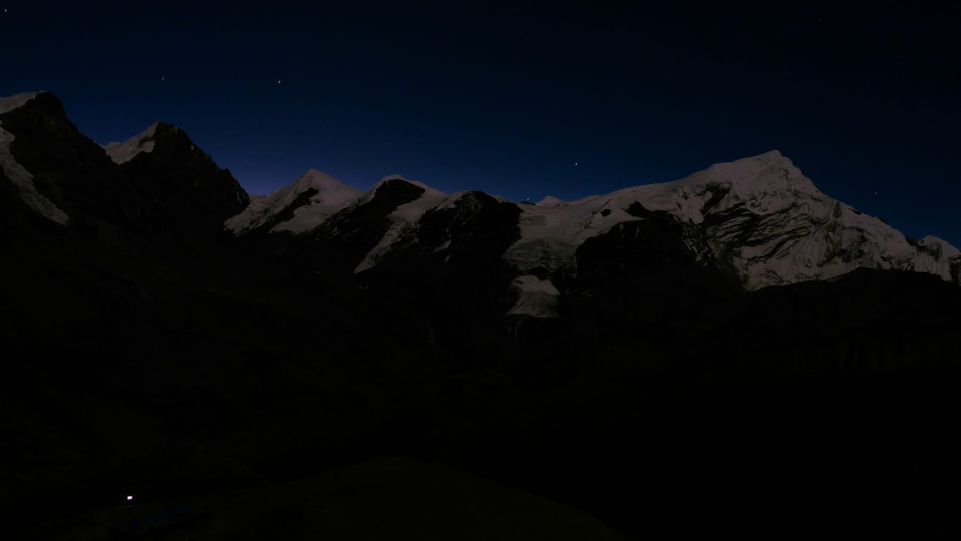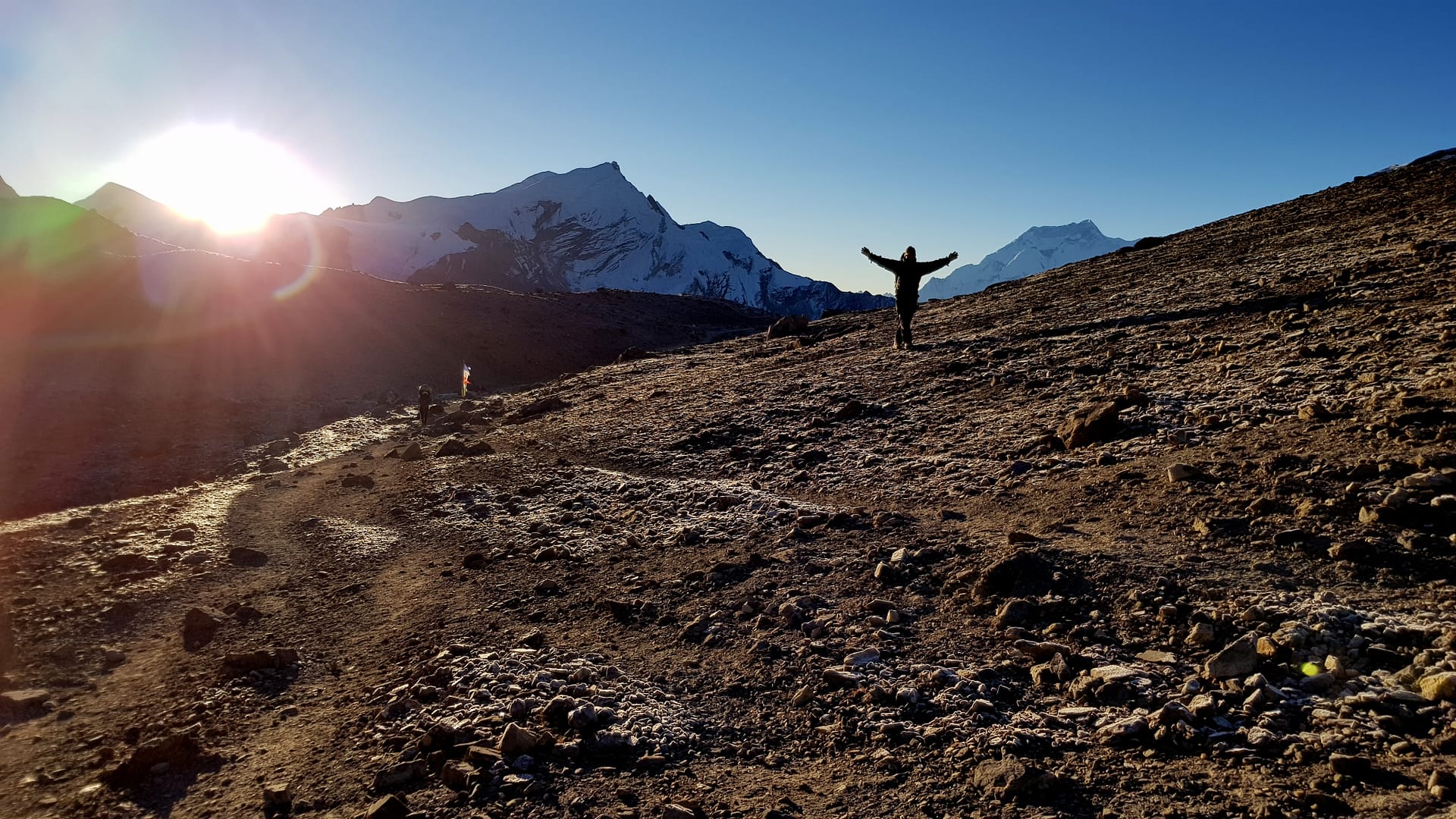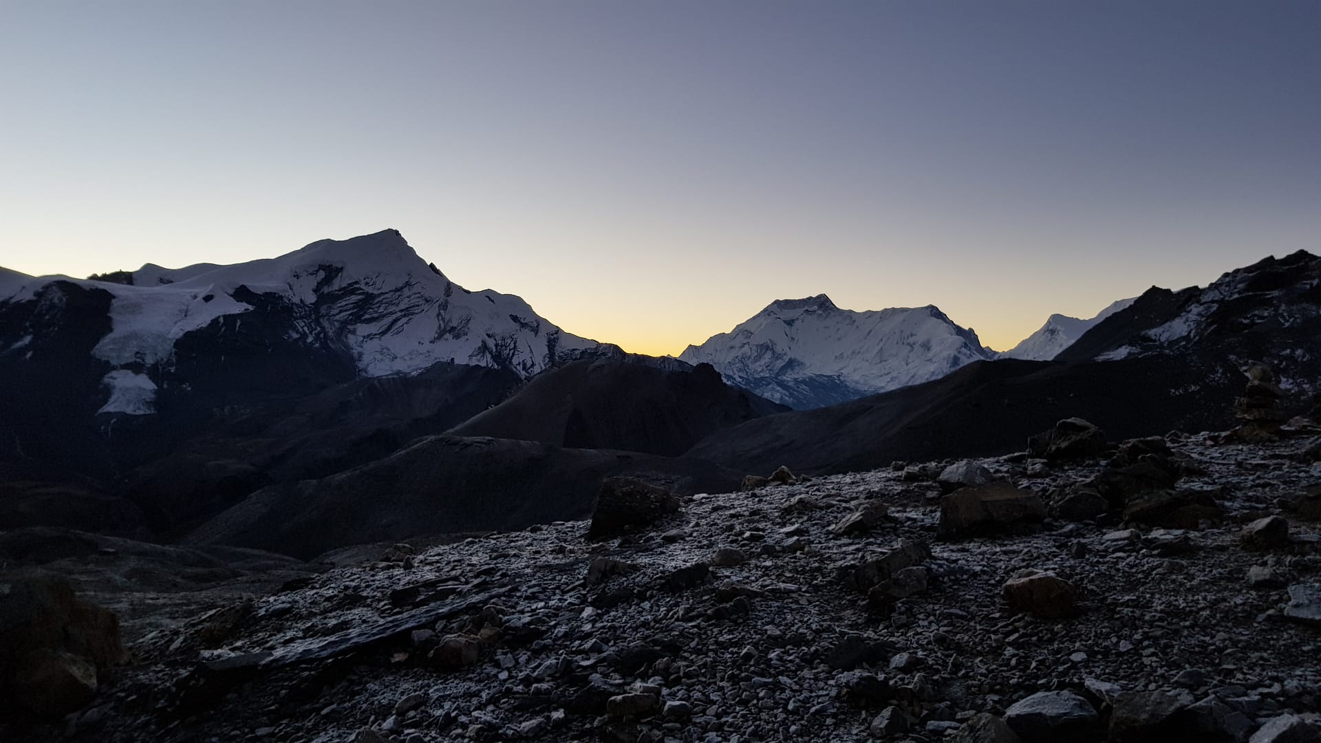 Wir setzen uns zum Ziel auch hier zum Sonnenaufgang oben auf dem Thorung La Pass zu stehen, so wie wir es bereits beim Tilicho See probiert hatten. Um 4 Uhr morgens gab es ein kräftigendes Frühstück und keine 20 Minuten später waren wir bereits auf dem Pfad unterwegs. Erst mit Stirnlampe, die wir aufgrund des leuchtenden Mondscheins schnell wieder in unseren Rucksack einpackten. In dem Mondschein und unter dem klaren Sternenhimmel zu wandern war so viel schöner, als sich von dem Licht der Lampe die schöne Sicht zu versauen. Es waren bereits einige Personen vor uns unterwegs, weil in der Ferne sahen wir kleine wandernde Lichtpunkte.