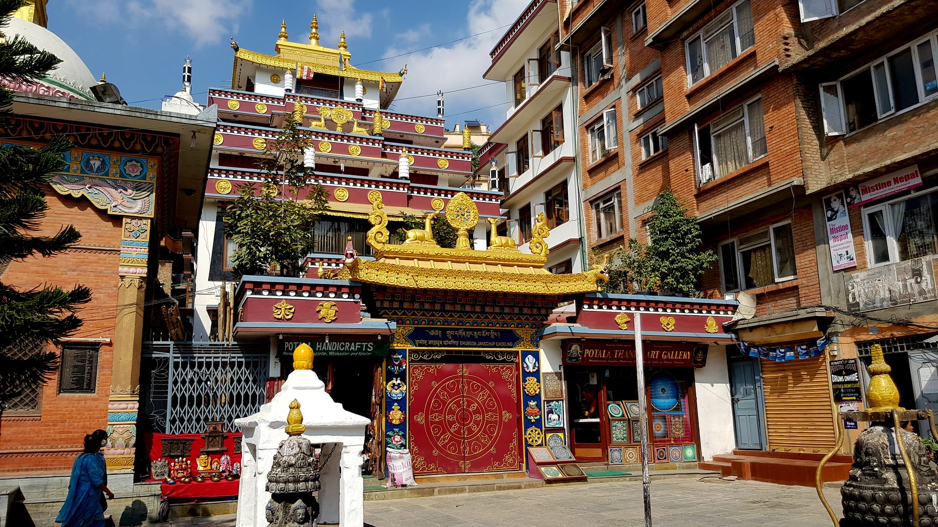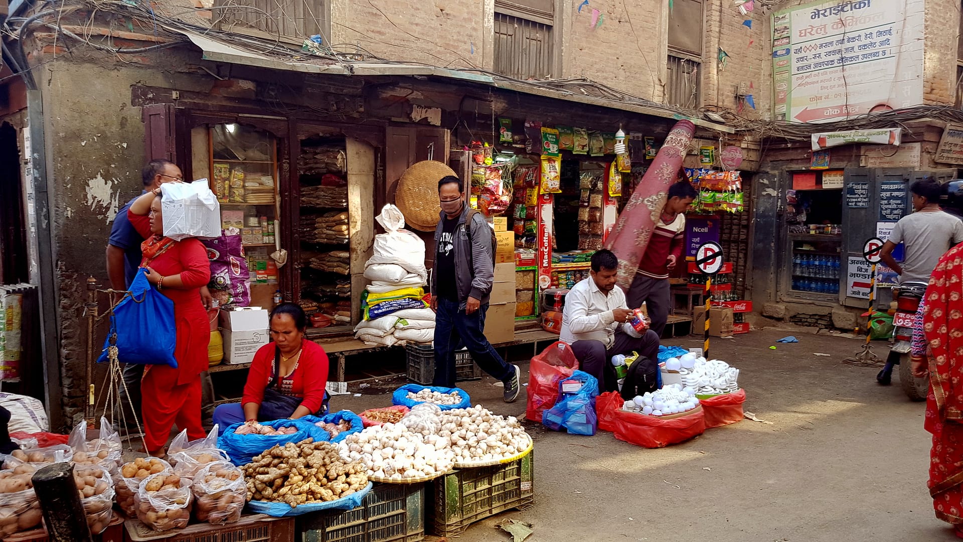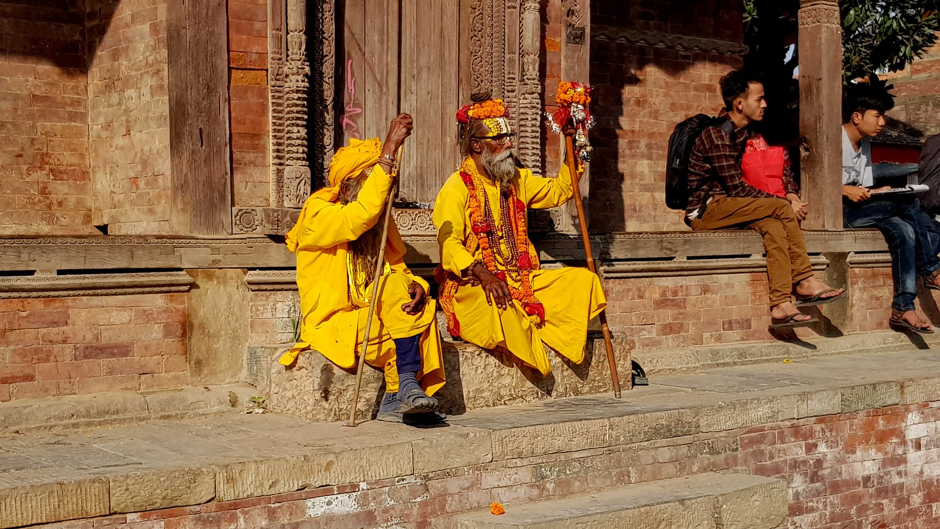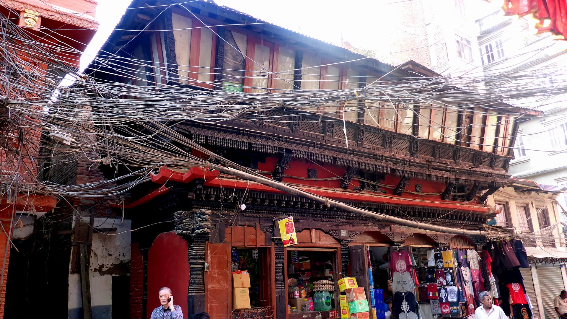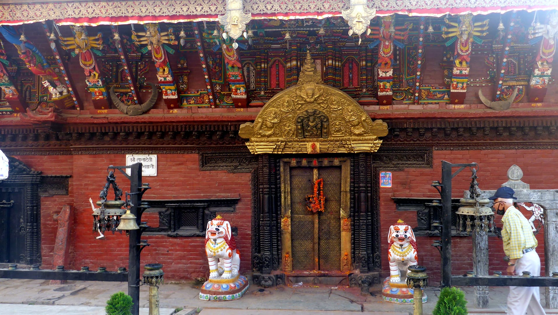 Wir folgten der Sightseeing Route durch Thamel, welche vom Lonely Planat beschrieben wurde. Kathmandus Hintergassen sind dicht mit wunderschönen Tempeln, Schreinen und Skulpturen, besonders. Die Erkundung der halb versteckten Sehenswürdigkeiten ist ein echter Höhepunkt in dem überfüllten Labyrinth von Straßen und Höfen. Der touristische Stadtteil Thamel ist voll von traditionellen Märkten, Tempeln, Tole (Straßen), Bahal (buddhistischen Monarchiehöfen), Bahil (Wohnhöfen) und Chowk (Kreuzungen), die im Mittelpunkt des traditionellen Nepali-Lebens stehen. Gerade wenn man eine 1.000 Jahre alte Statue sieht, die in einigen Gemeinschaftshöfen als Spielzeug oder Wäscheleine benutzt wird, ist man mitten in deren Leben.