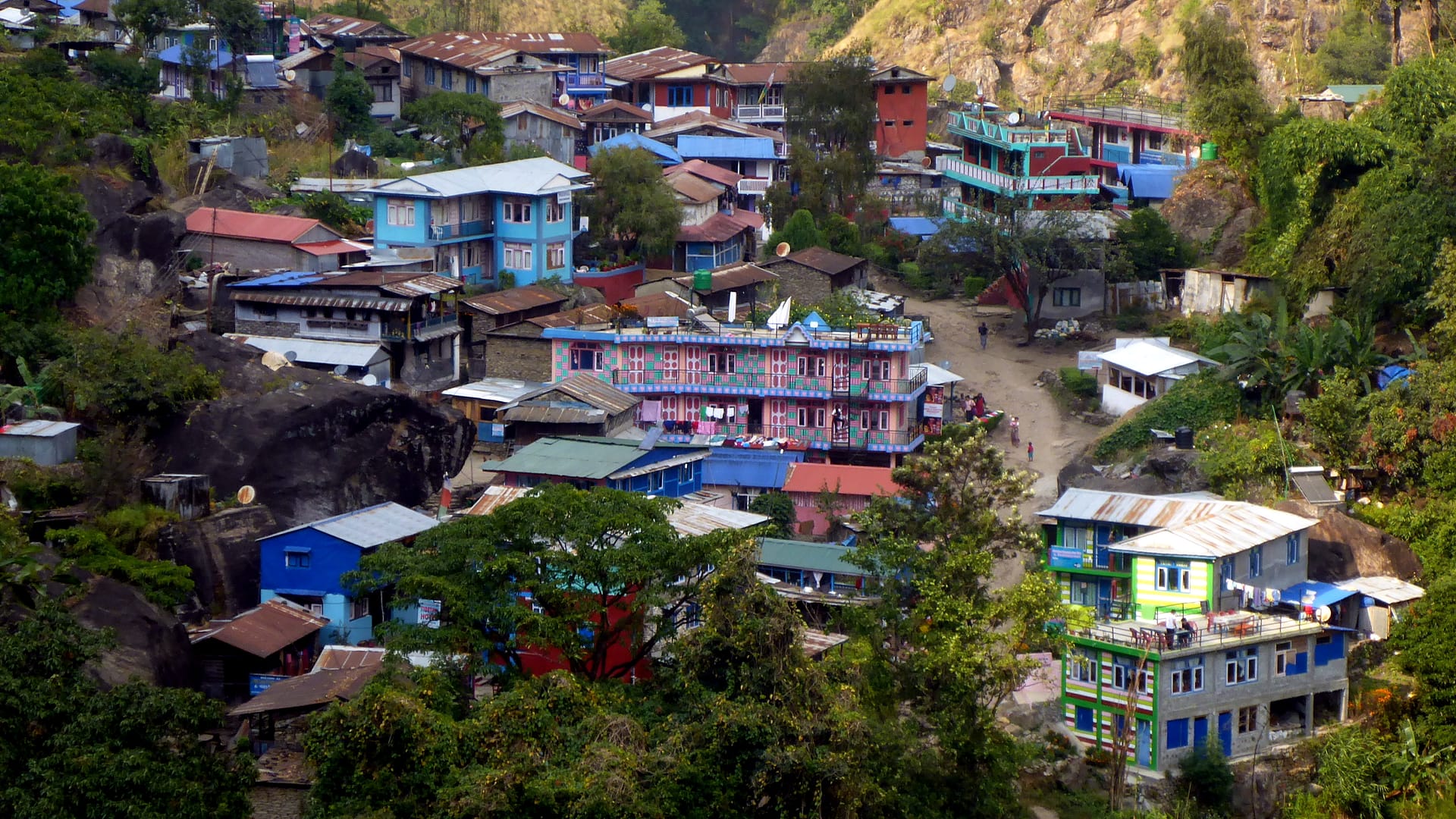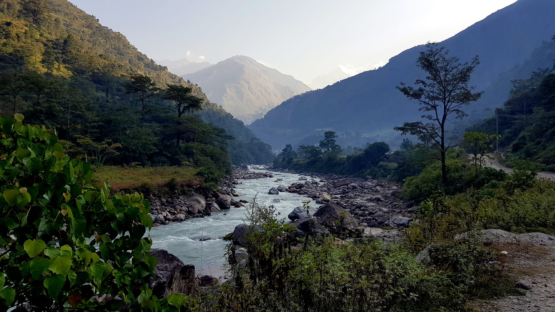 Auf unserer Strecke von Bhulbule nach Jagat wanderten wir zunächst im Schatten der Berge auf der „Fahrstraße“ an kleinen Siedlungen vorbei. Sträucher, Bäume, Wasserfällen und kleine Gemüsefelder säumten den Weg. Auf diesem Teil der Strecke war der Unterschied von arm und reich besonders gut zu sehen. Es stimmte mich traurig zu sehen, dass auf der einen Seite die Menschen in Blechhütten lebten und im wahrsten Sinne es Wortes auf der anderen Seite gemauerte und bunt-bemalte Häuser gebaut wurden. Ich vermute, dass über die Jahre hinweg der Unterschied zwischen arm und reich hier in der Region noch größer wird. Die Einheimischen, die den Luxus genießen, die gemauerten und bunt-bemalten Häuser gebaut zu haben, haben den Vorteil, dass sie einen Teil vom Kuchen vom Tourismus abbekommen. Sie haben die Möglichkeit durch die Vermietung einer Unterkunft sowie das Anbieten von Essen Geld zu verdienen und damit ihre Unterkunft von anderen abzuheben.
