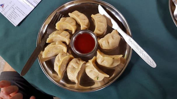 Unser heutiges Ziel für das Mittagessen war das kleine Dörfchen Ghermu. Der Weg führte durch dschungelartiges Gelände, über eine Brücke und zum Schluss Stufen den Berg hinauf bis zum Dorf. Viele Trekker haben ihr Tagesziel in Ghermu erreicht, wir kamen an einigen schönen Unterkünfte vorbei. Da wir aber bereits gegen 12 Uhr ankamen, wollten wir den Tag nicht „vergeuden“ und nach einer Pause weiter ins Tal hineinlaufen. Zum Essen gab es heute zum ersten Mal Momos, darauf habe ich mich schon die ganze zeit gefreut. Momos sind Teigtaschen mit unterschiedlicher Füllung, sehr schmackhaft und weiter zu empfehlen! Im Schatten mit einer kühlen Prise genossen wir den Ausblick auf den Wasserfall und entspannten uns langsam vom unserem Alltag von Daheim.
