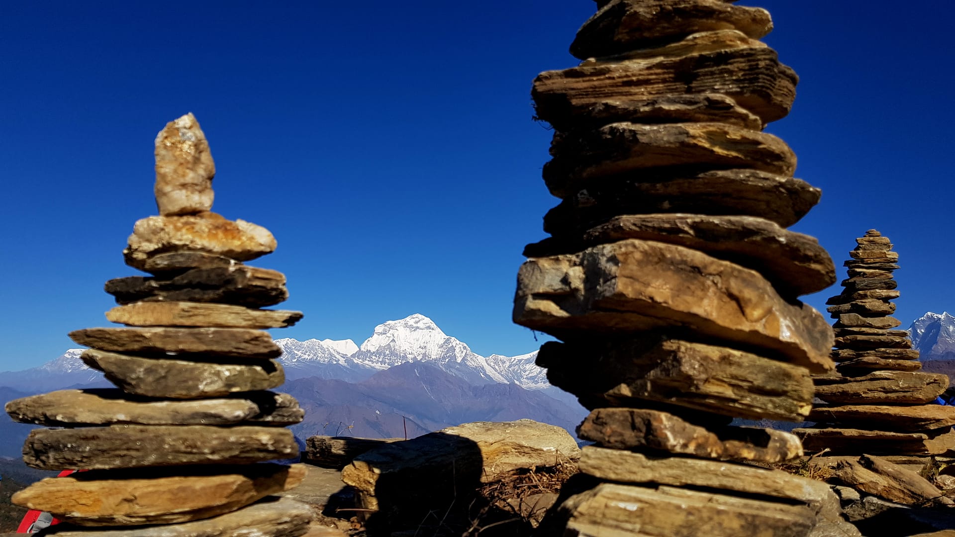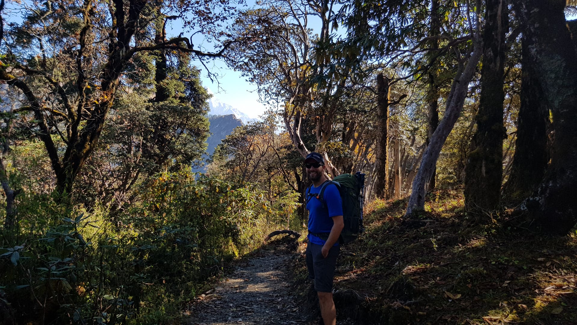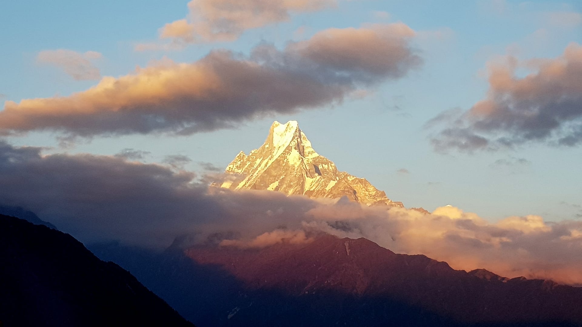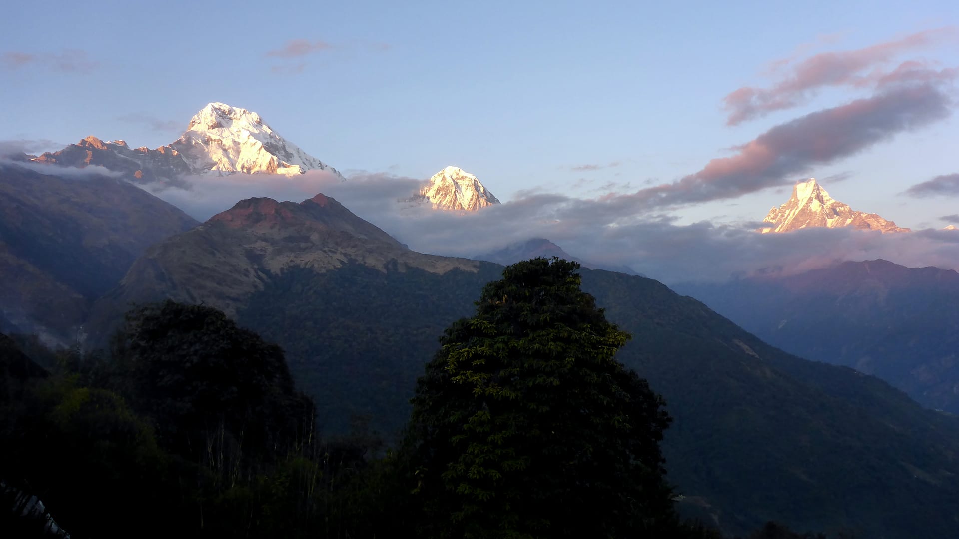 Nach dem kurzen Ausflug auf den Poon Hill frühstückten wir in unserer Unterkunft und packten unsere sieben Sachen ein. Im Glauben, dass es nun erst einmal bergab ging, stiegen wir weitere Stufen hinauf. „Oben“, am höchsten Punkt des heutigen Tages angekommen, hatte man noch einmal einen wunderschönen Blick auf den Annapurna 1. Es war ein sehr ähnlicher Ausblick wie vom Poon Hill. Also wenn ihr die Möglichkeit habt, dann geht nicht zum Poon Hill, sondern nehmt den direkten Weg zu diesem Aussichtspunkt. Hier könnt ihr den Sonnenaufgang in aller Ruhe und vermutlich alleine genießen.
