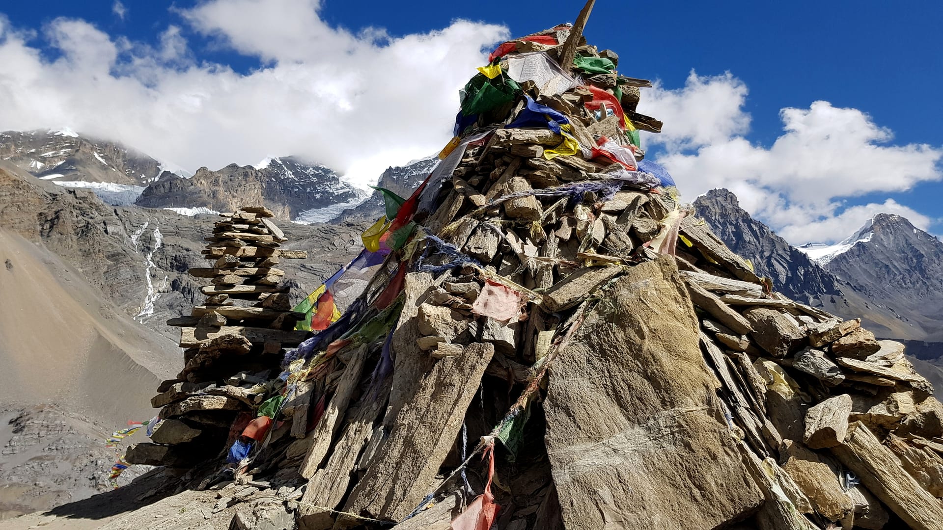 Nachdem wir uns mit einem leckeren Tee aufgewärmt hatten, sind wir noch einmal losgezogen. Vom Thorung la High Camp kann man noch zu einem kleinen Hügel in ca. 30 Minuten rauf wandern (ungefähr 60 Höhenmeter). Wir hatten einen fantastischen Ausblick und wollten überhaupt nicht mehr runter gehen! Aber auch hier hat uns der Wind und die Kälte einen Strich durch die Rechnung gemacht, so dass wir schon nach kurzer Zeit den Rückweg antraten.