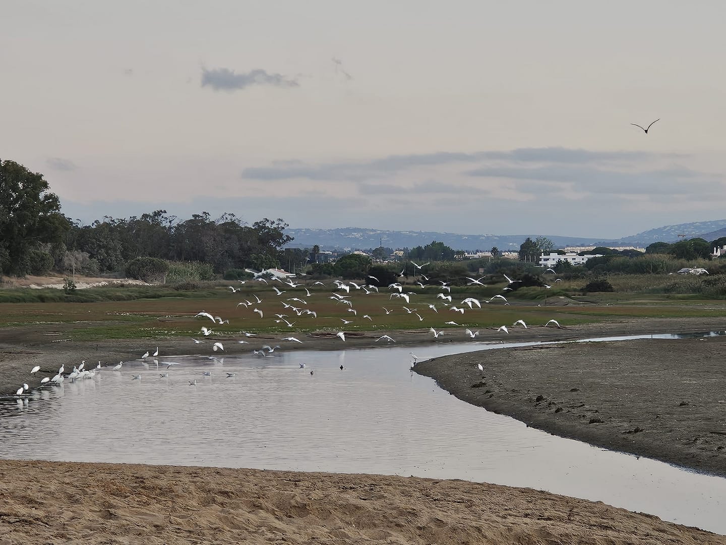 Es ist ein kleines Paradies für Wasservögel und Zugvögel: Hier lassen sich oft Reiher, Enten, Stelzenläufer, Kiebitze und gelegentlich sogar Eisvögel, Purpurhühner und Flamingos beobachten. Besonders am frühen Morgen, wenn die Sonne über dem Meer aufgeht und der Strand noch still ist, wirkt dieser Ort fast magisch – ein Stück unberührte Natur zwischen Dünen, Meer und Himmel und ein wertvoller Rückzugsort für viele Arten.